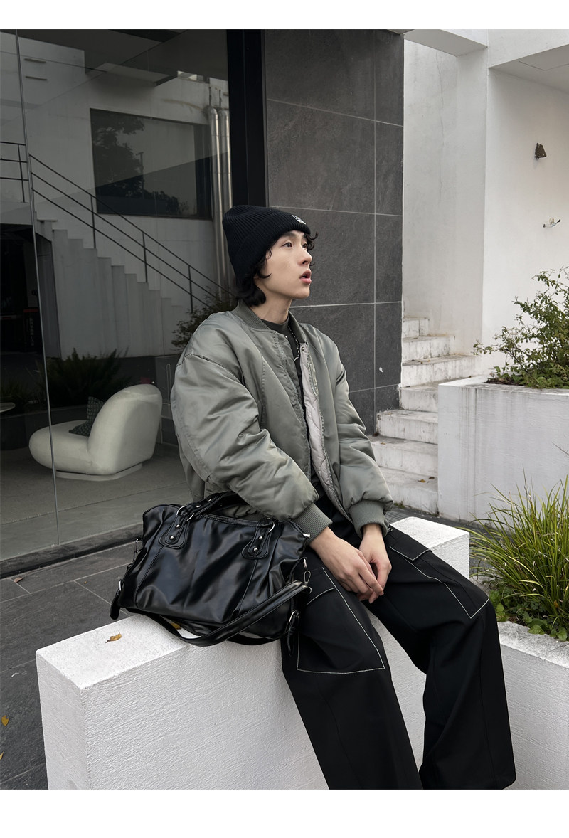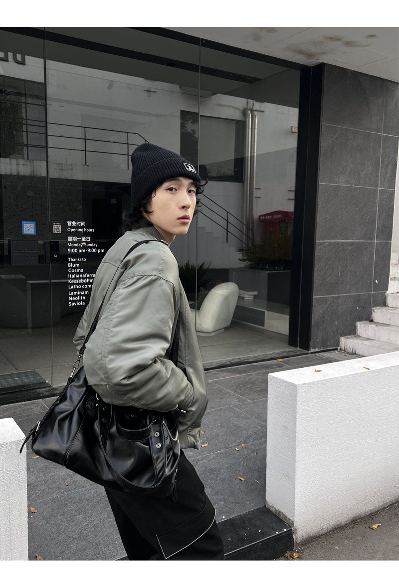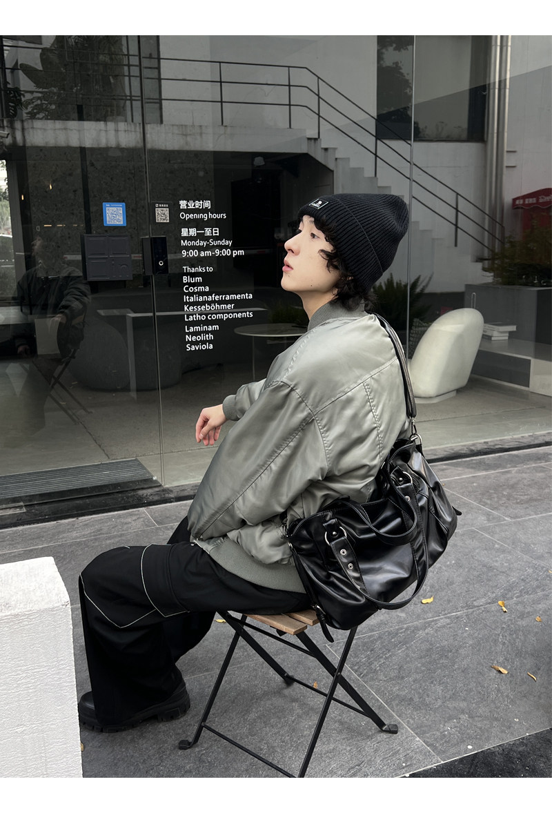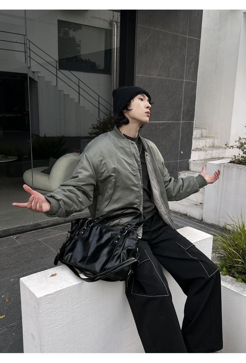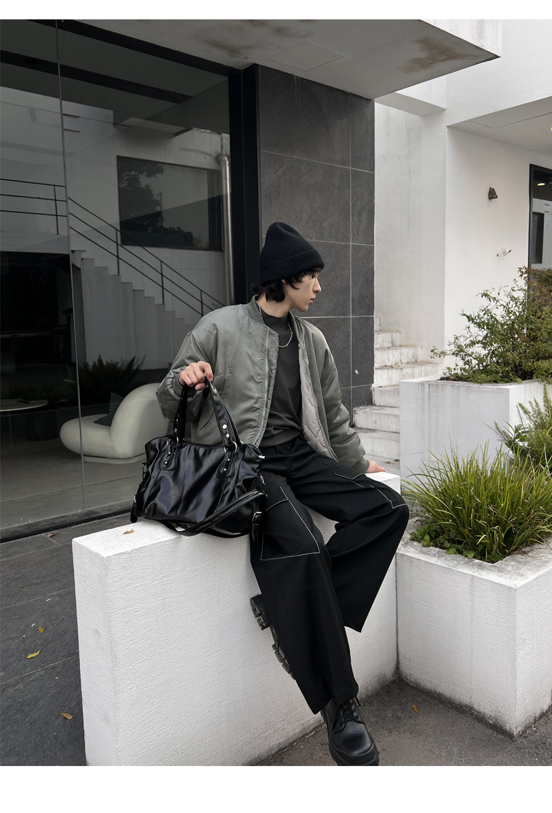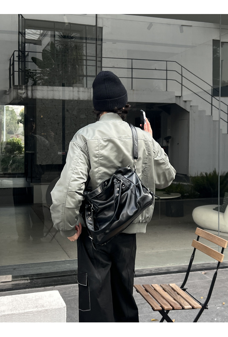 YUEN美式街頭暗黑系原宿單肩斜背大容量腋下手提挎包復古男女托特