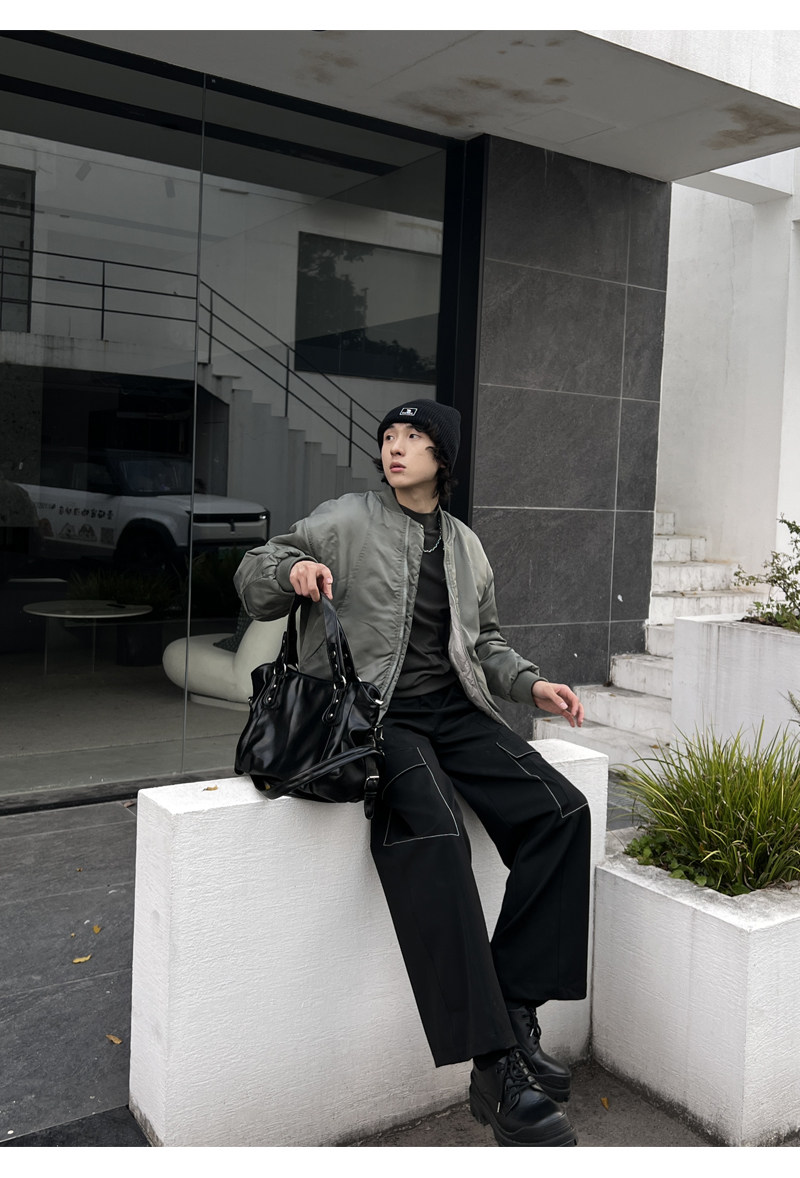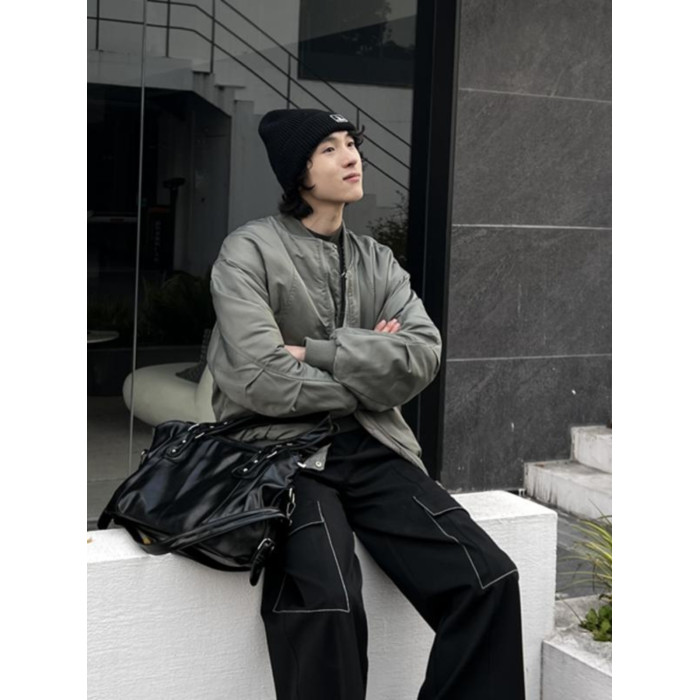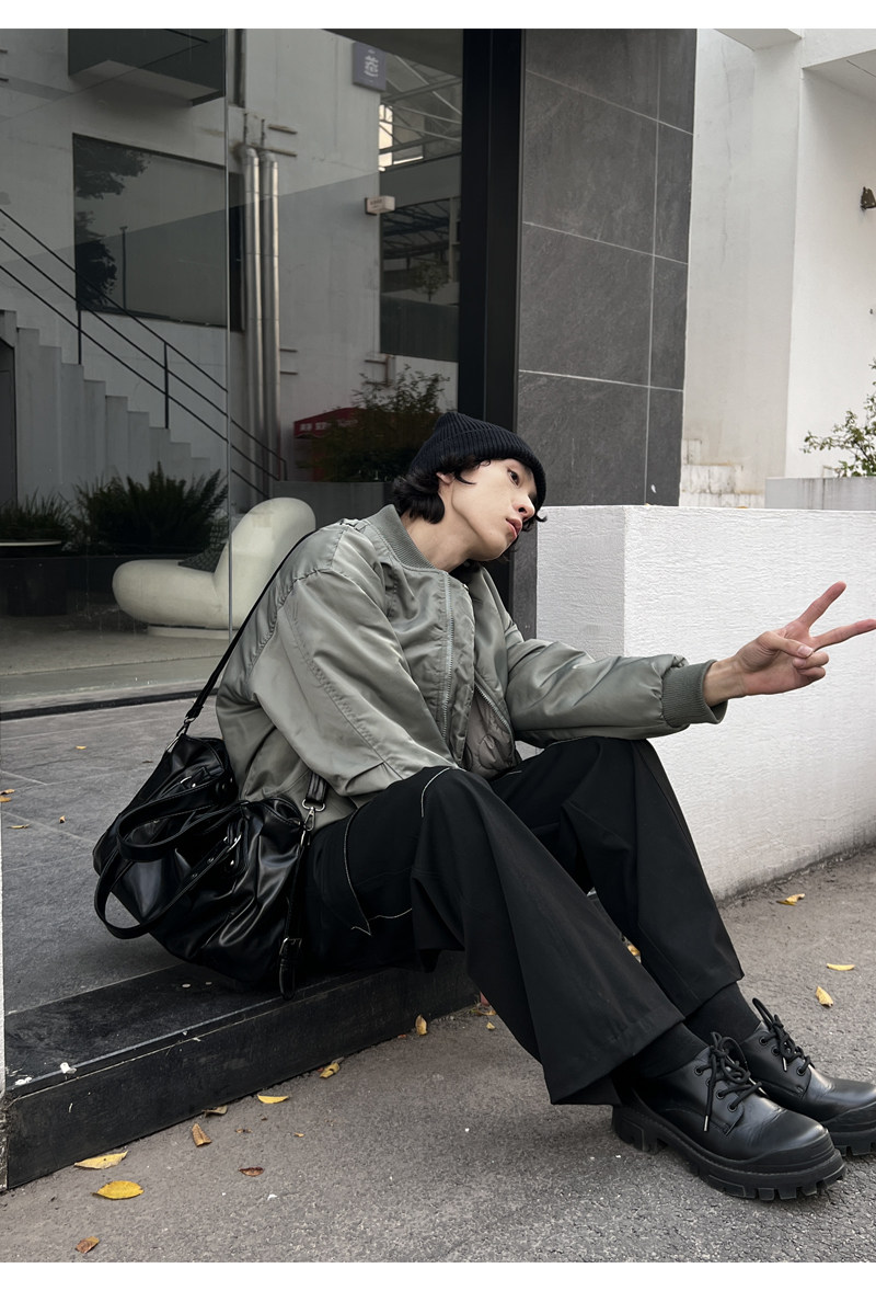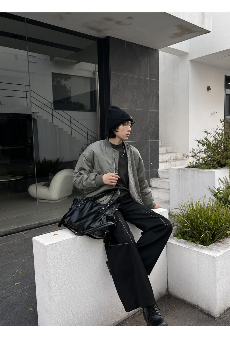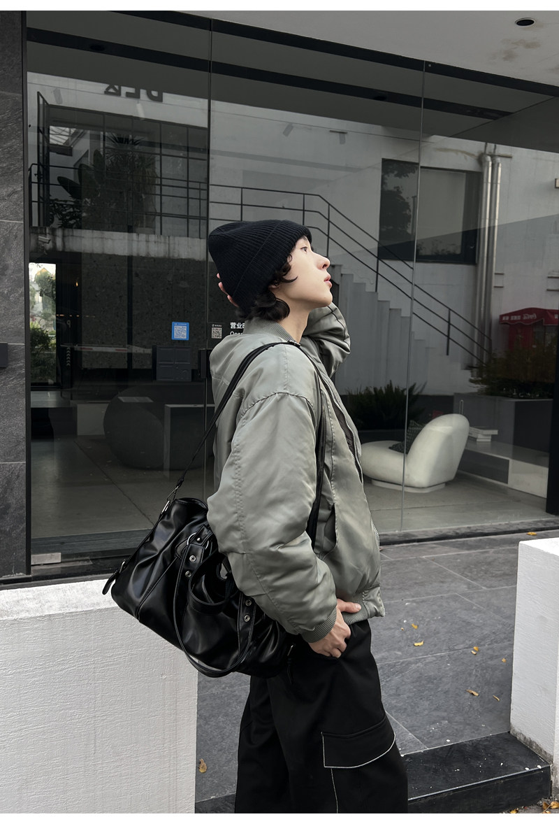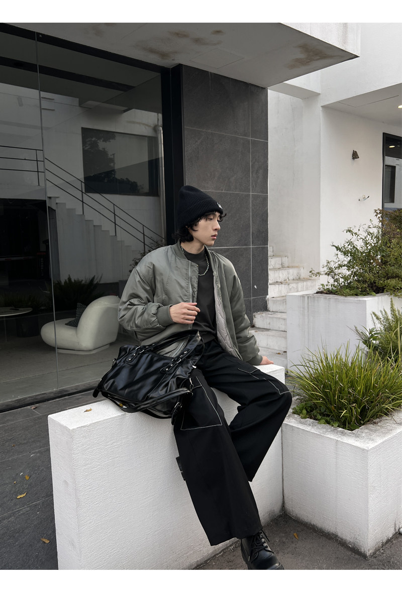 YUEN美式街頭暗黑系原宿單肩斜背大容量腋下手提挎包復古男女托特