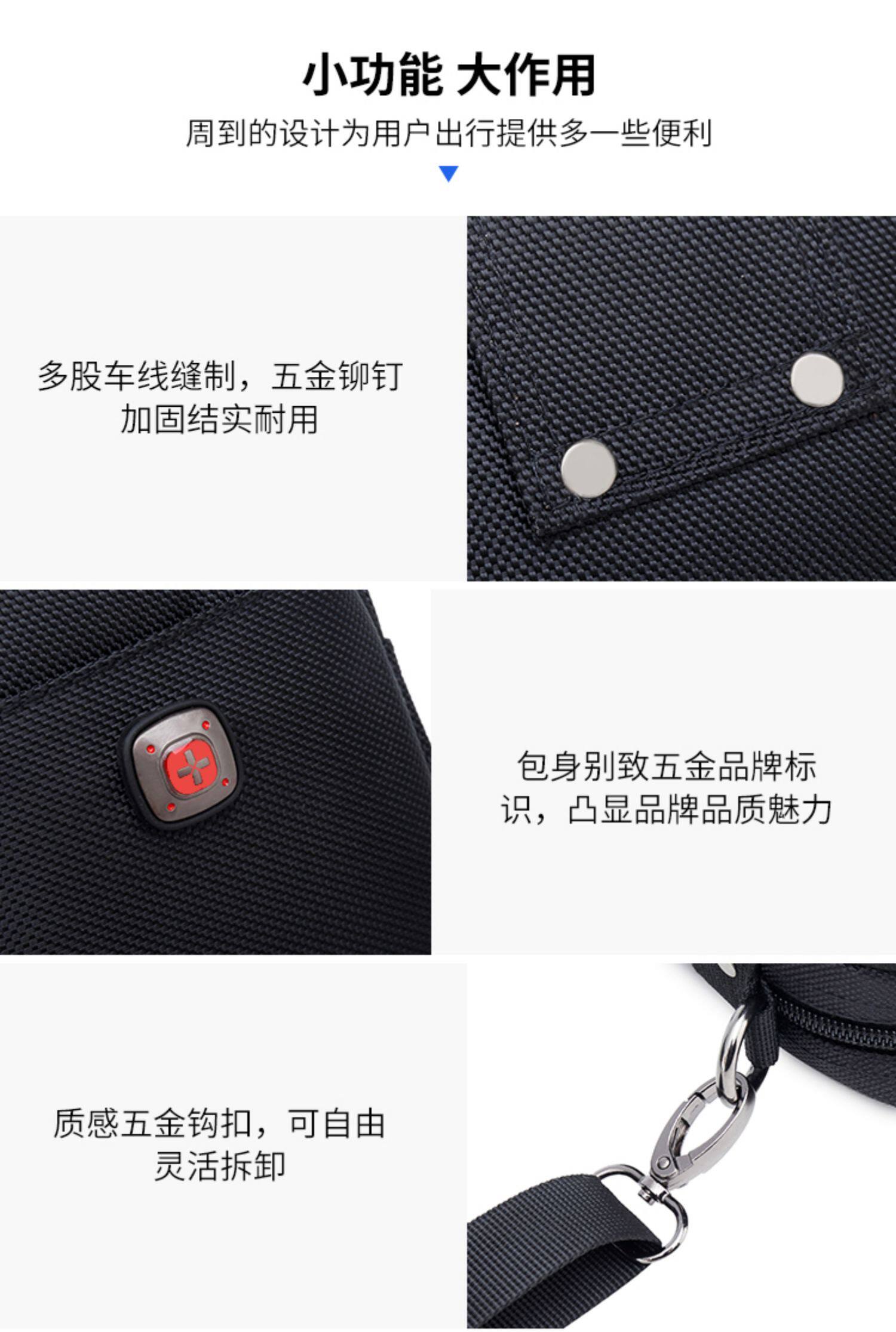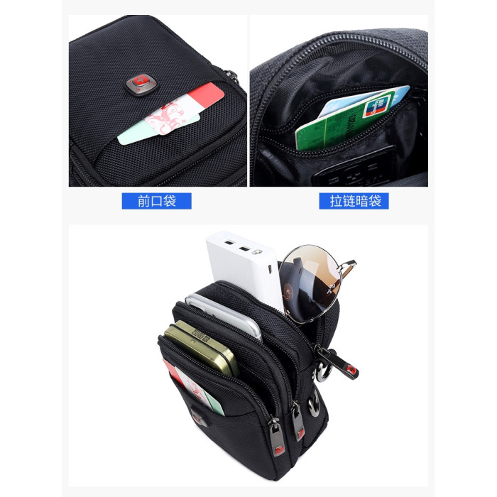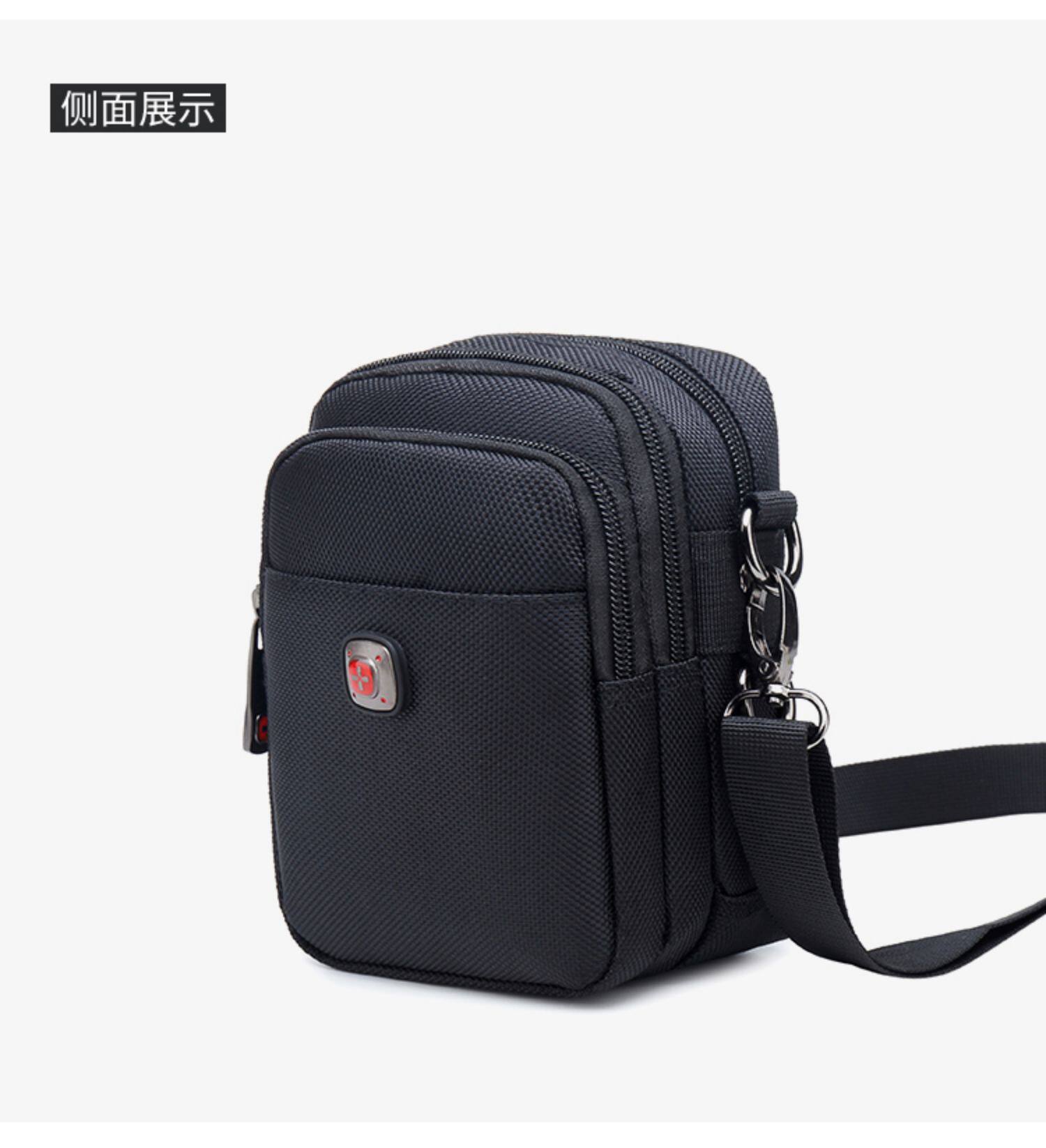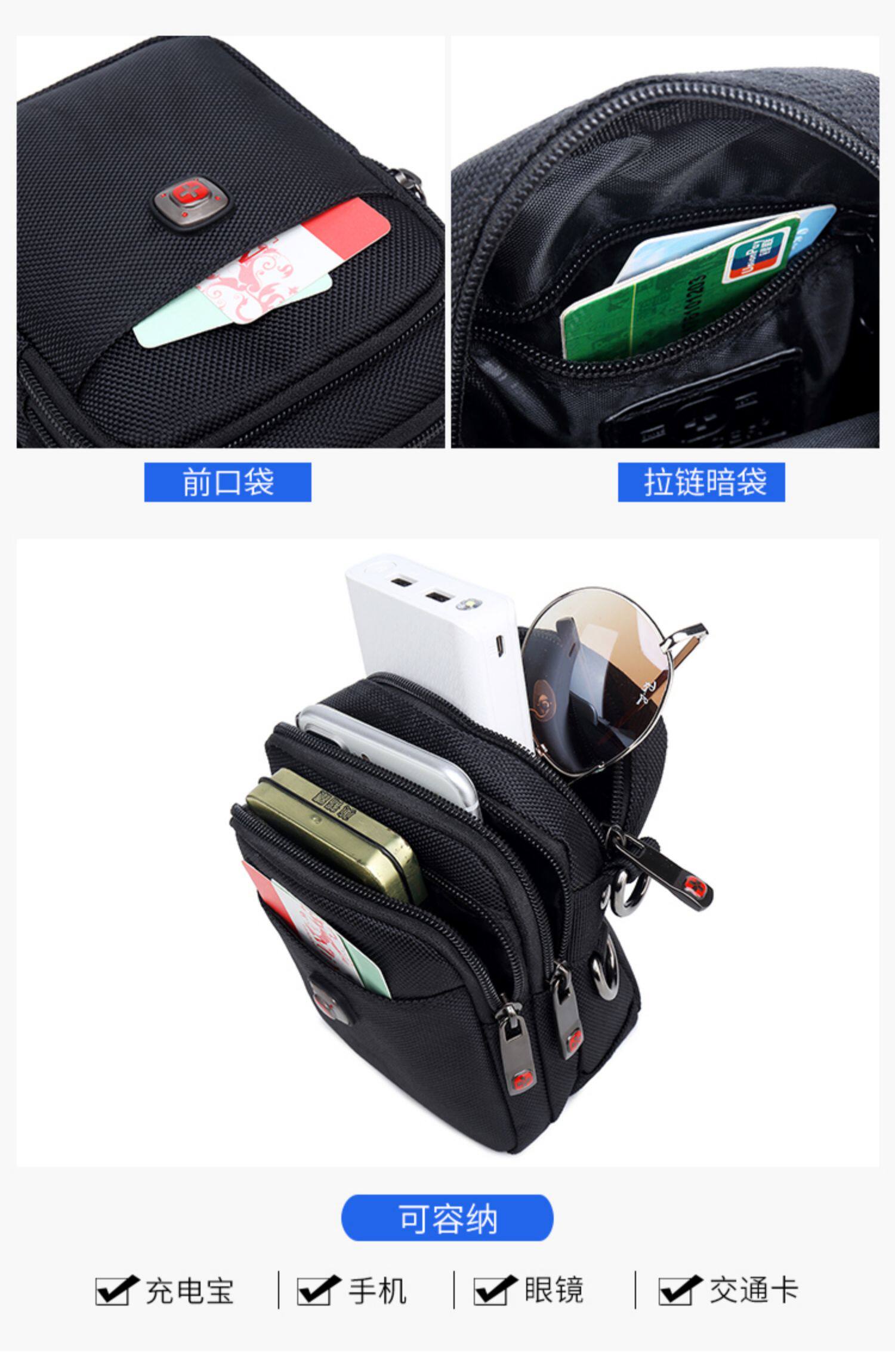 瑞士軍刀男士單肩包牛津布穿皮帶手機腰包帆布運動休閒男斜背小包