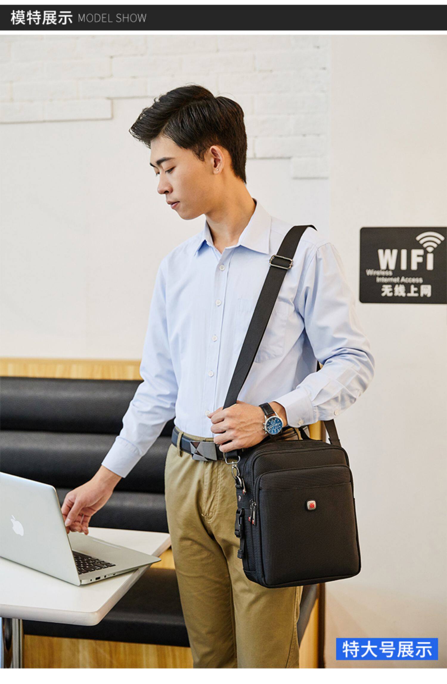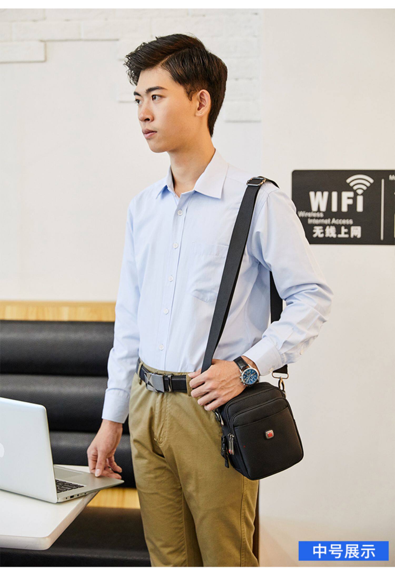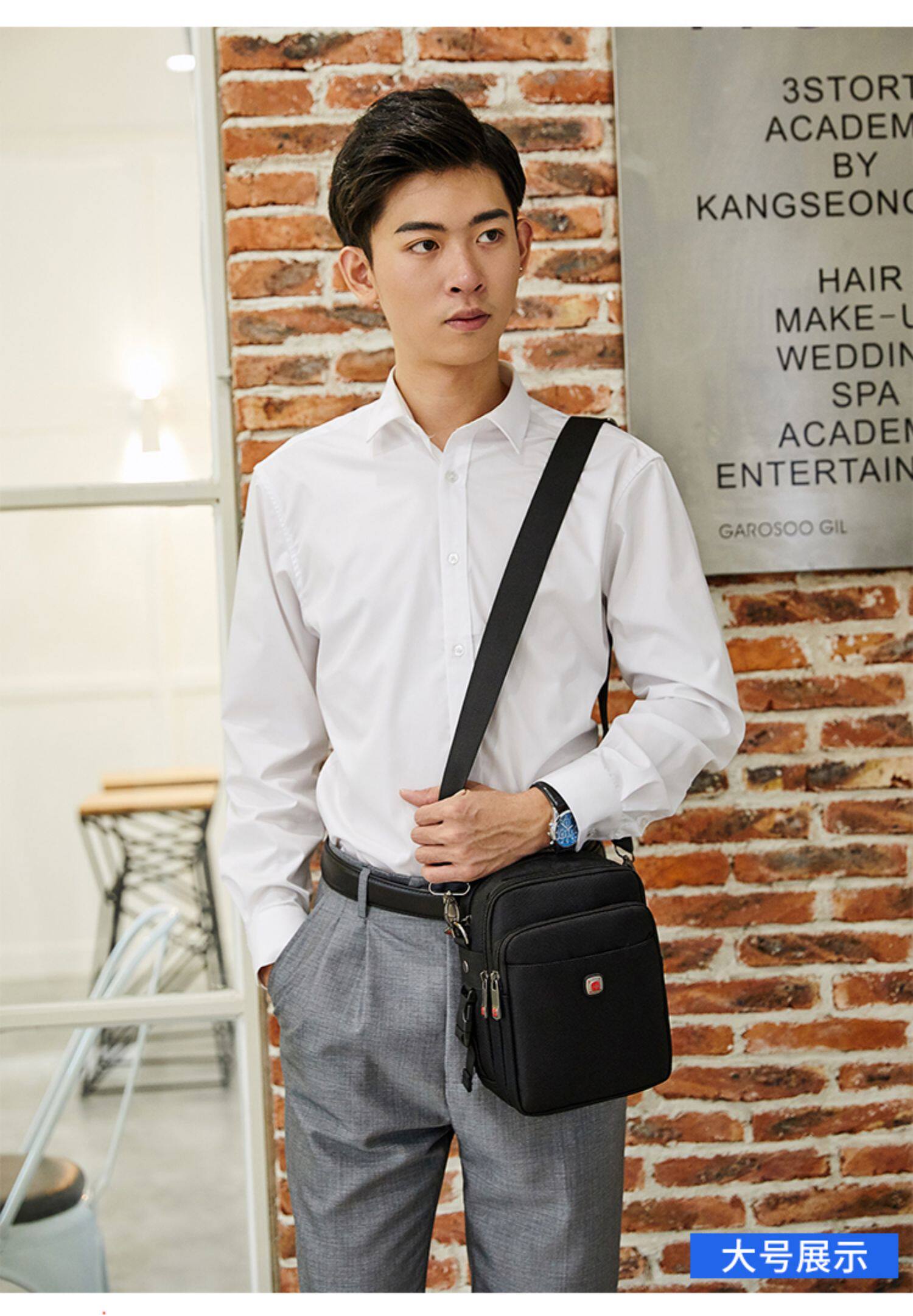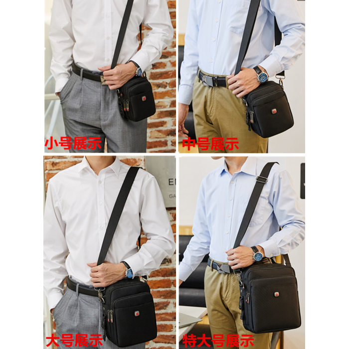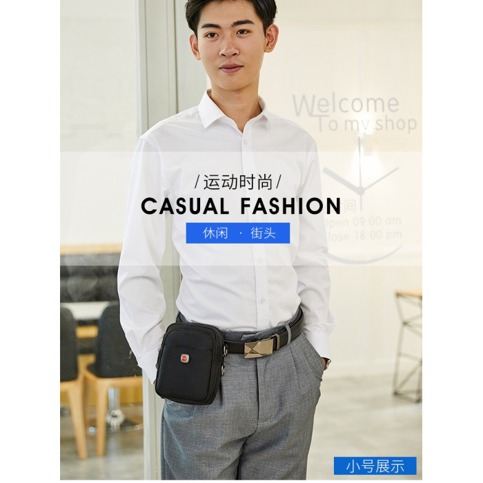 瑞士軍刀男士單肩包牛津布穿皮帶手機腰包帆布運動休閒男斜背小包