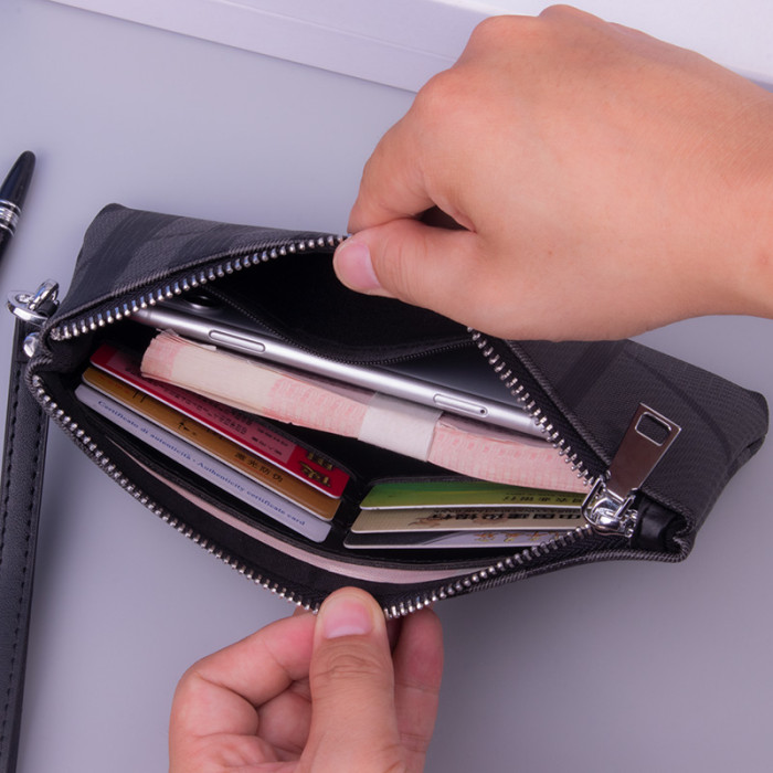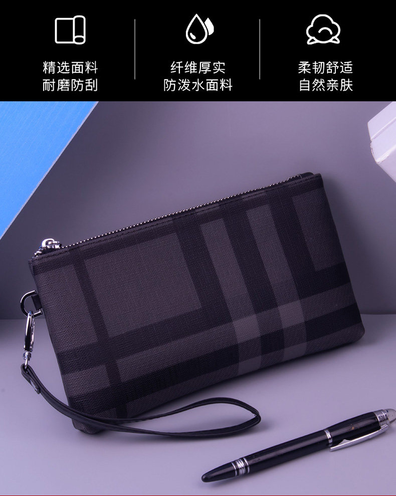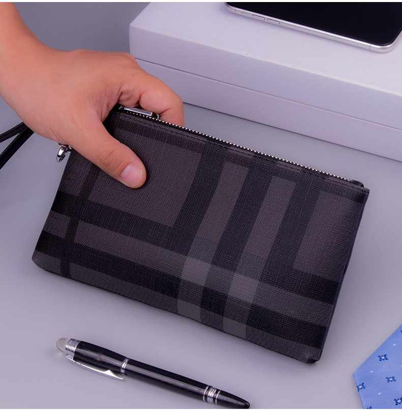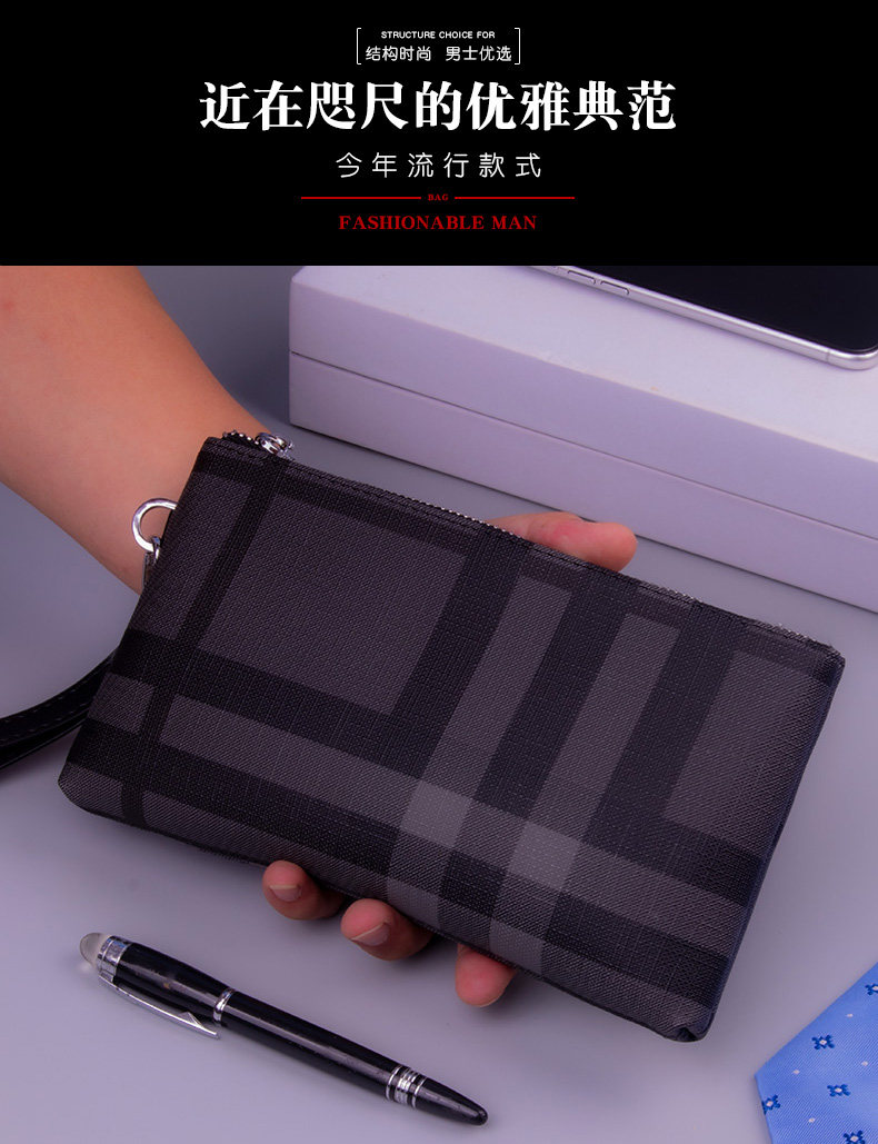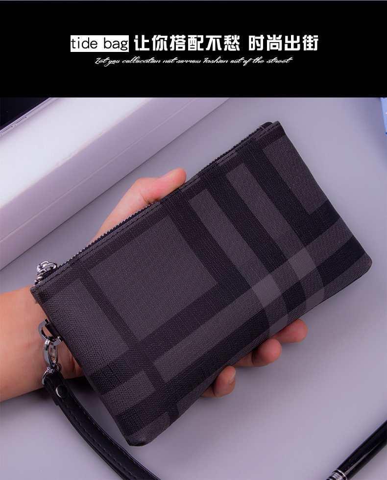 小手包男手拿包男士錢包長款大容量條紋手機包男包手抓包格子休閒