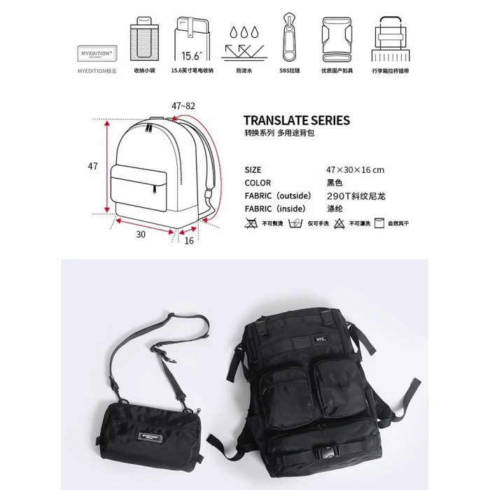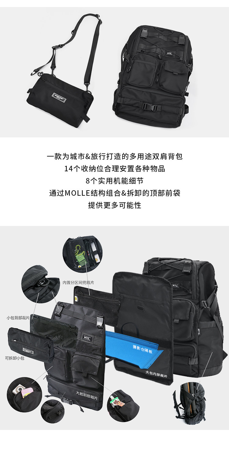 MYE潮牌機能書包旅遊攝影相機後後背包登山包大容量旅行電腦雙肩包男