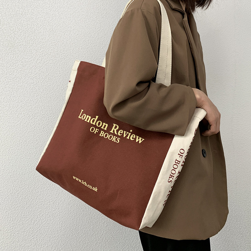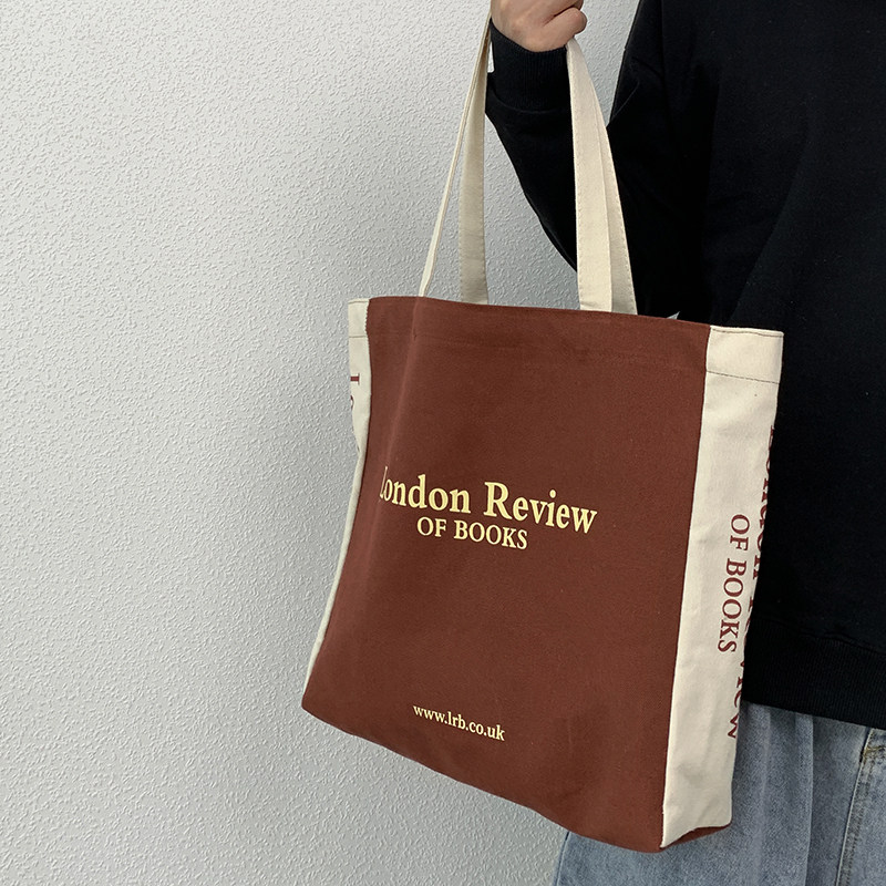 日系ins潮牌大容量復古中學生手提書包男女休閒通勤帆布單肩包袋
