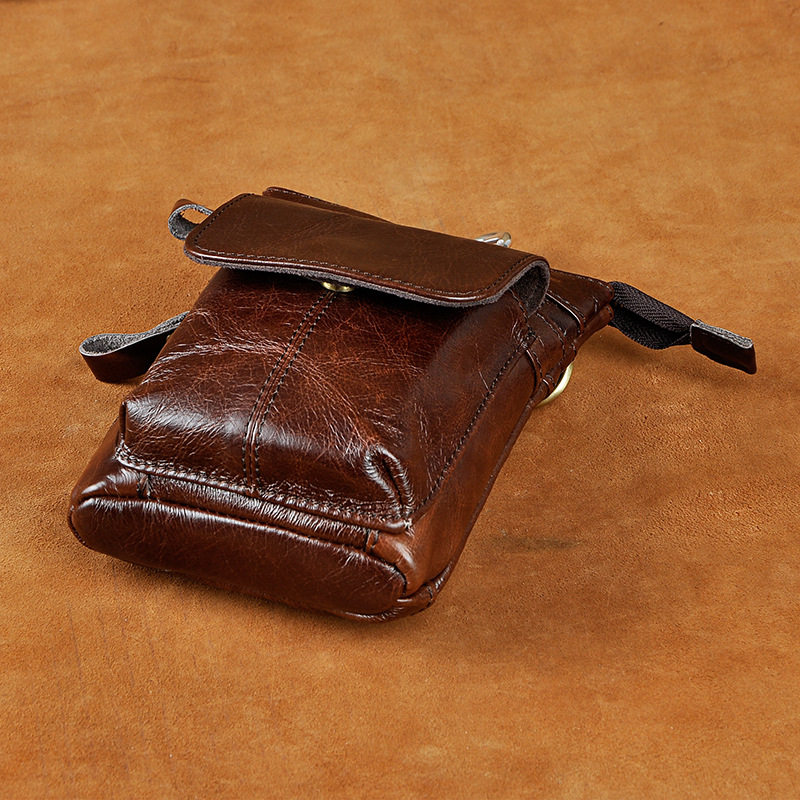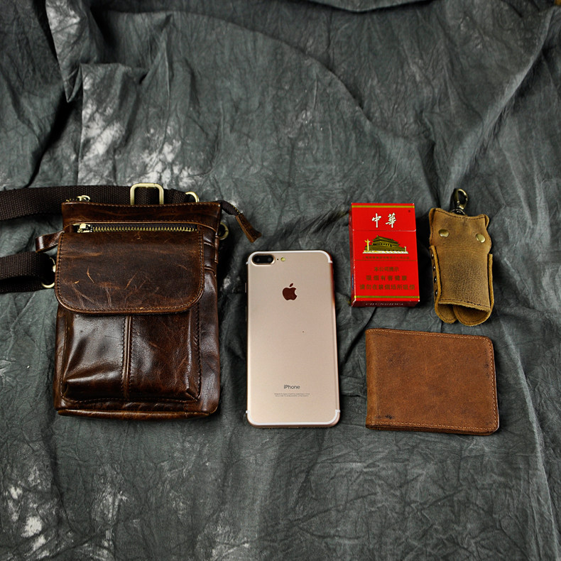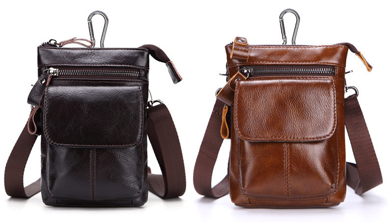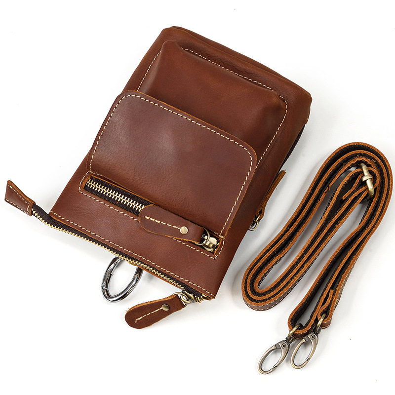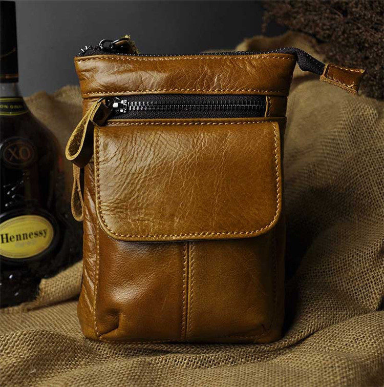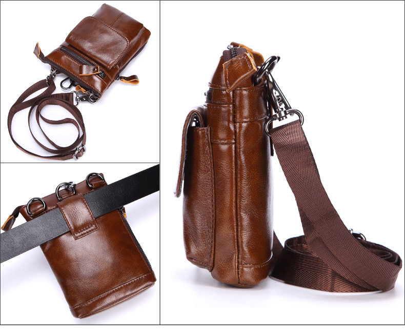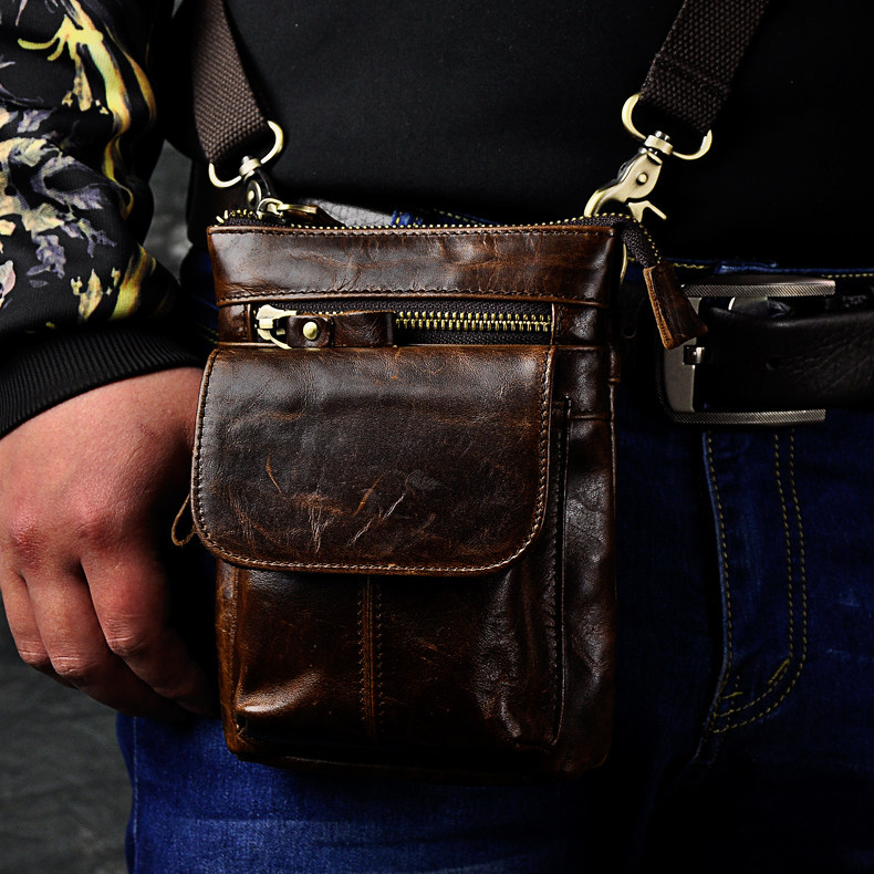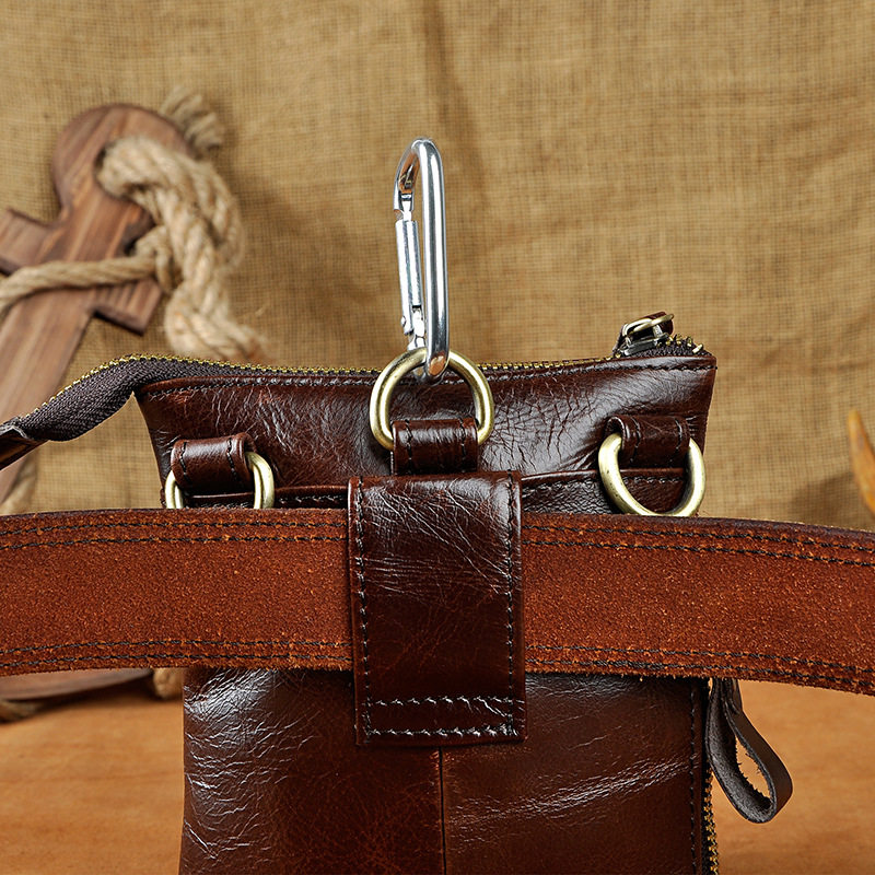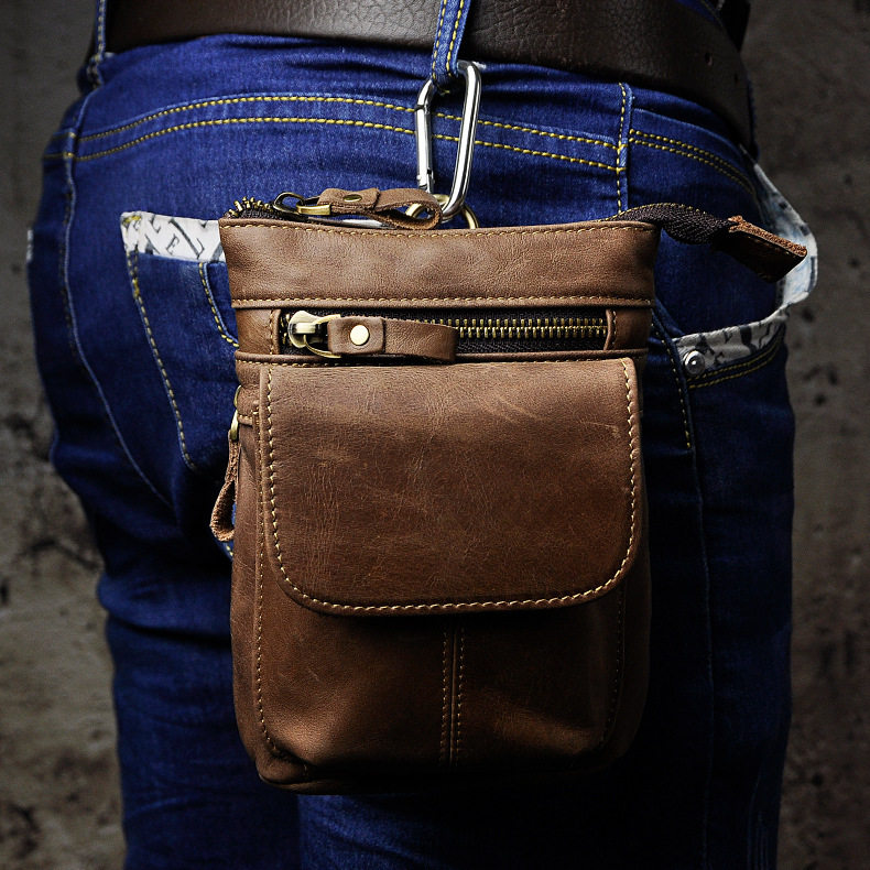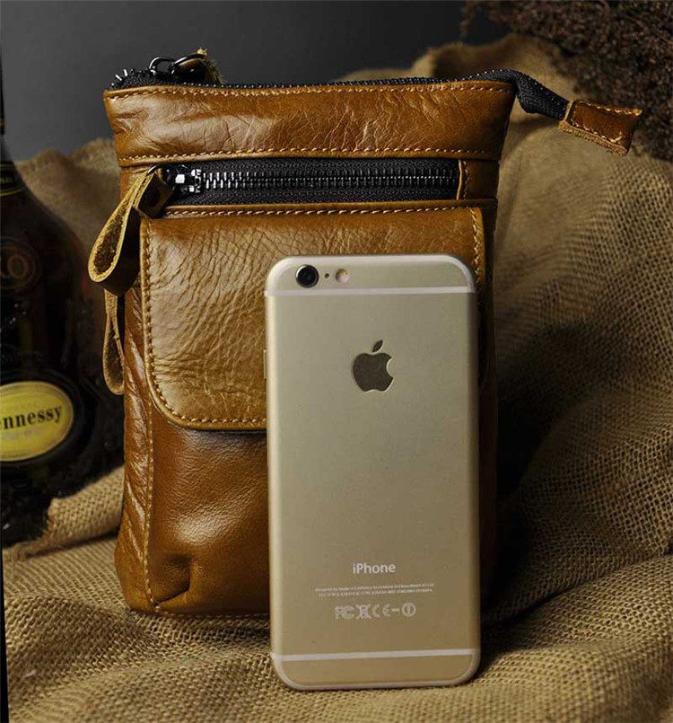 真皮男士復古手機戶外7寸帶掛鉤小腰包油蠟皮穿皮帶腰包單肩斜背