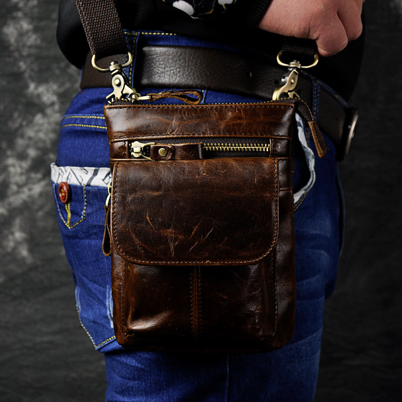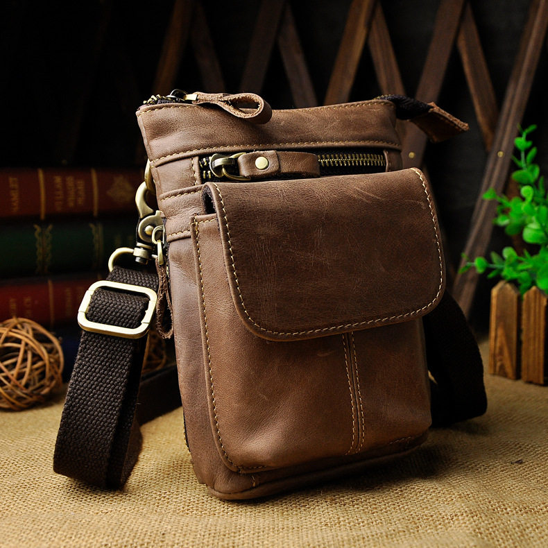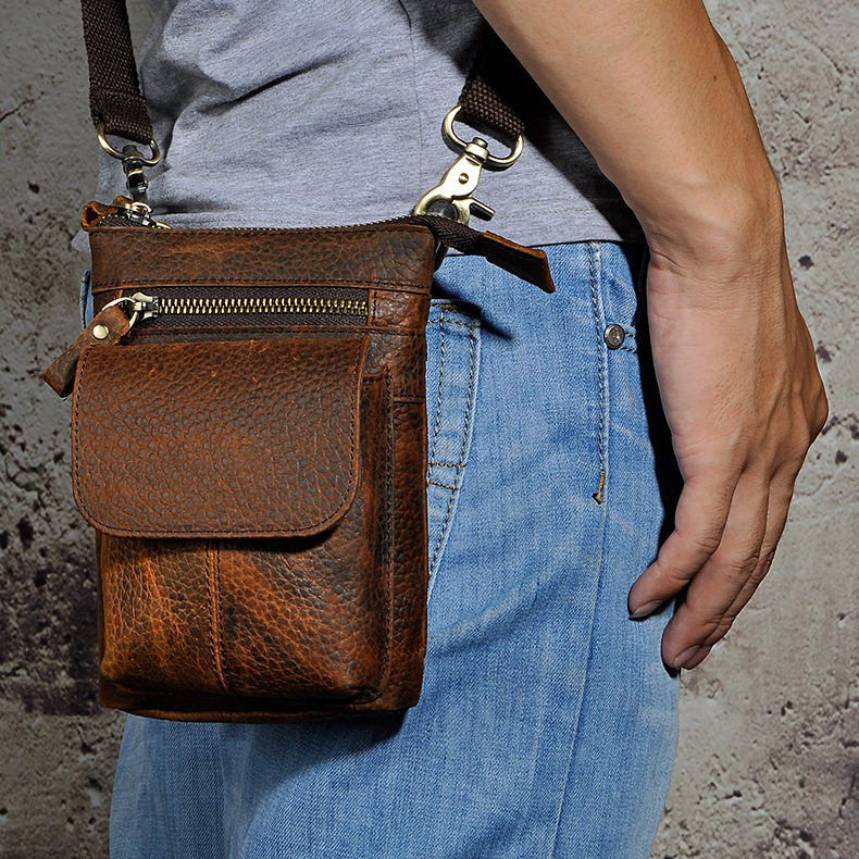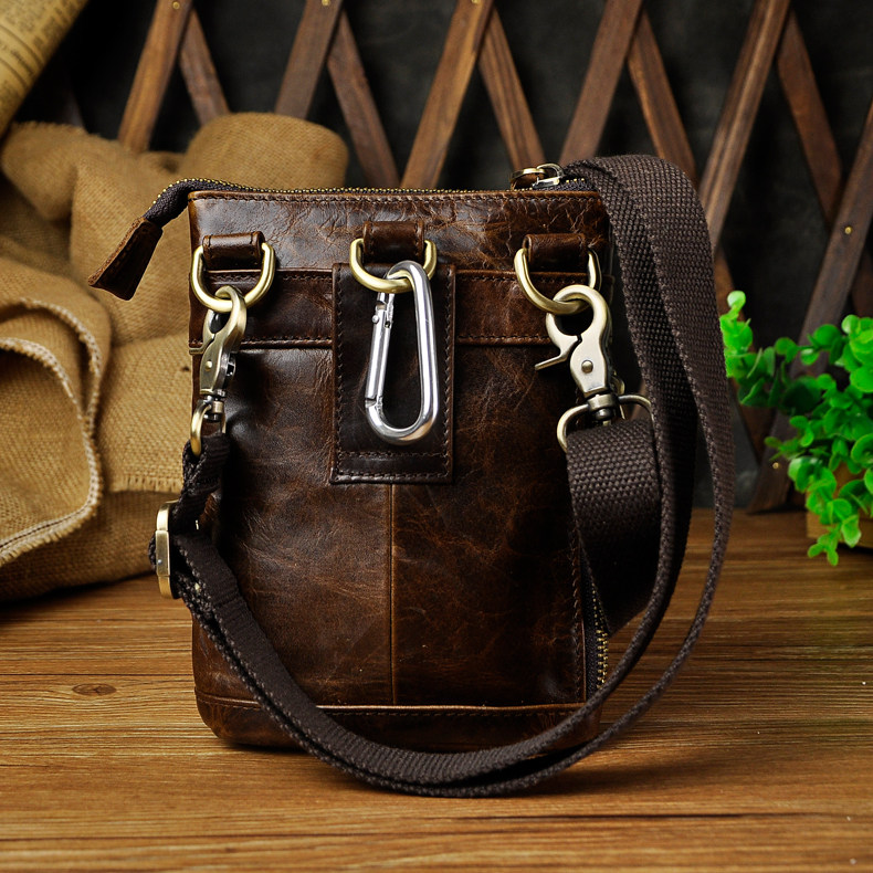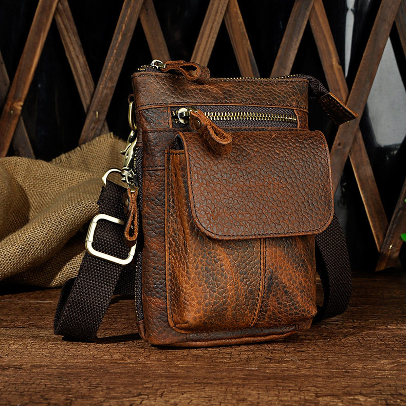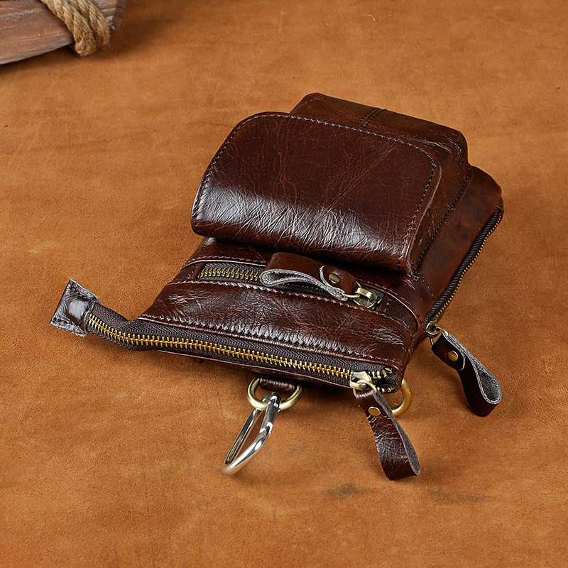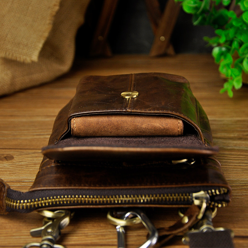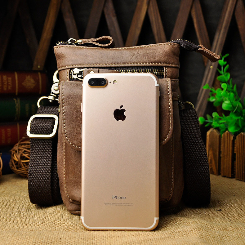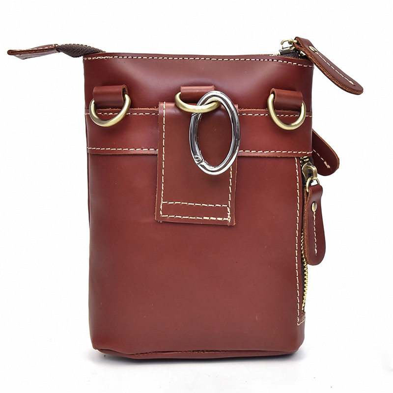真皮男士復古手機戶外7寸帶掛鉤小腰包油蠟皮穿皮帶腰包單肩斜背