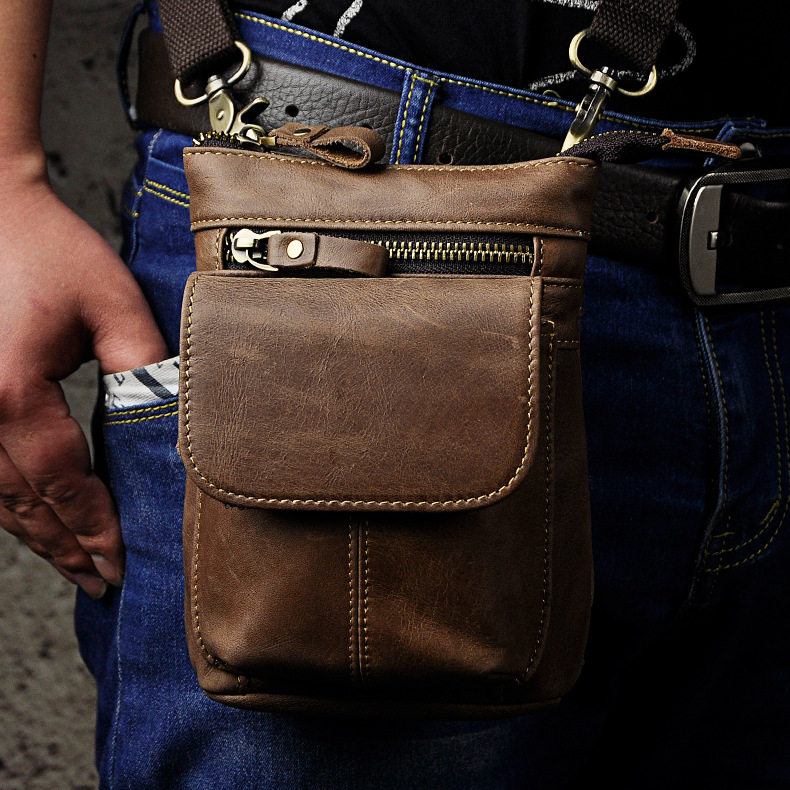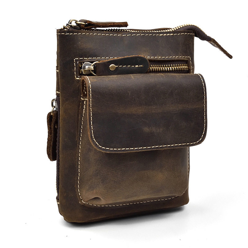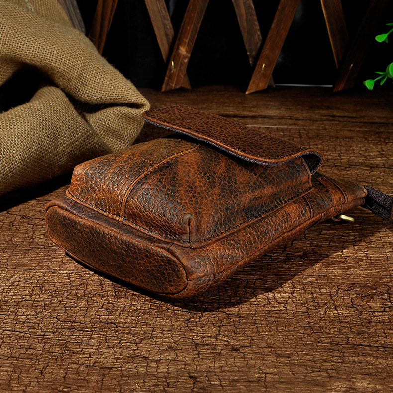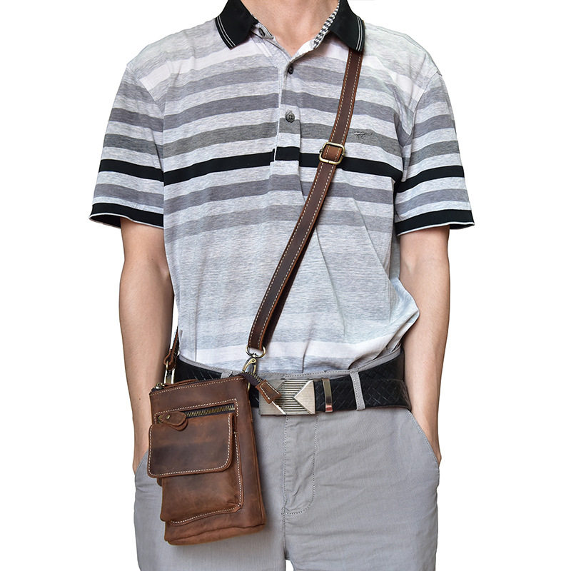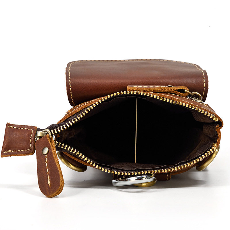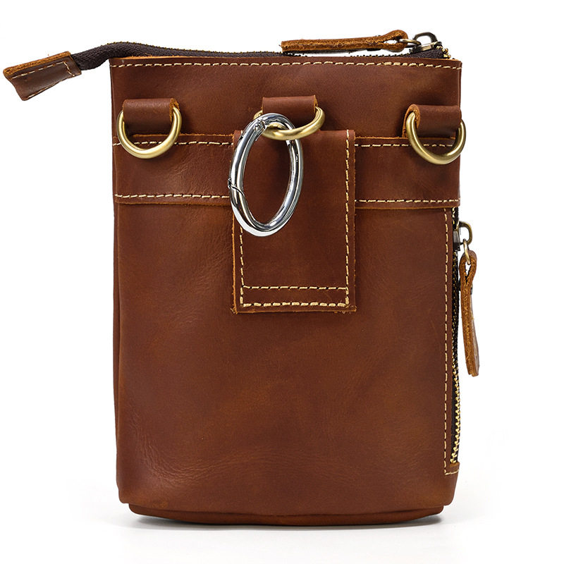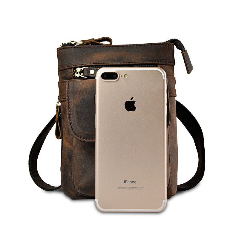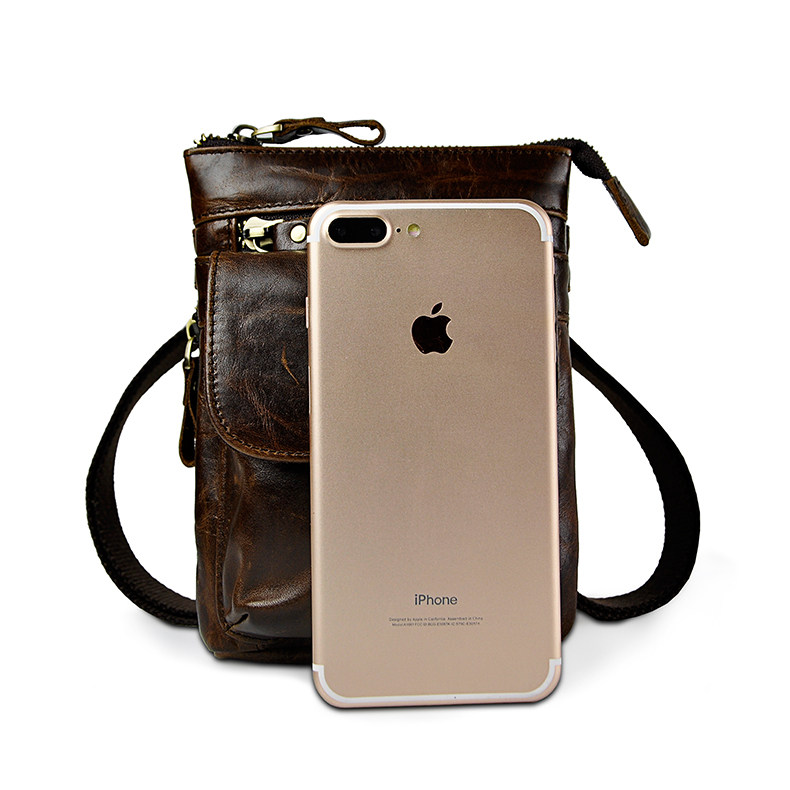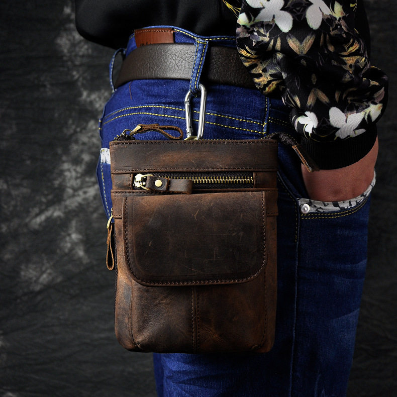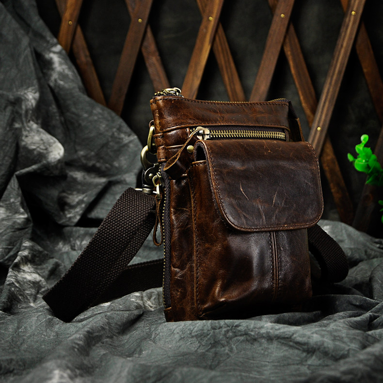 真皮男士復古手機戶外7寸帶掛鉤小腰包油蠟皮穿皮帶腰包單肩斜背