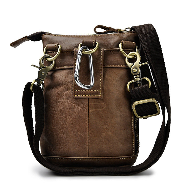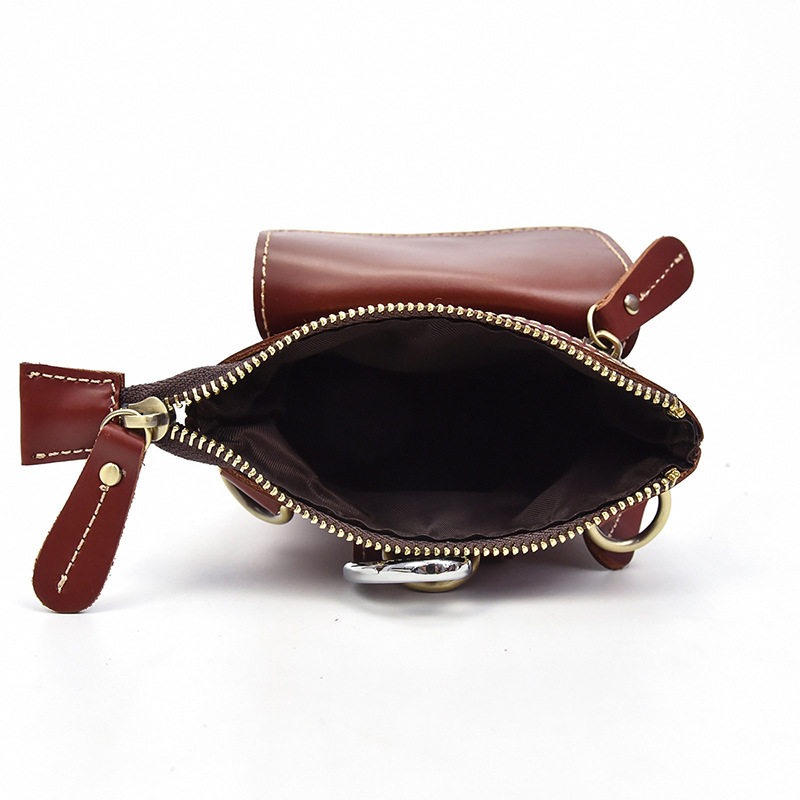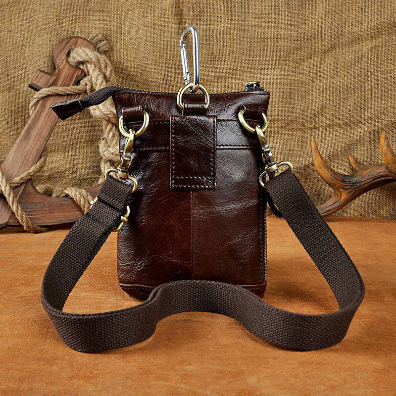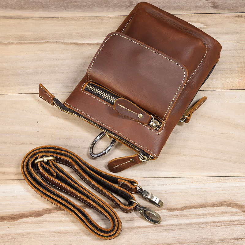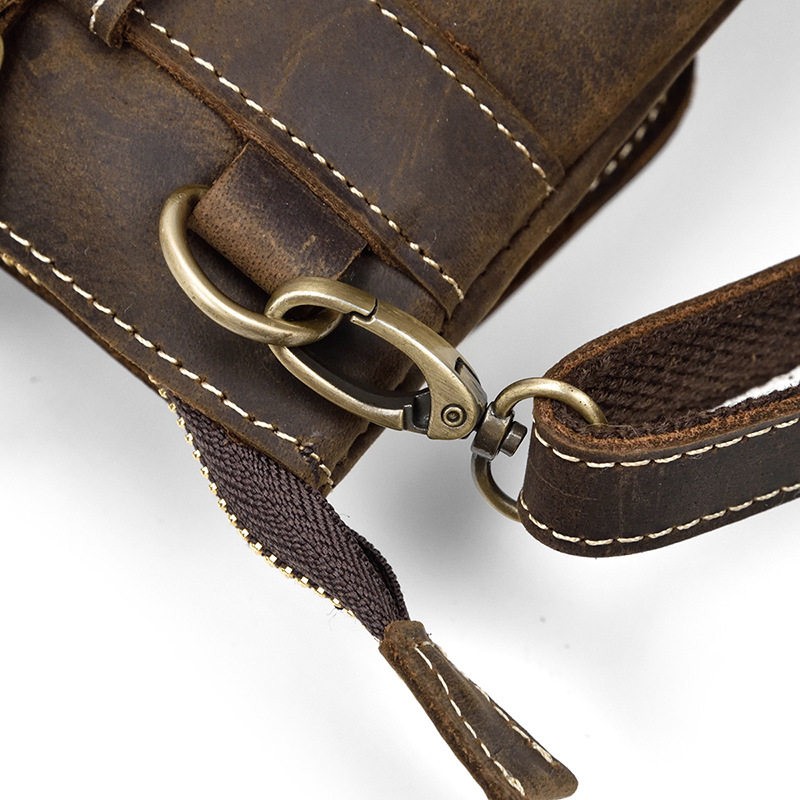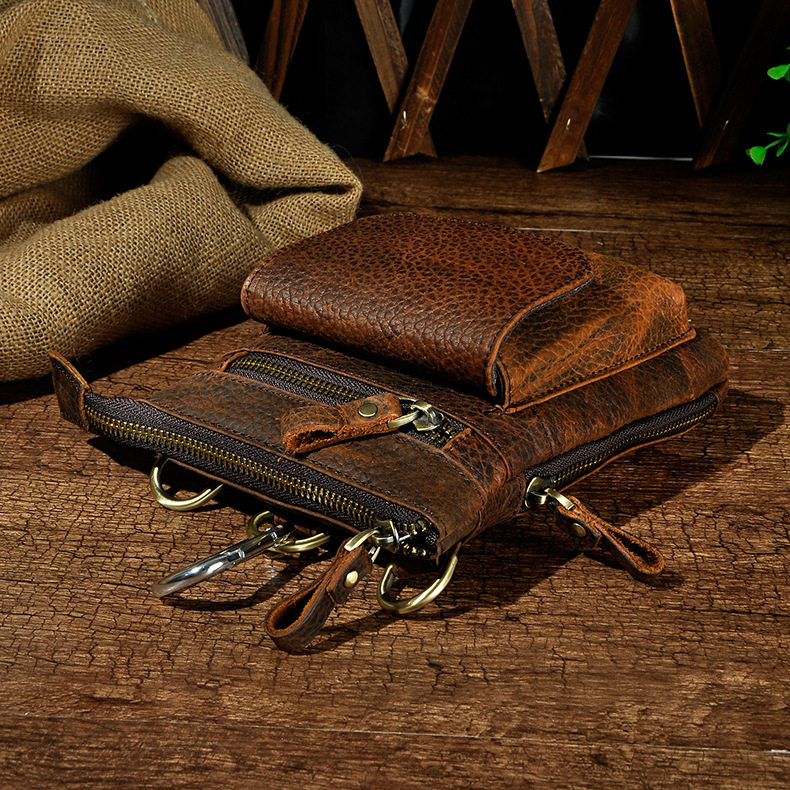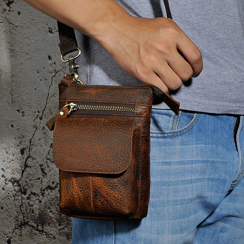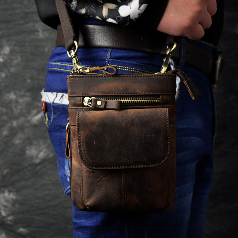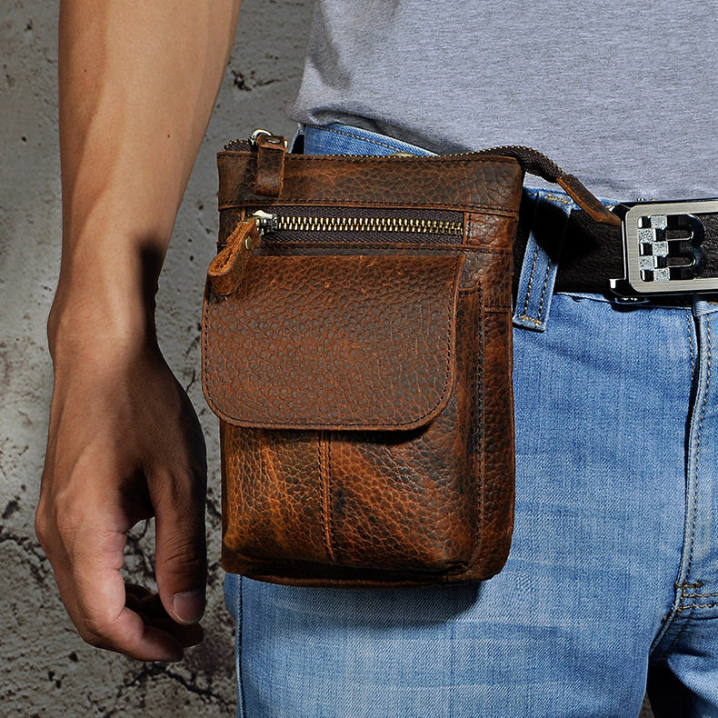 真皮男士復古手機戶外7寸帶掛鉤小腰包油蠟皮穿皮帶腰包單肩斜背