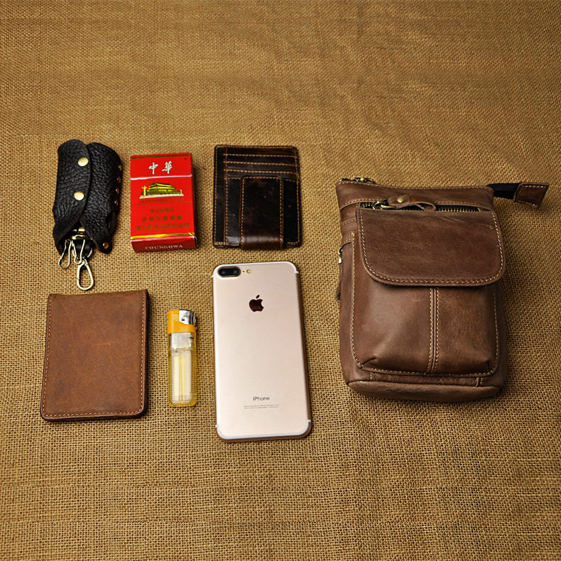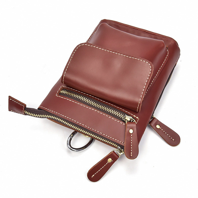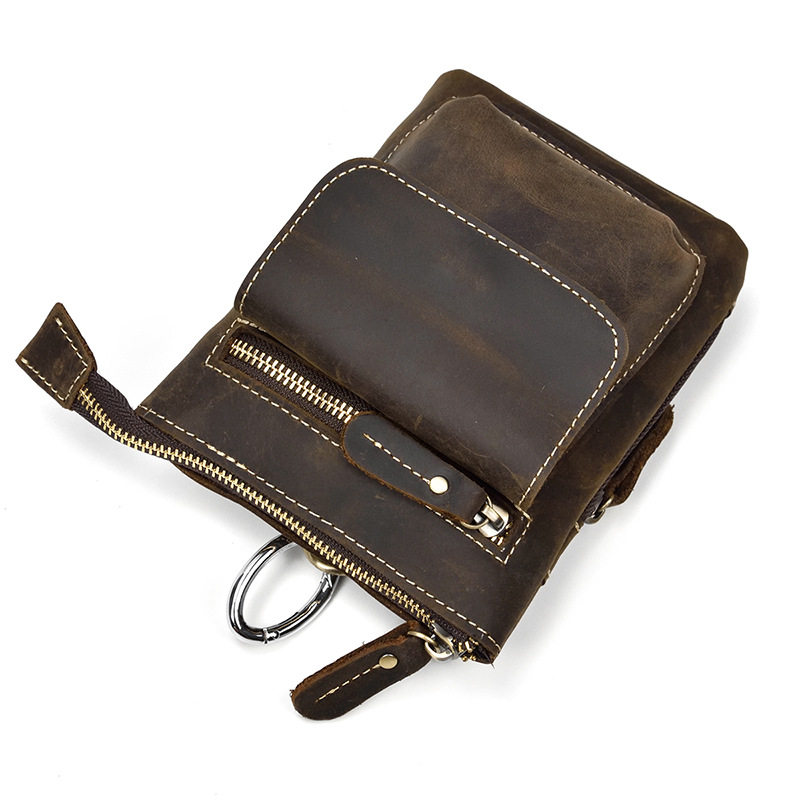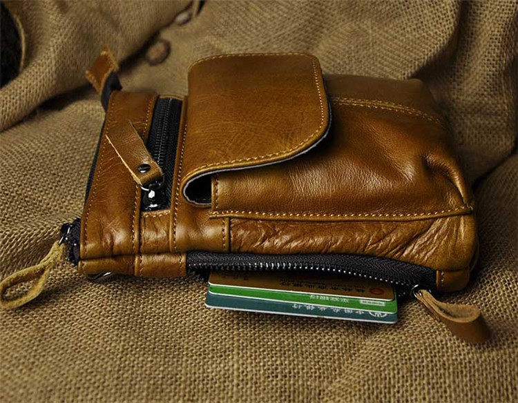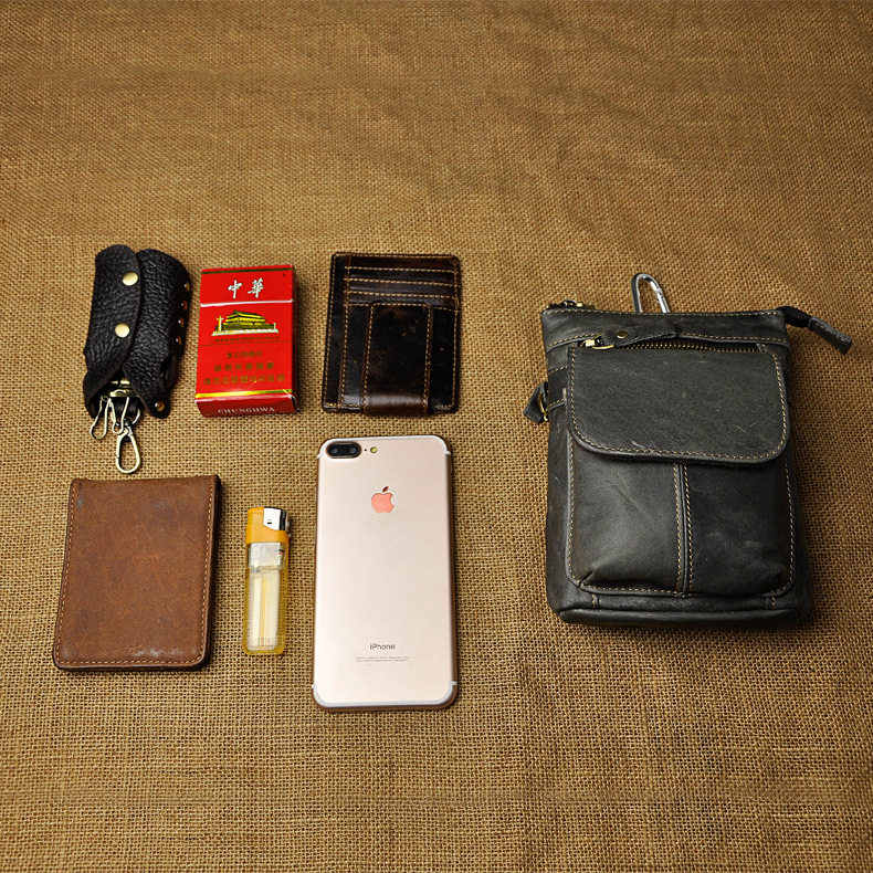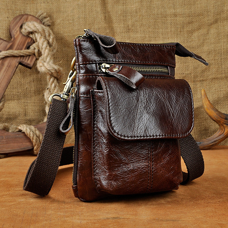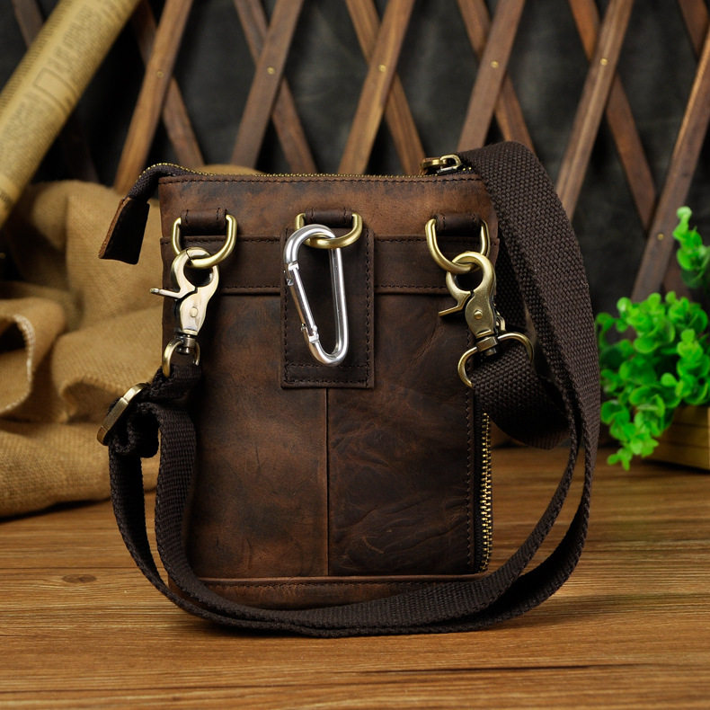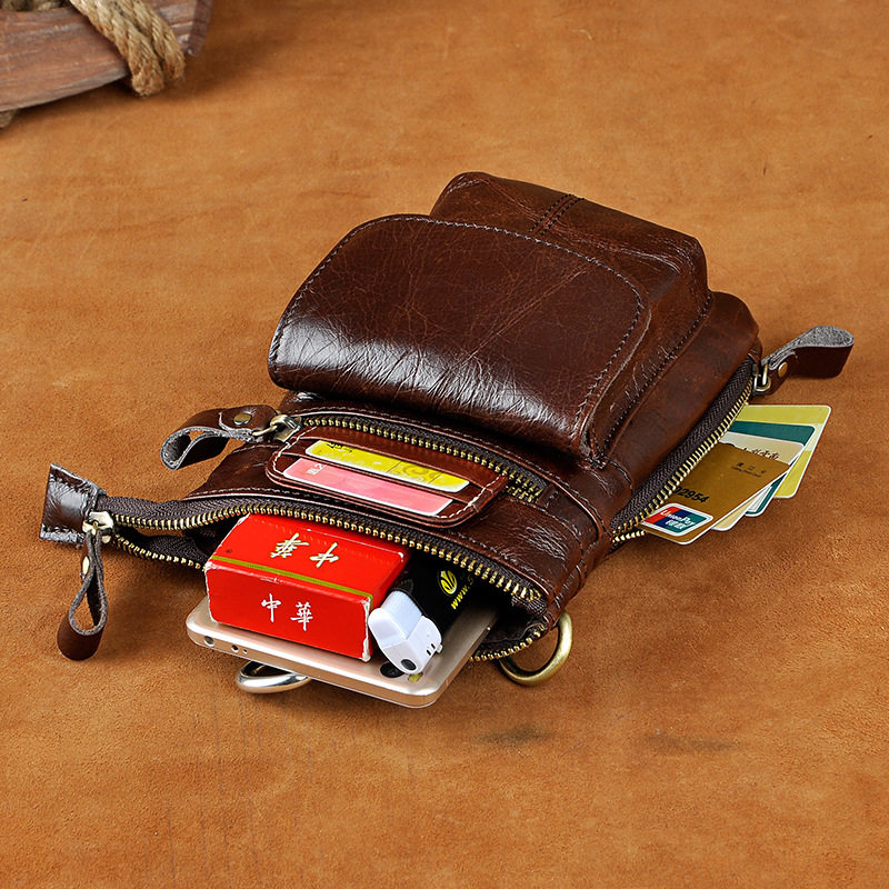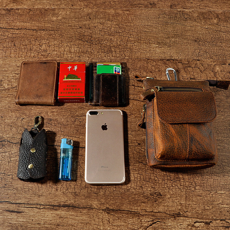 真皮男士復古手機戶外7寸帶掛鉤小腰包油蠟皮穿皮帶腰包單肩斜背