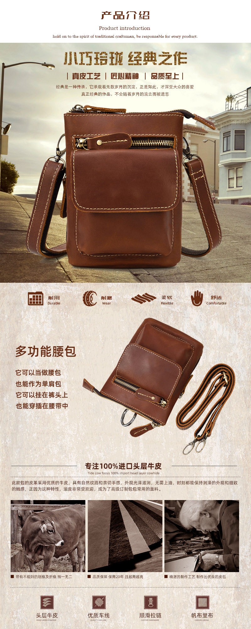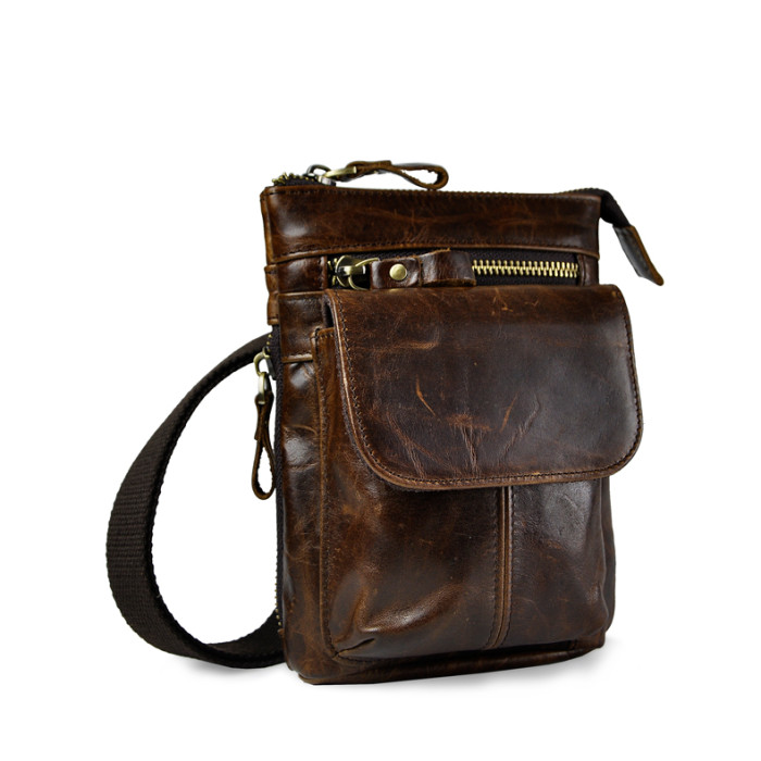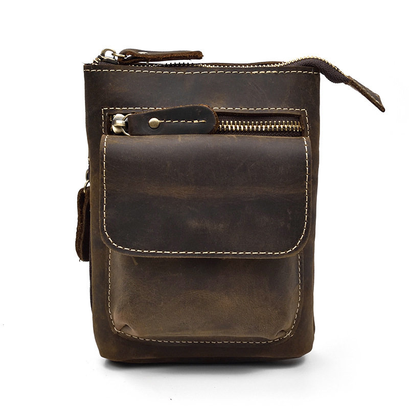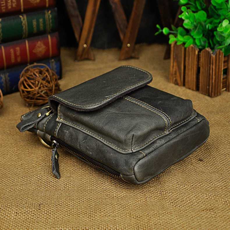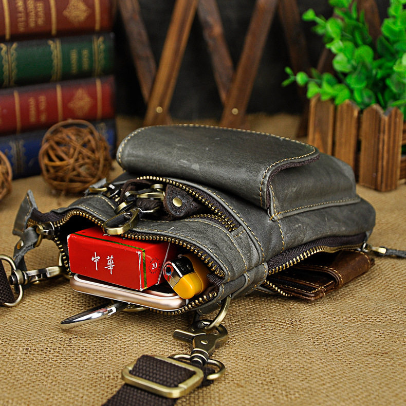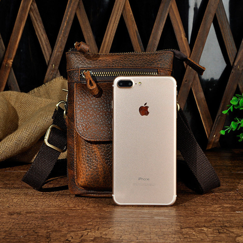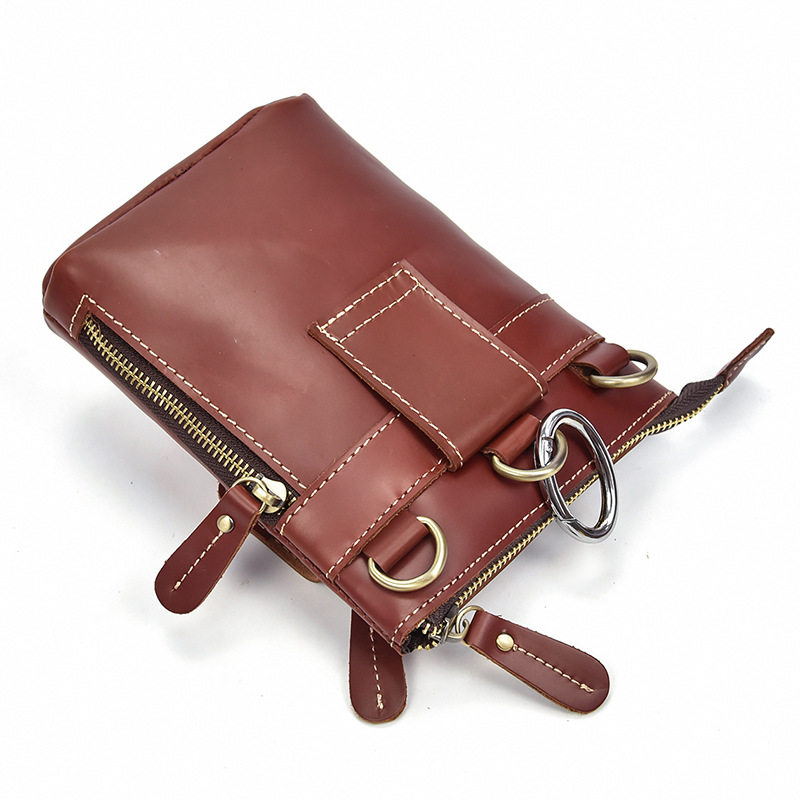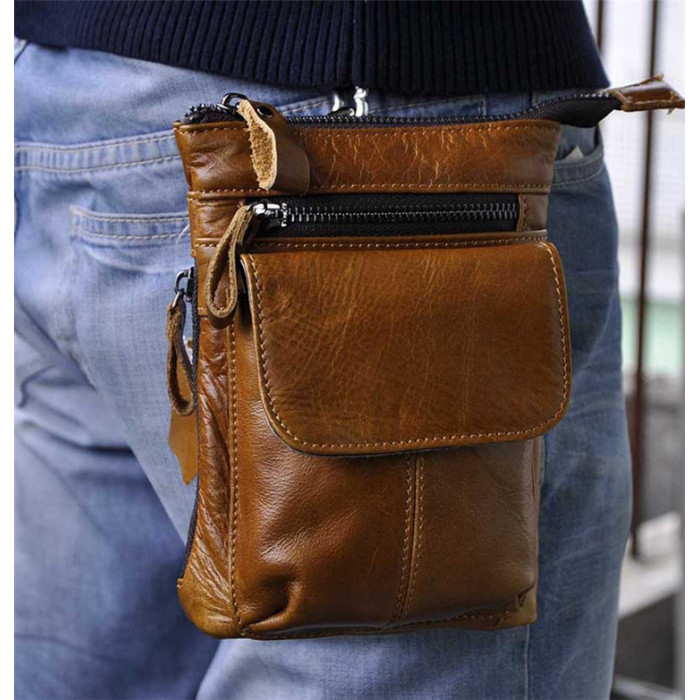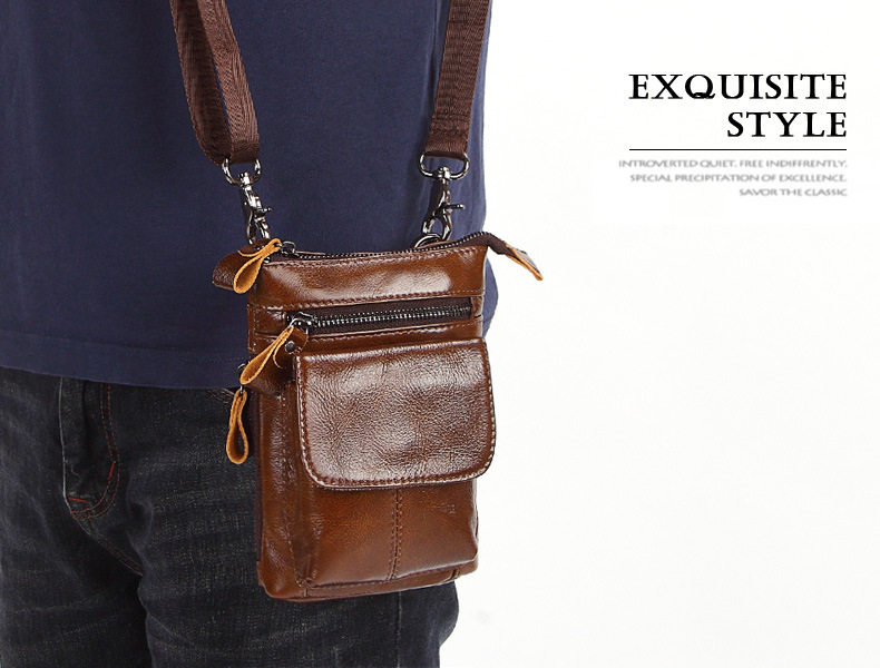 真皮男士復古手機戶外7寸帶掛鉤小腰包油蠟皮穿皮帶腰包單肩斜背