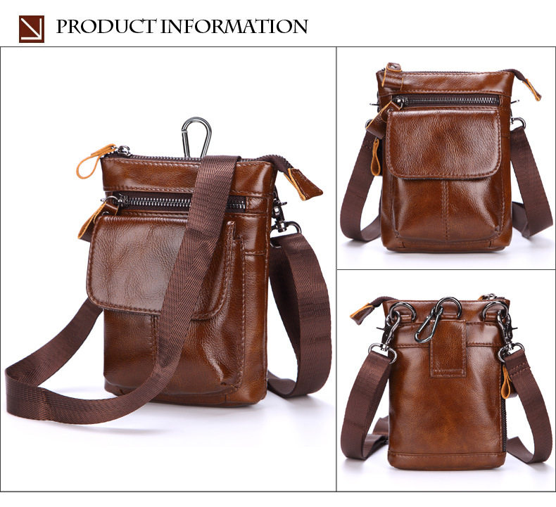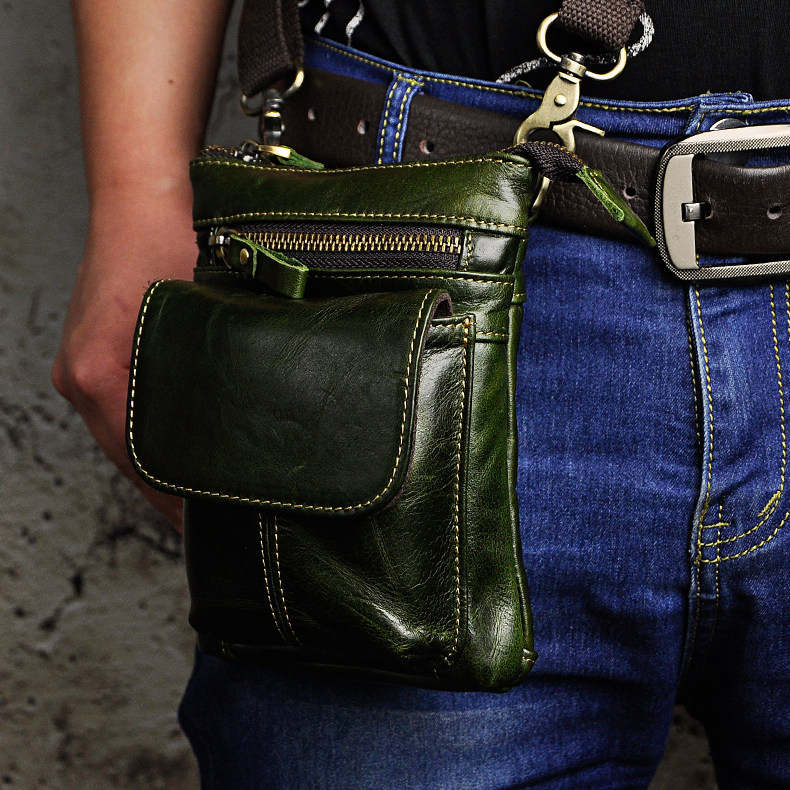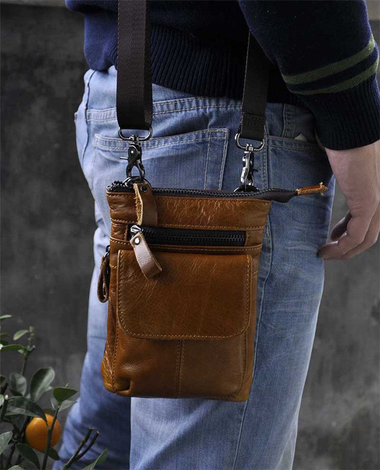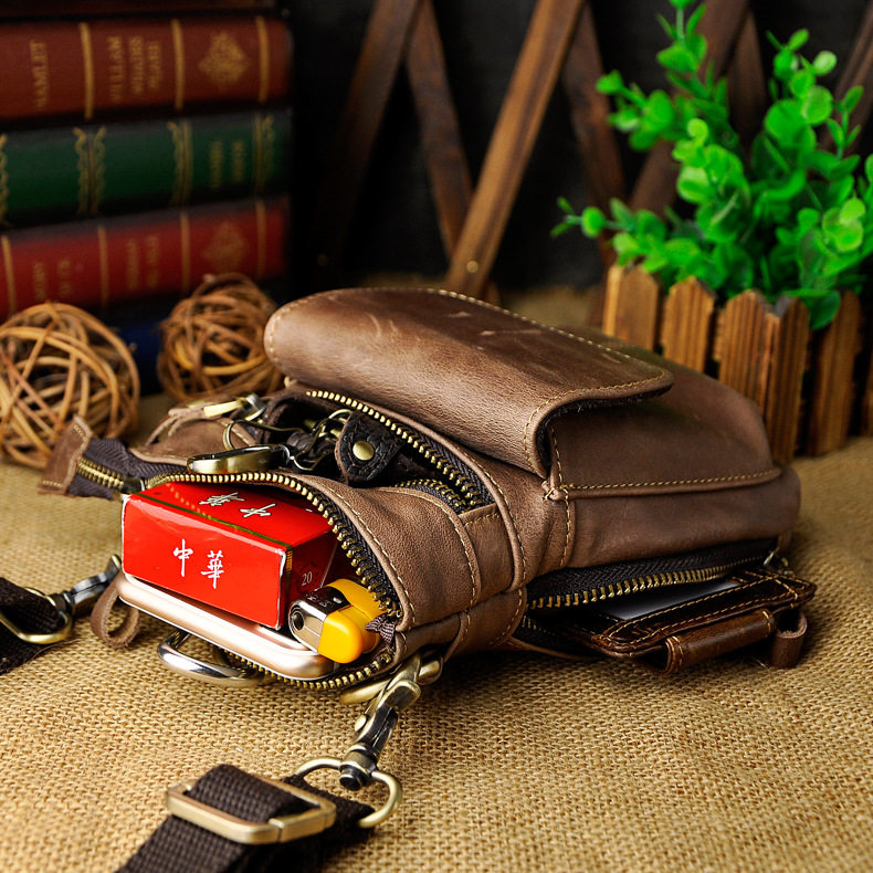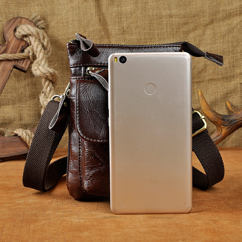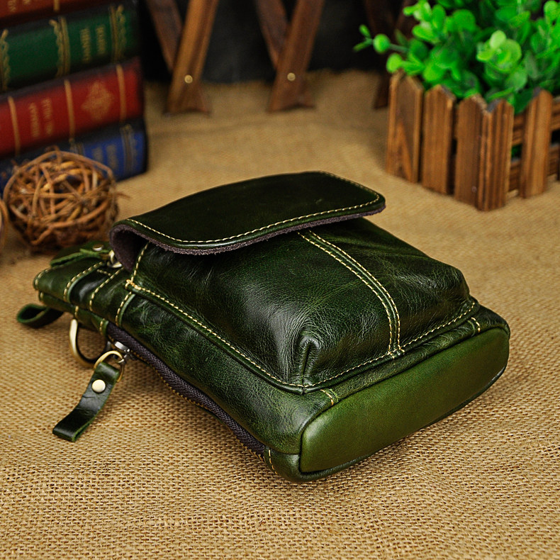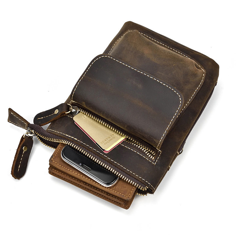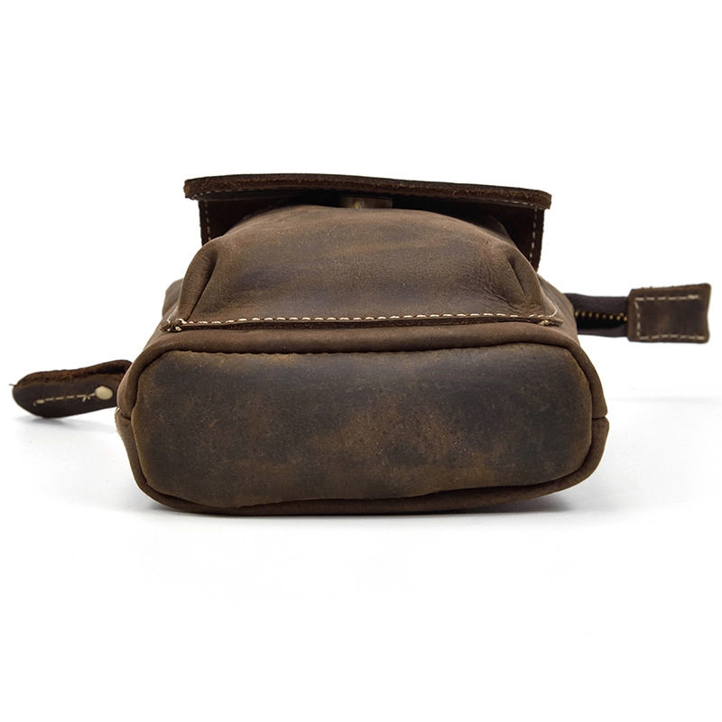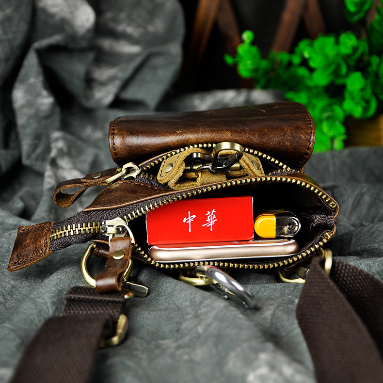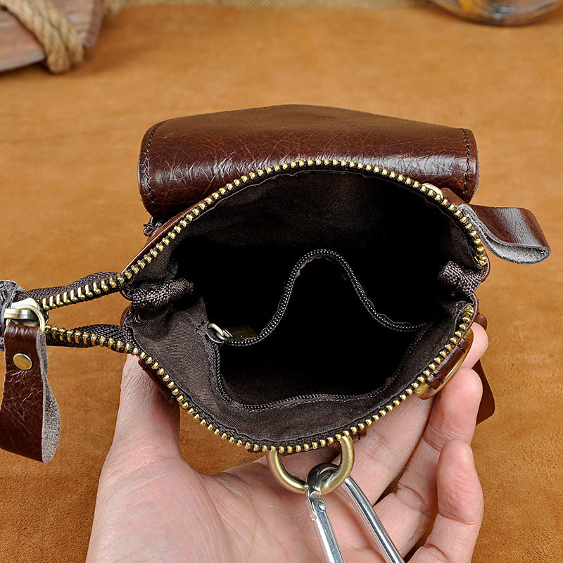 真皮男士復古手機戶外7寸帶掛鉤小腰包油蠟皮穿皮帶腰包單肩斜背