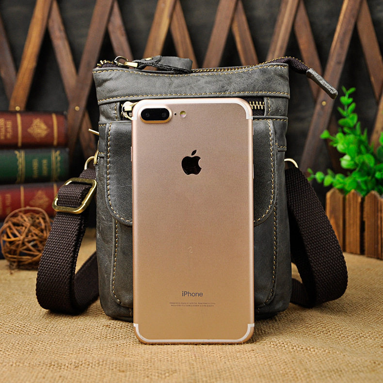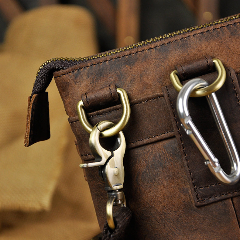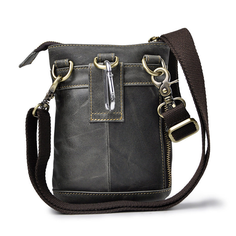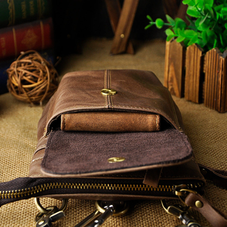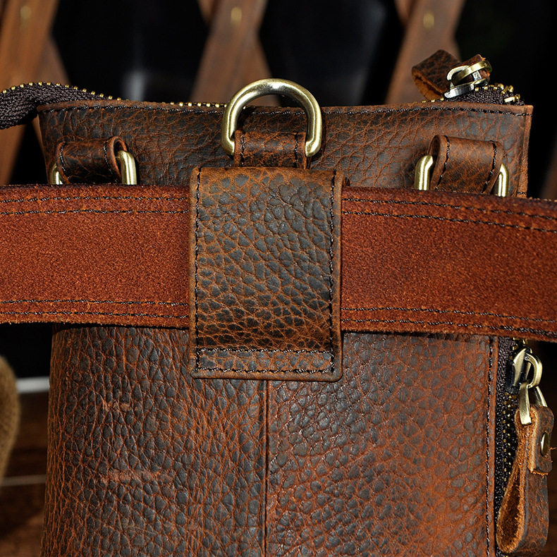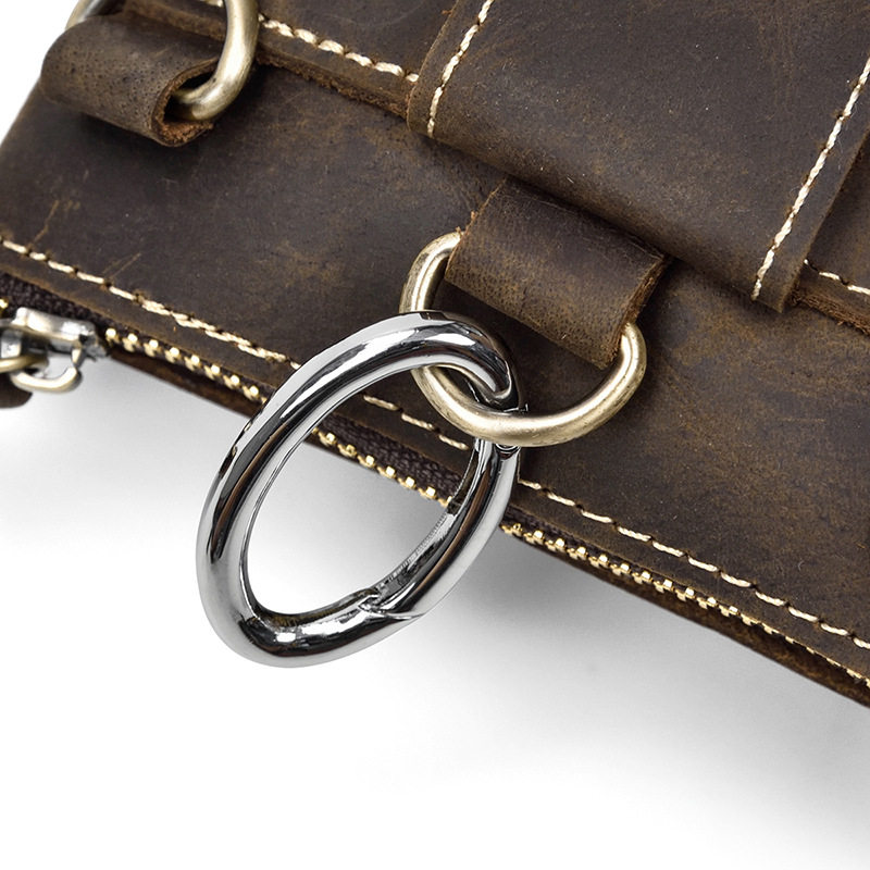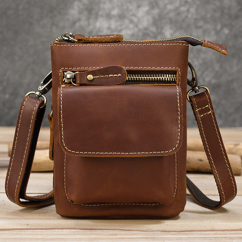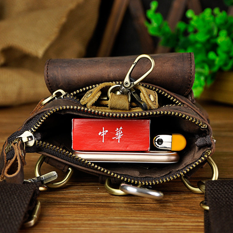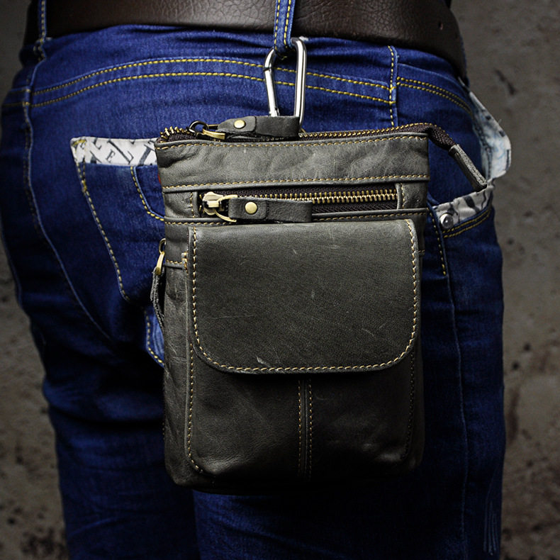 真皮男士復古手機戶外7寸帶掛鉤小腰包油蠟皮穿皮帶腰包單肩斜背