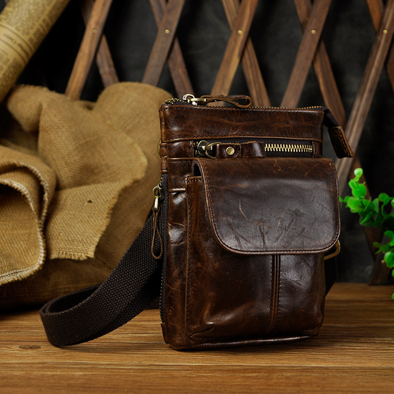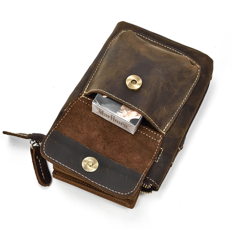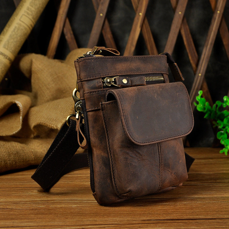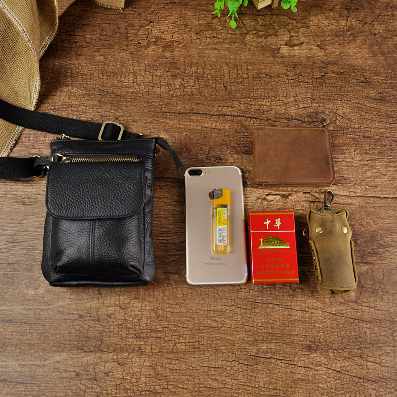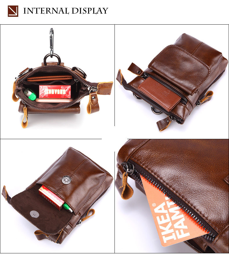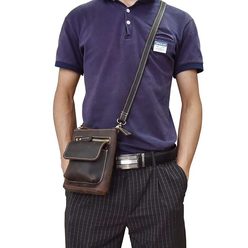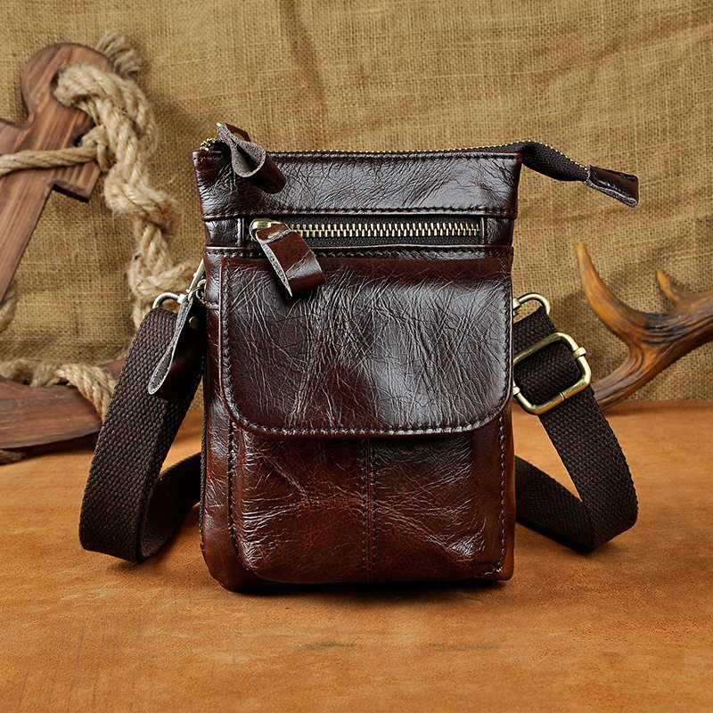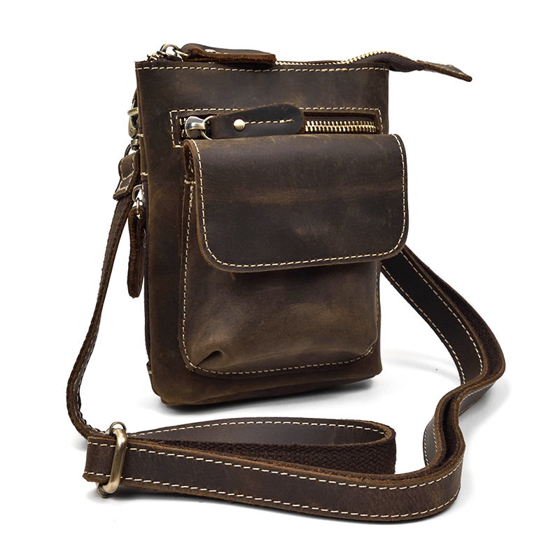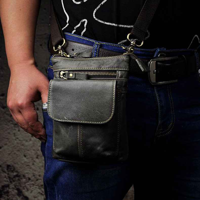 真皮男士復古手機戶外7寸帶掛鉤小腰包油蠟皮穿皮帶腰包單肩斜背