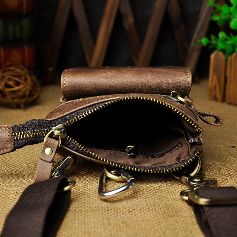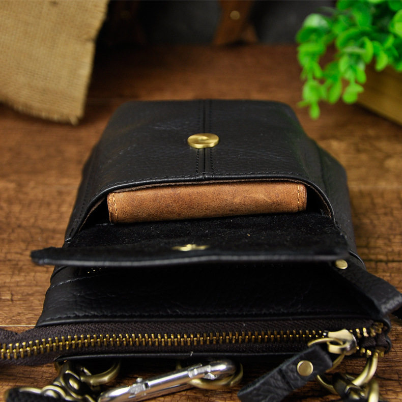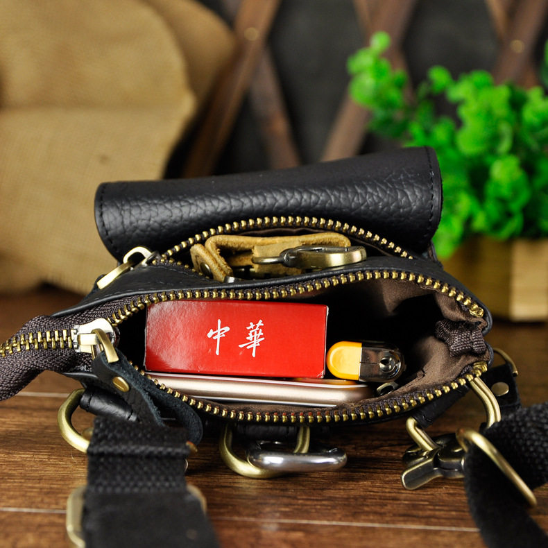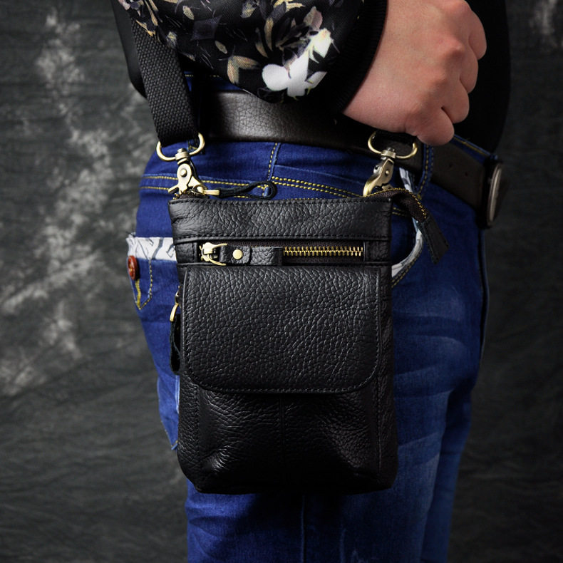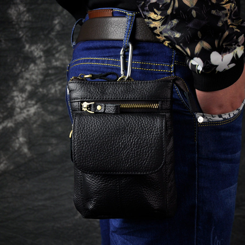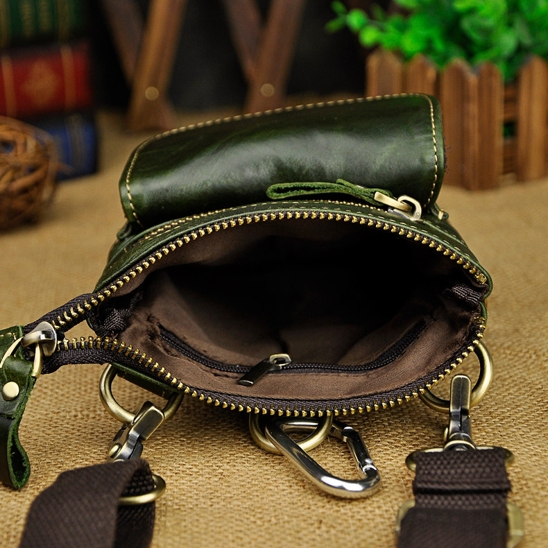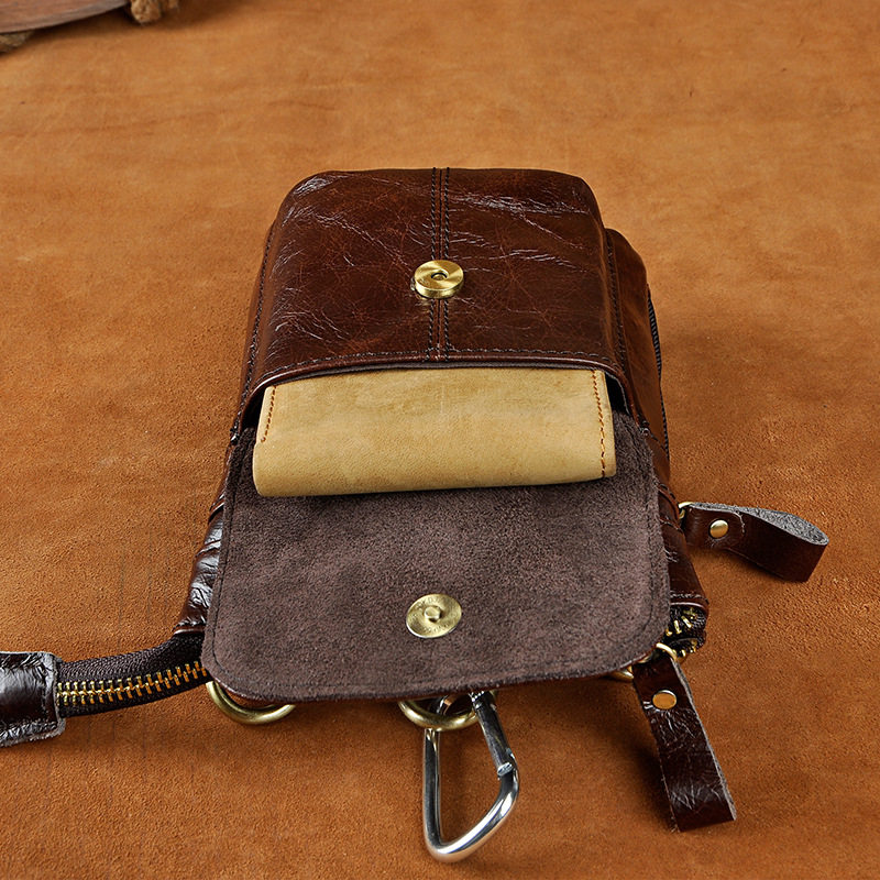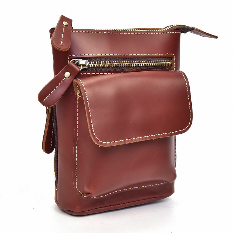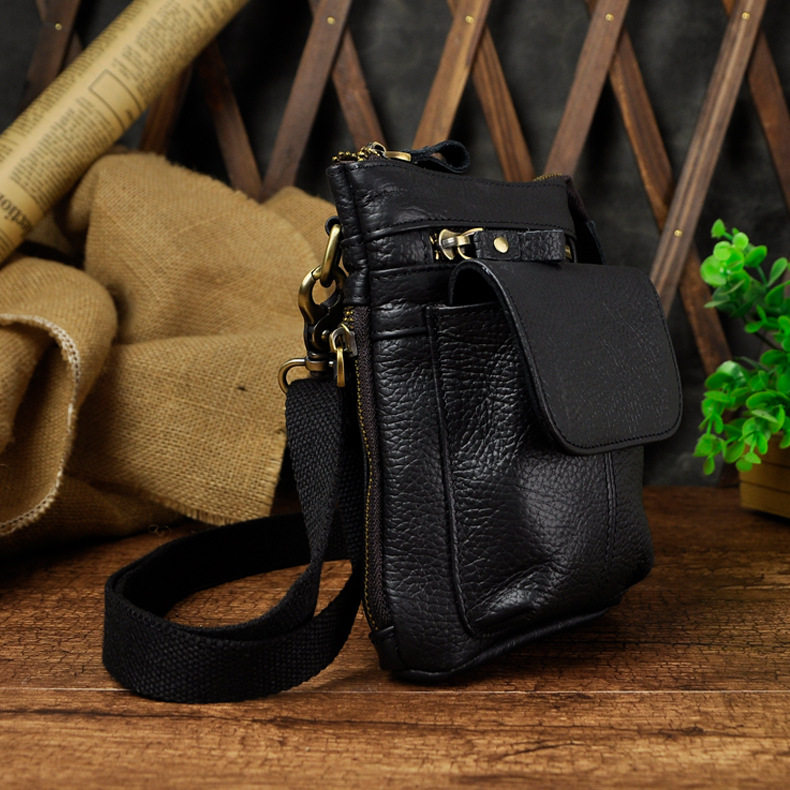 真皮男士復古手機戶外7寸帶掛鉤小腰包油蠟皮穿皮帶腰包單肩斜背