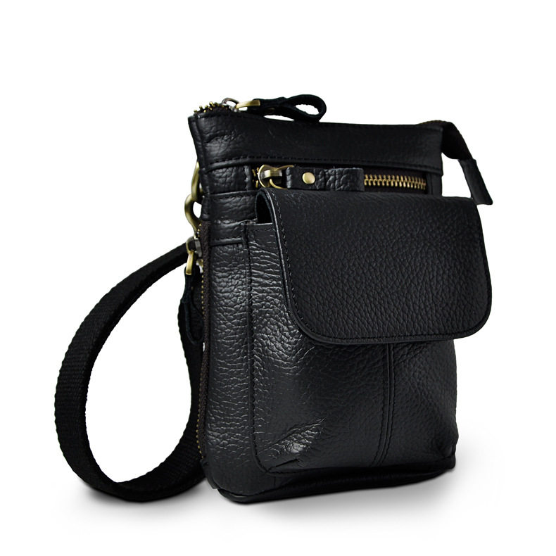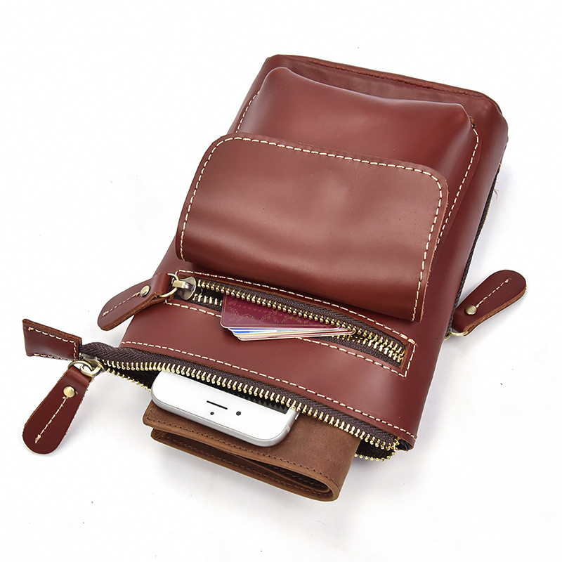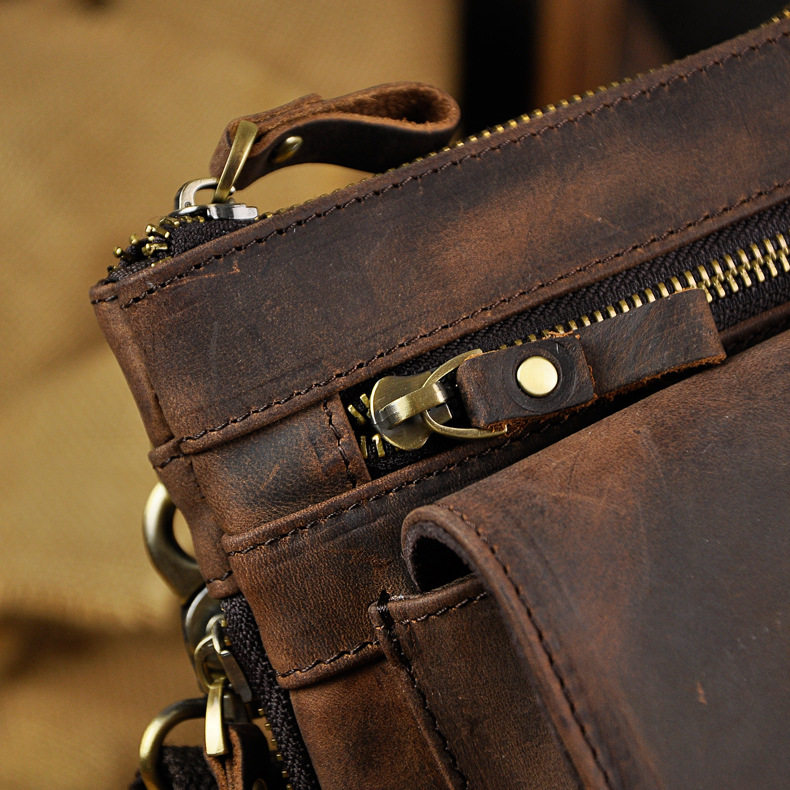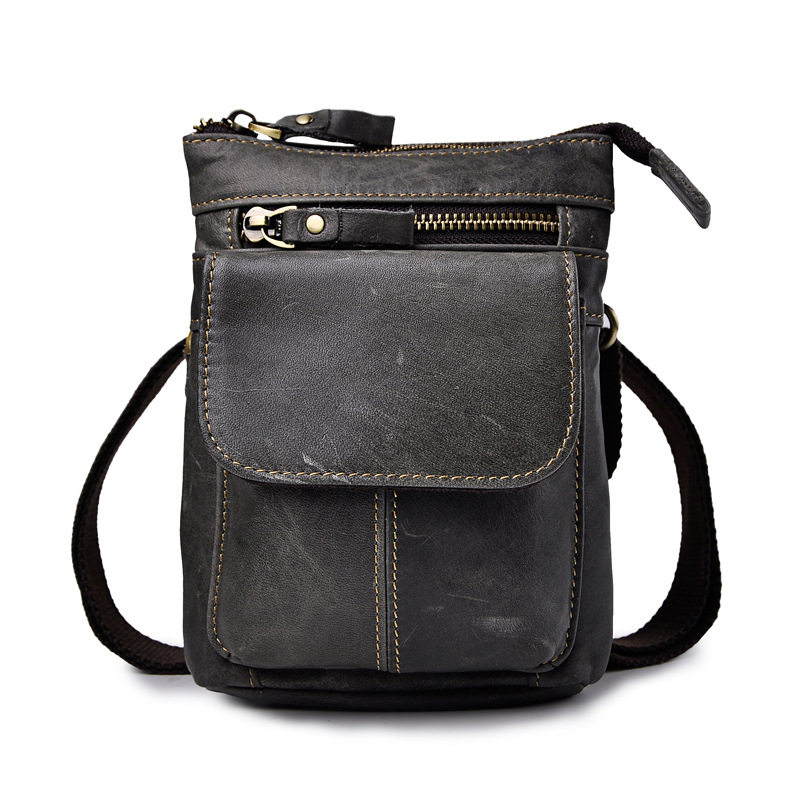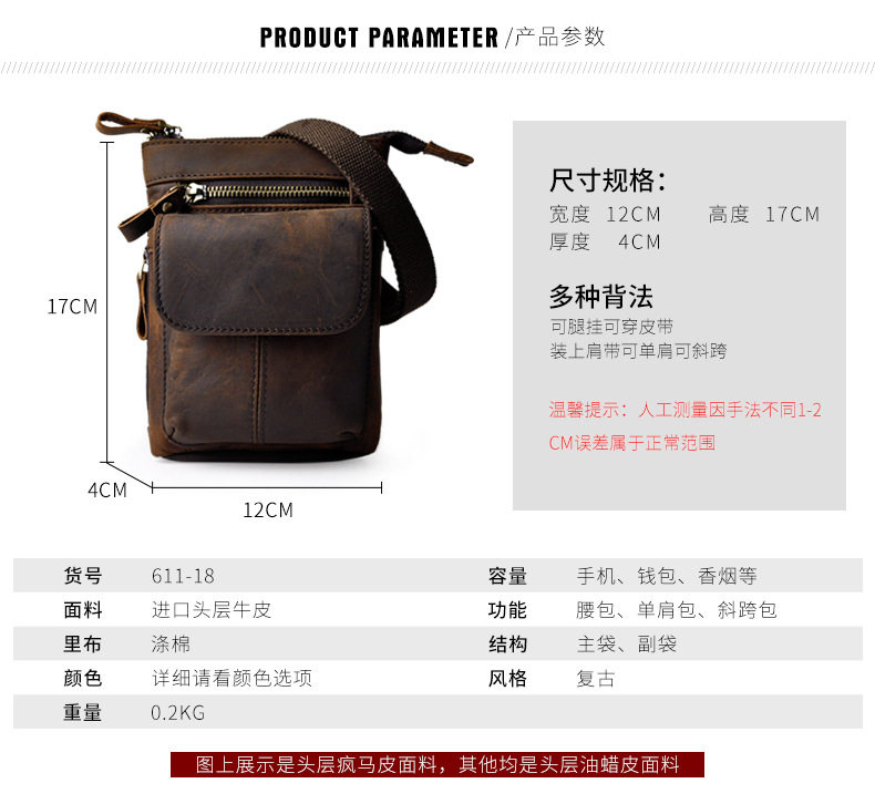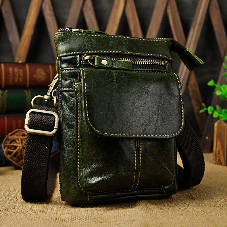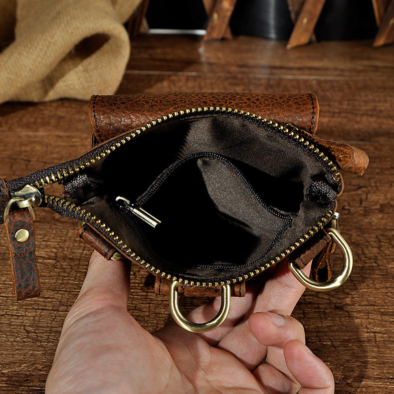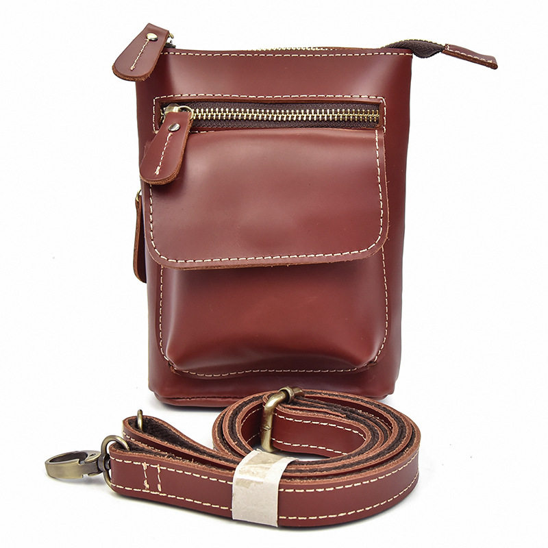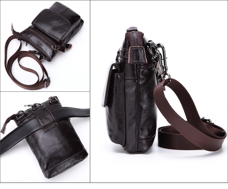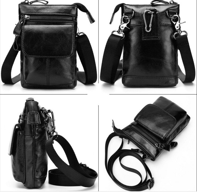 真皮男士復古手機戶外7寸帶掛鉤小腰包油蠟皮穿皮帶腰包單肩斜背