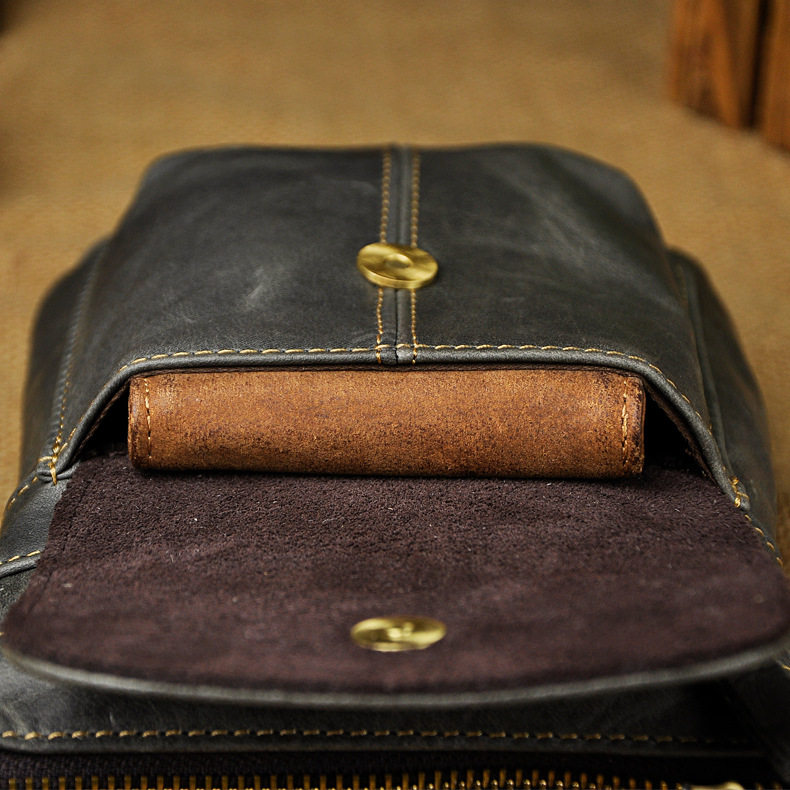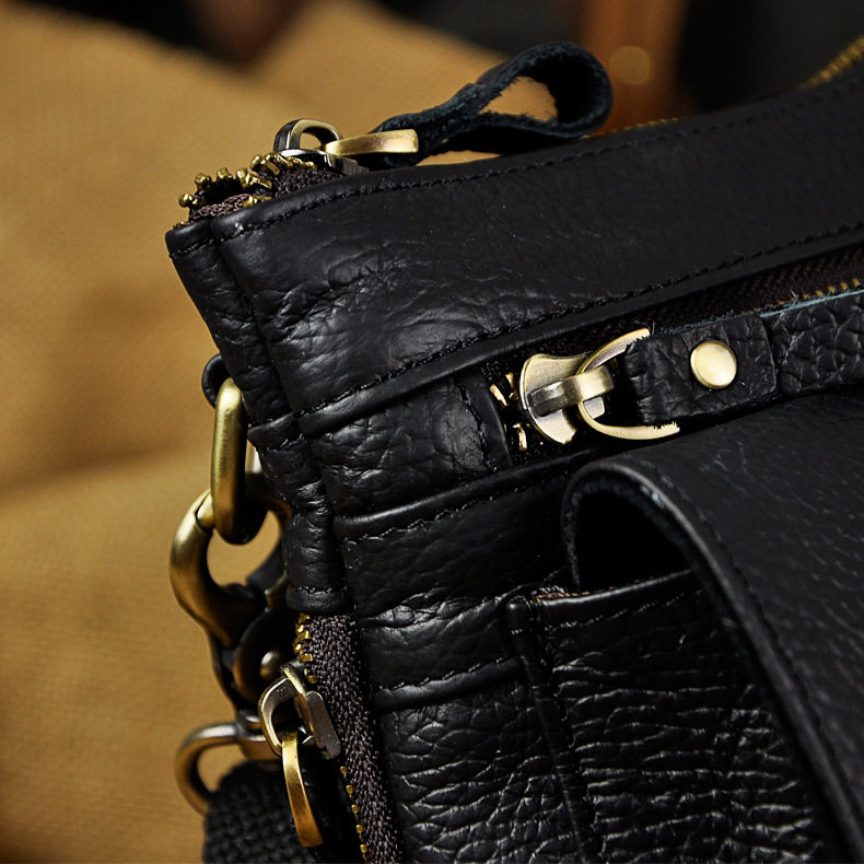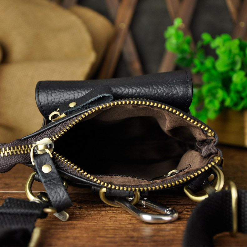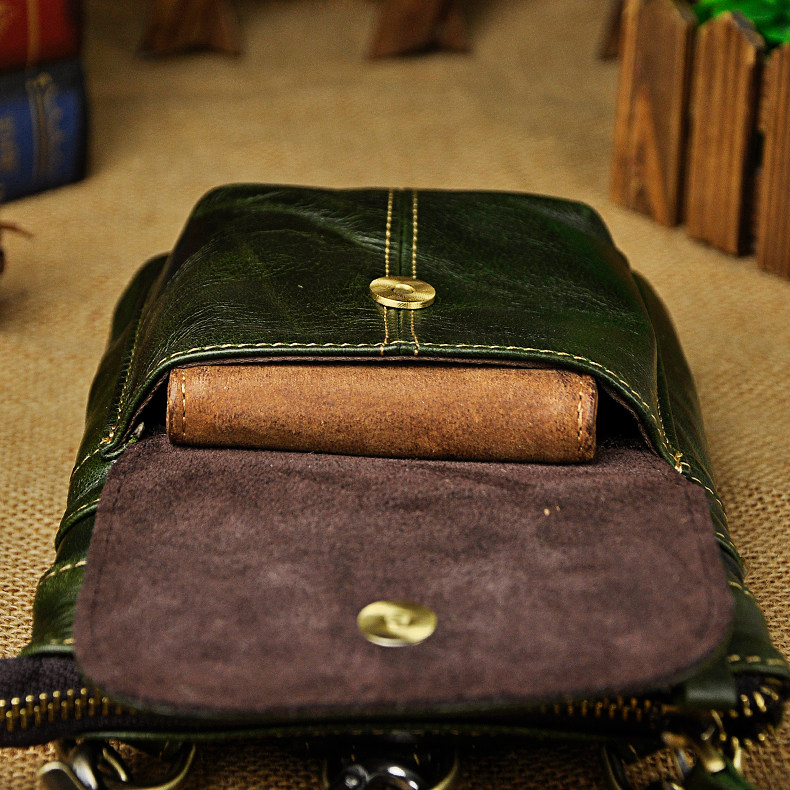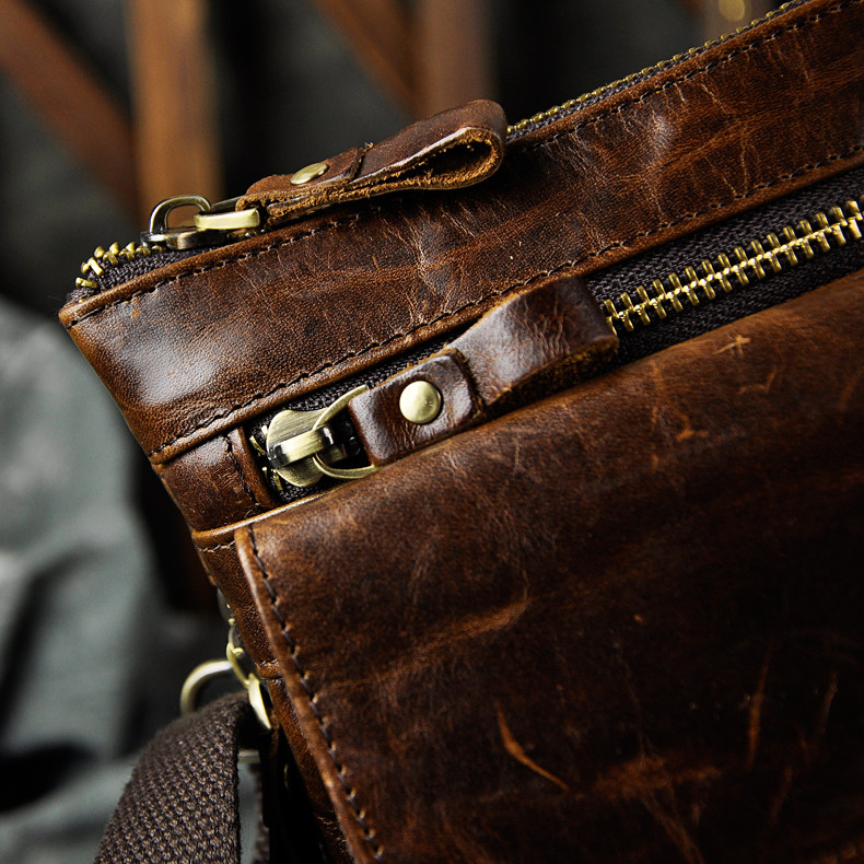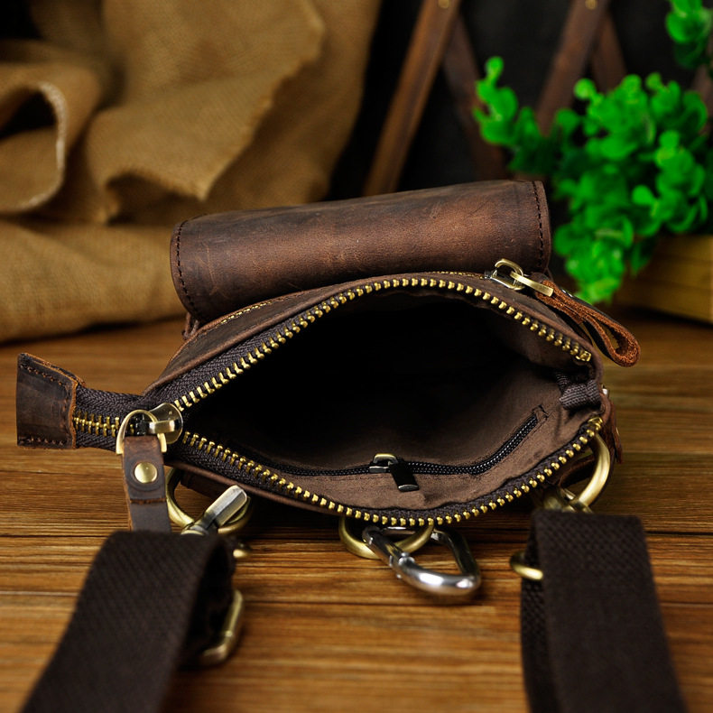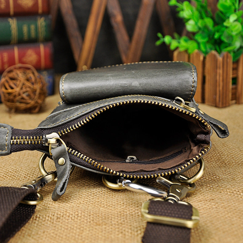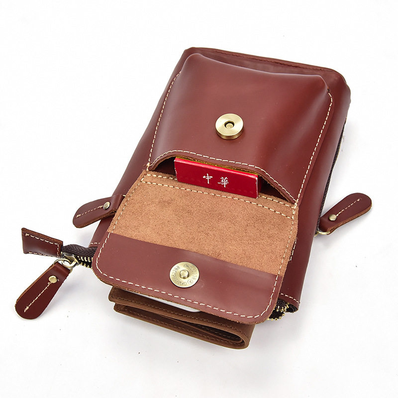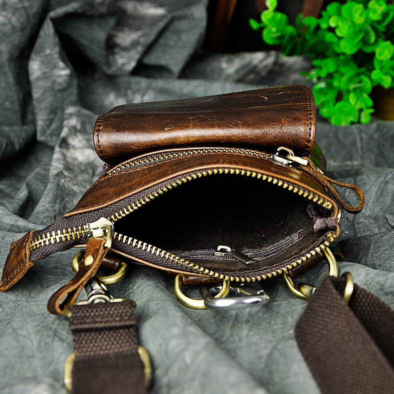 真皮男士復古手機戶外7寸帶掛鉤小腰包油蠟皮穿皮帶腰包單肩斜背