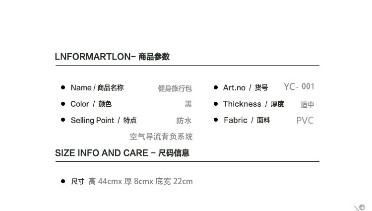| 箱包尺寸 | 22x8x44cm |