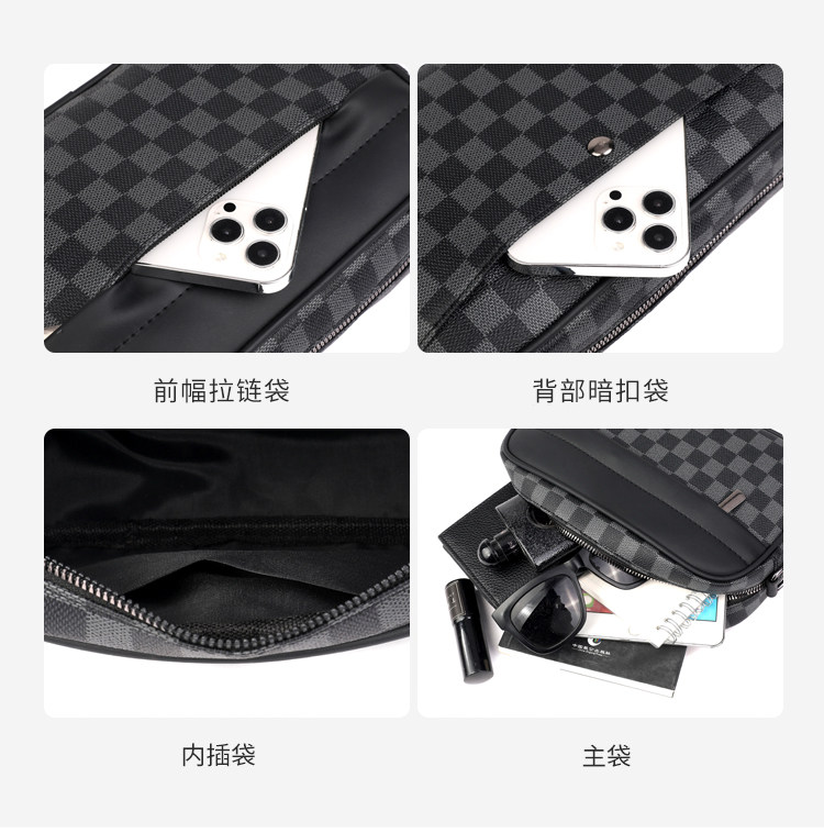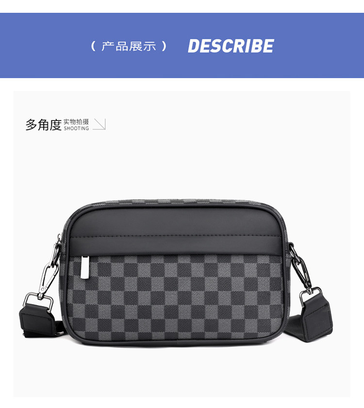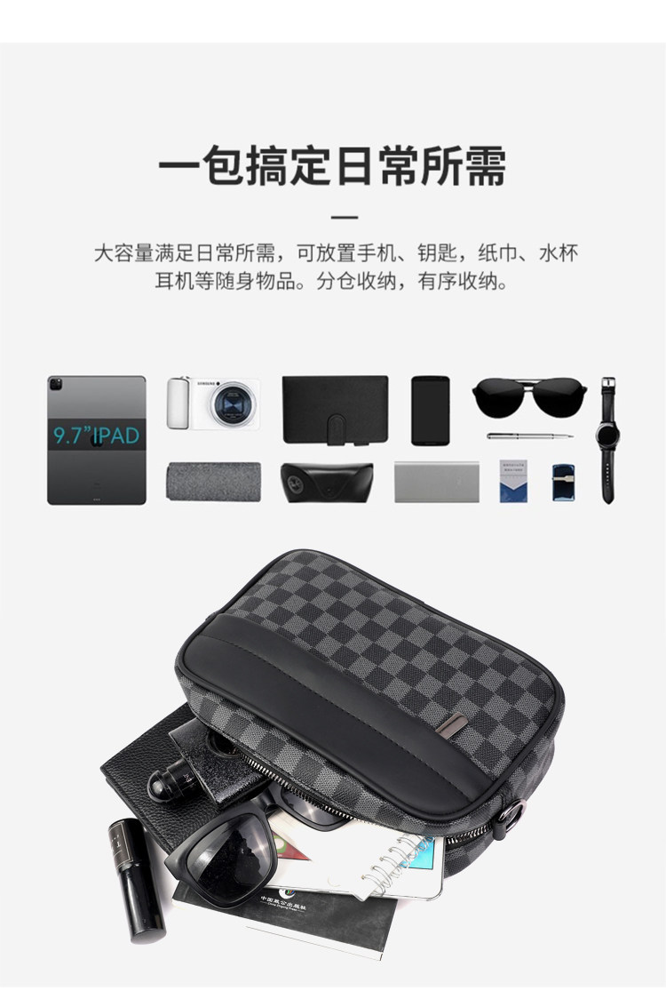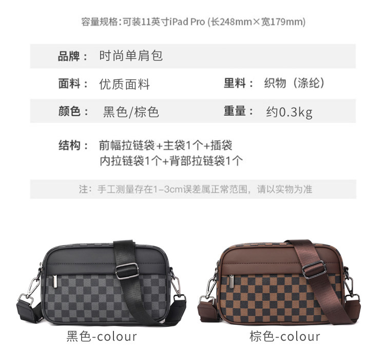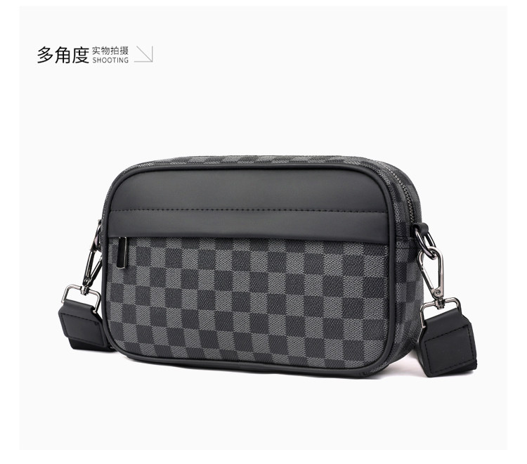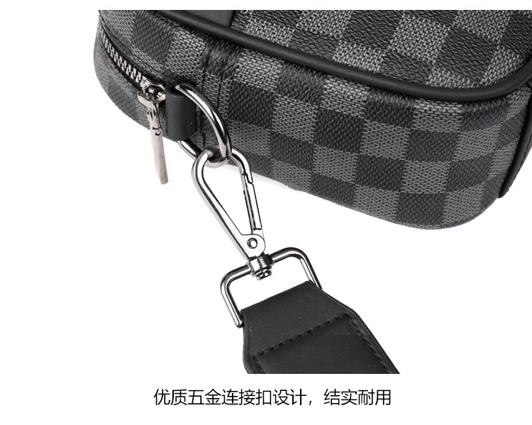 新款潮牌男士休閒格子單肩包皮質運動斜後後背包個性時尚小方包潮