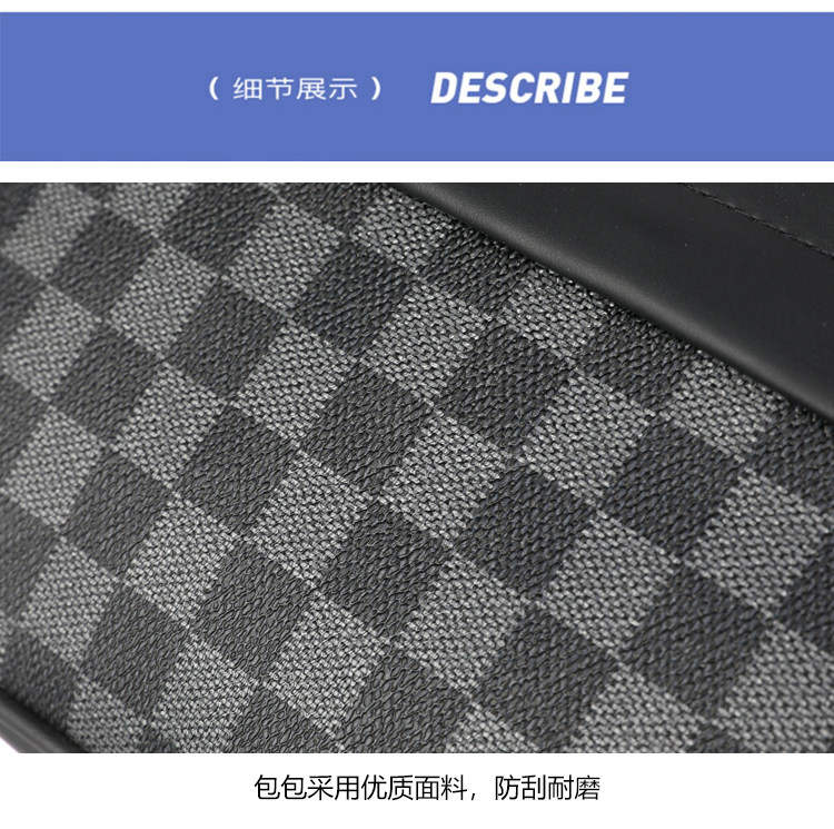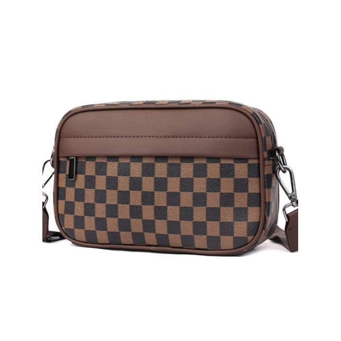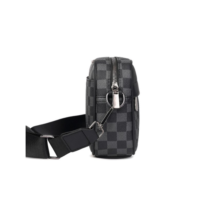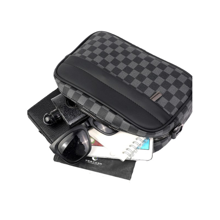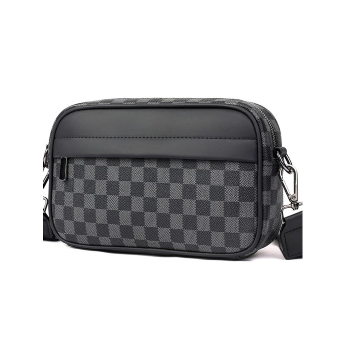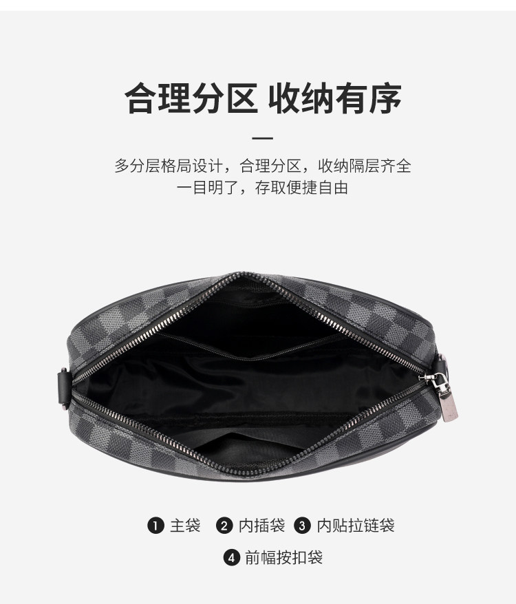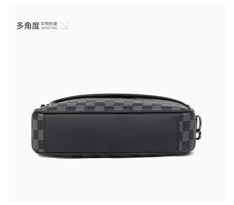 新款潮牌男士休閒格子單肩包皮質運動斜後後背包個性時尚小方包潮