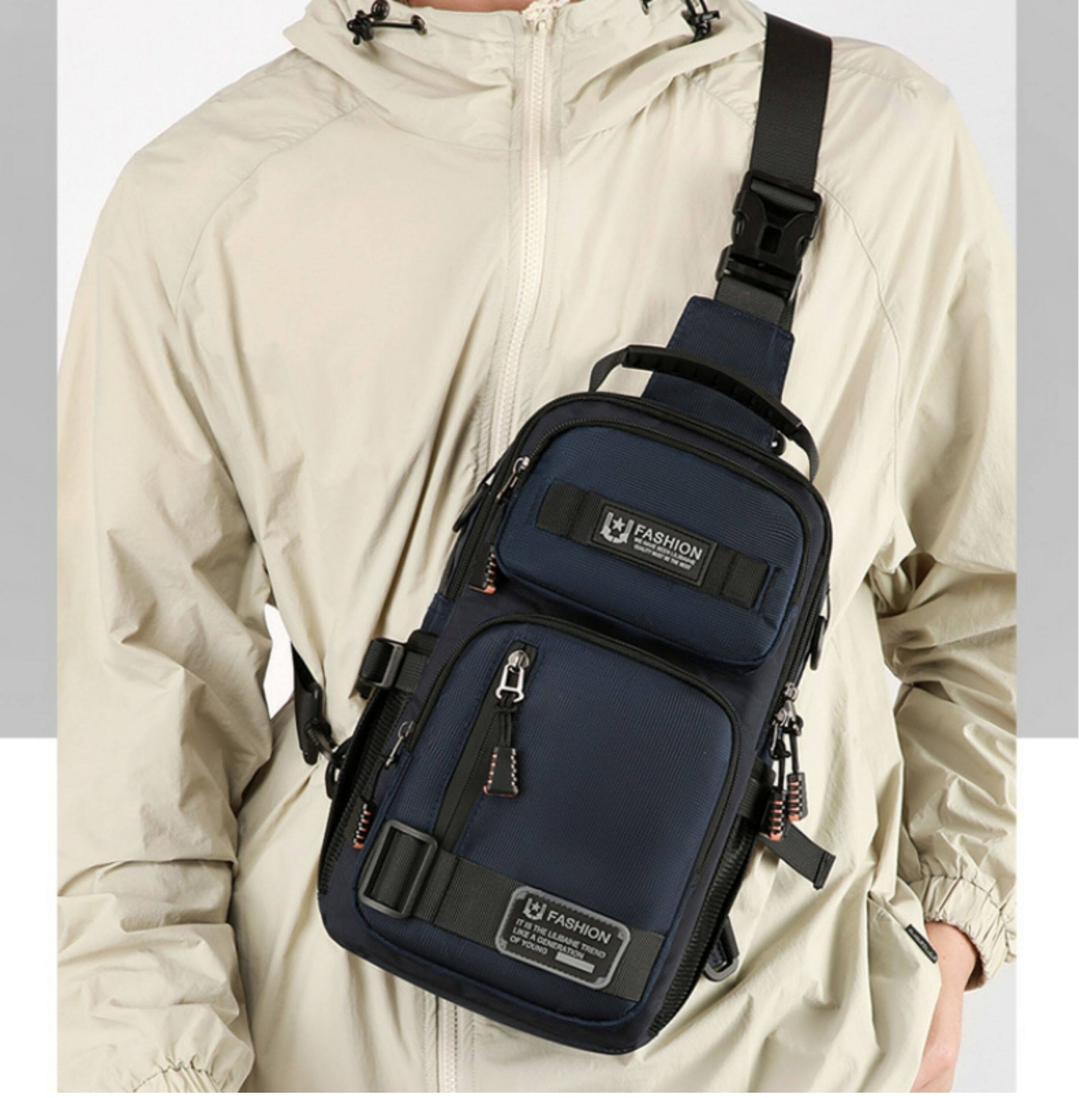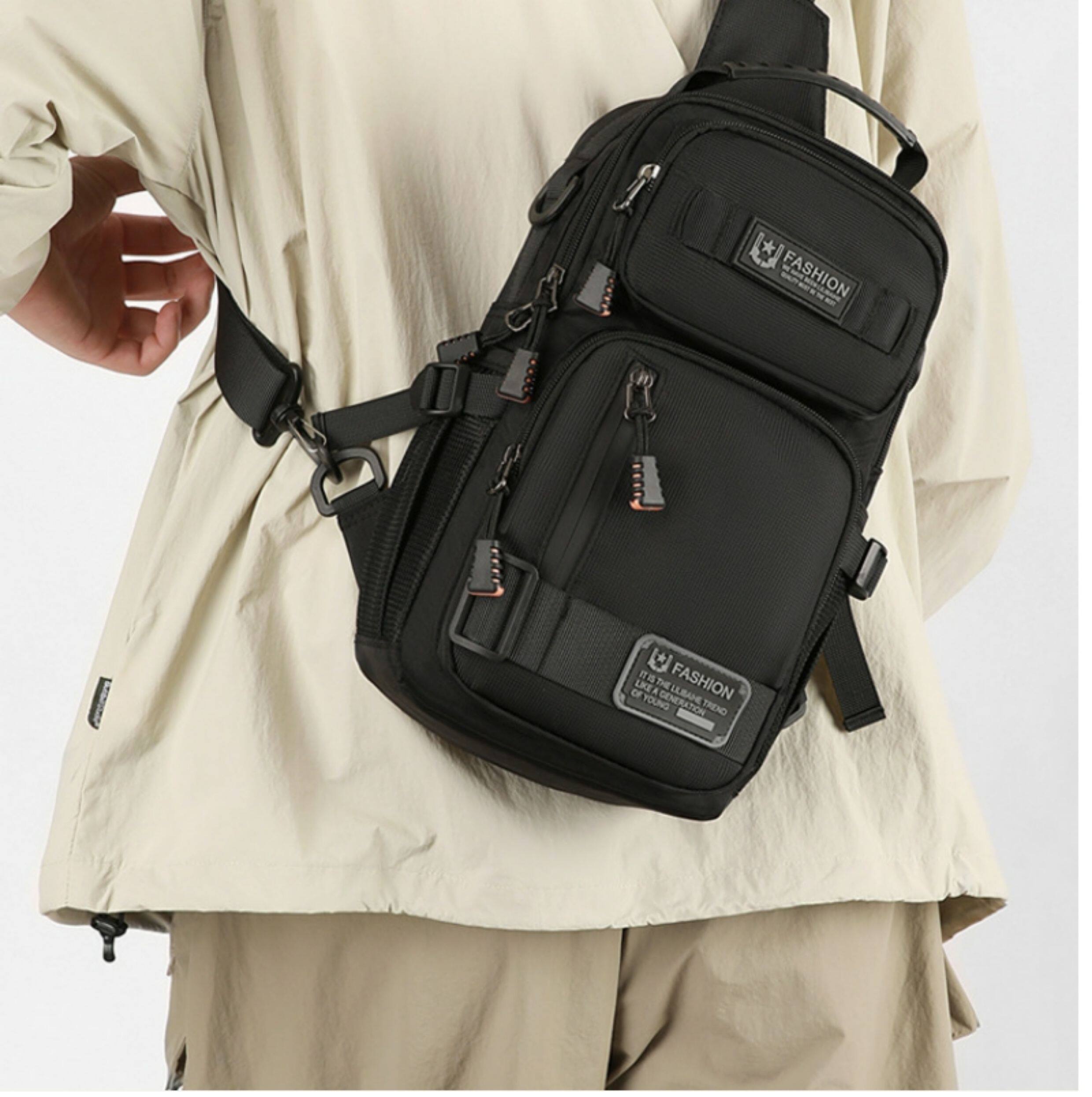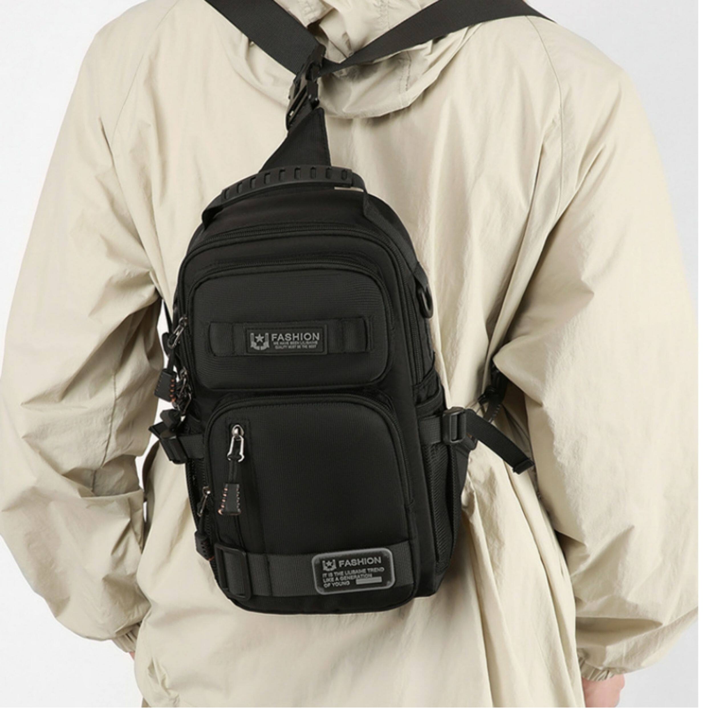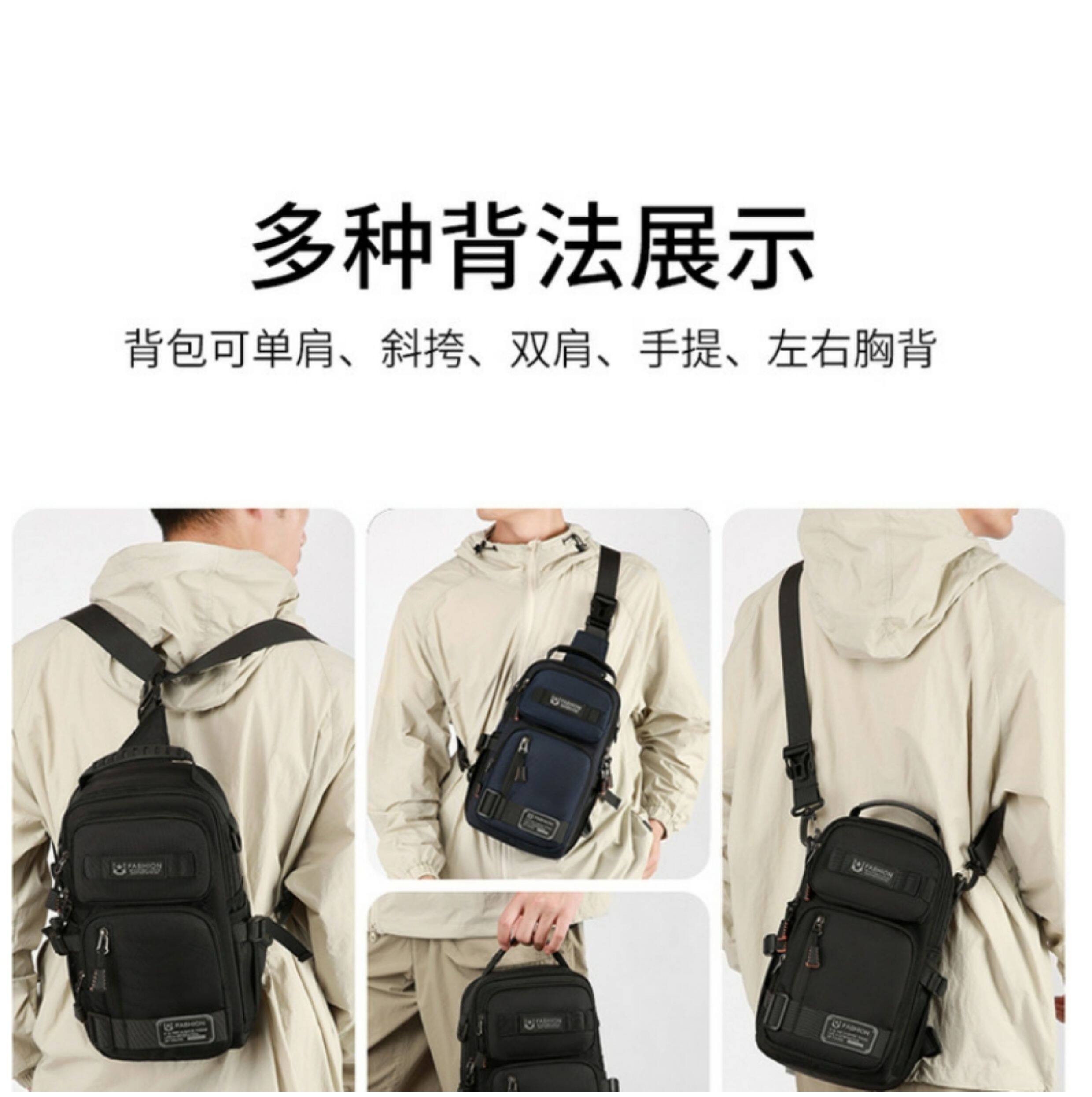 2025新款男士戶外胸包簡約百搭單肩斜後後背包多功能潮牌大容量單肩包