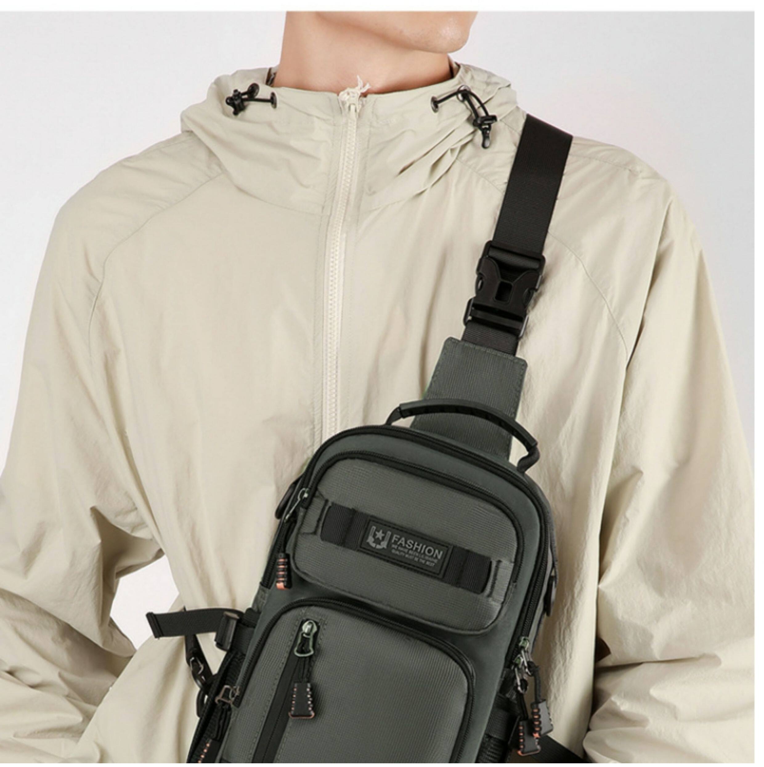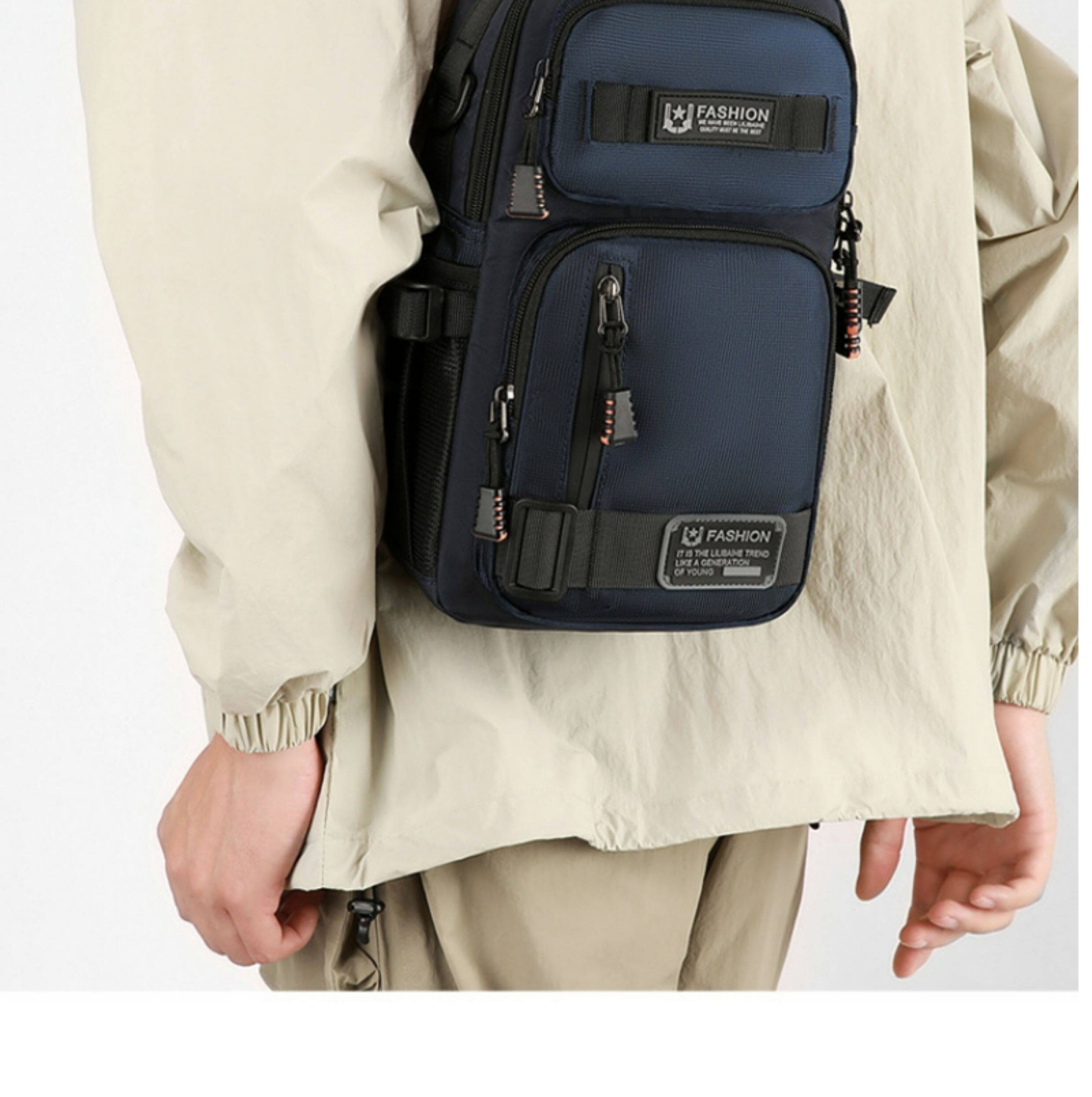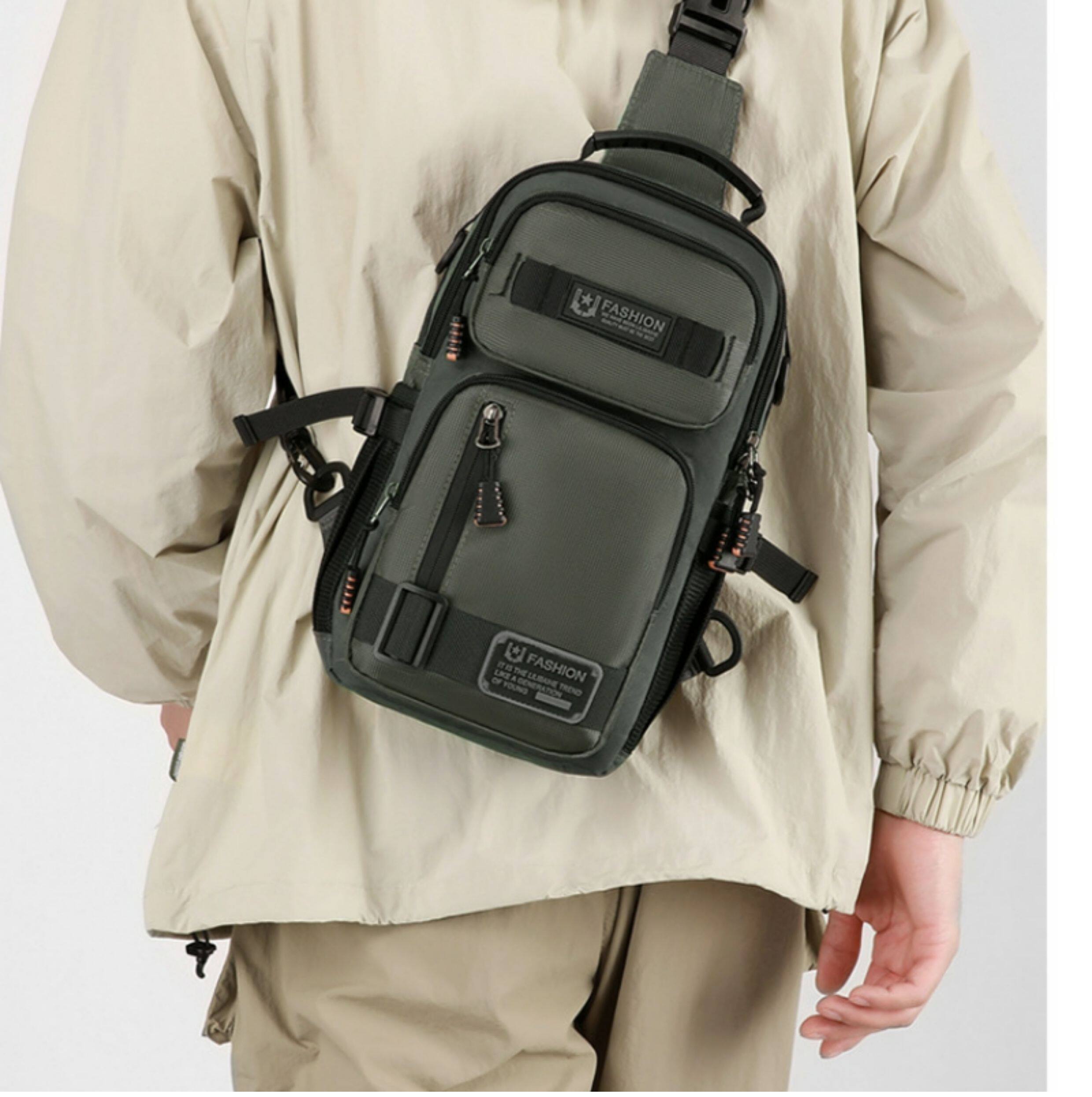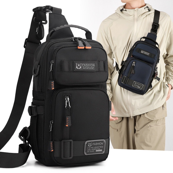 2025新款男士戶外胸包簡約百搭單肩斜後後背包多功能潮牌大容量單肩包