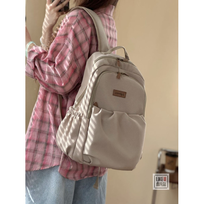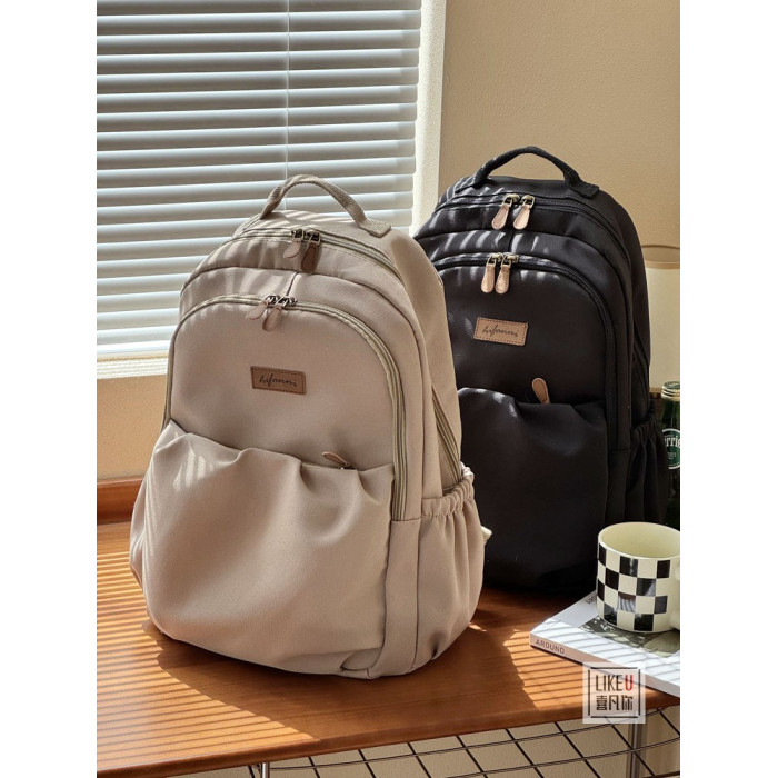 原創自製日韓簡約拉鍊加厚電腦雙肩後後背包大學高中書包校園通勤書包