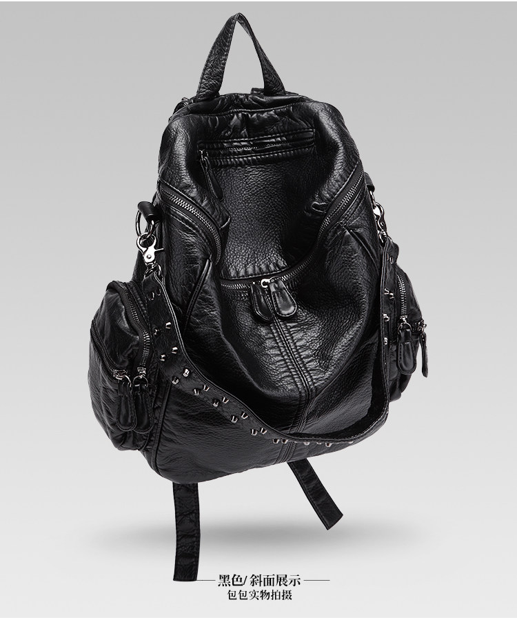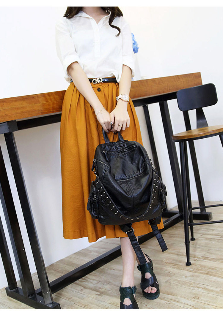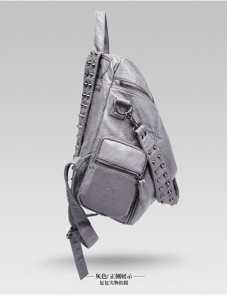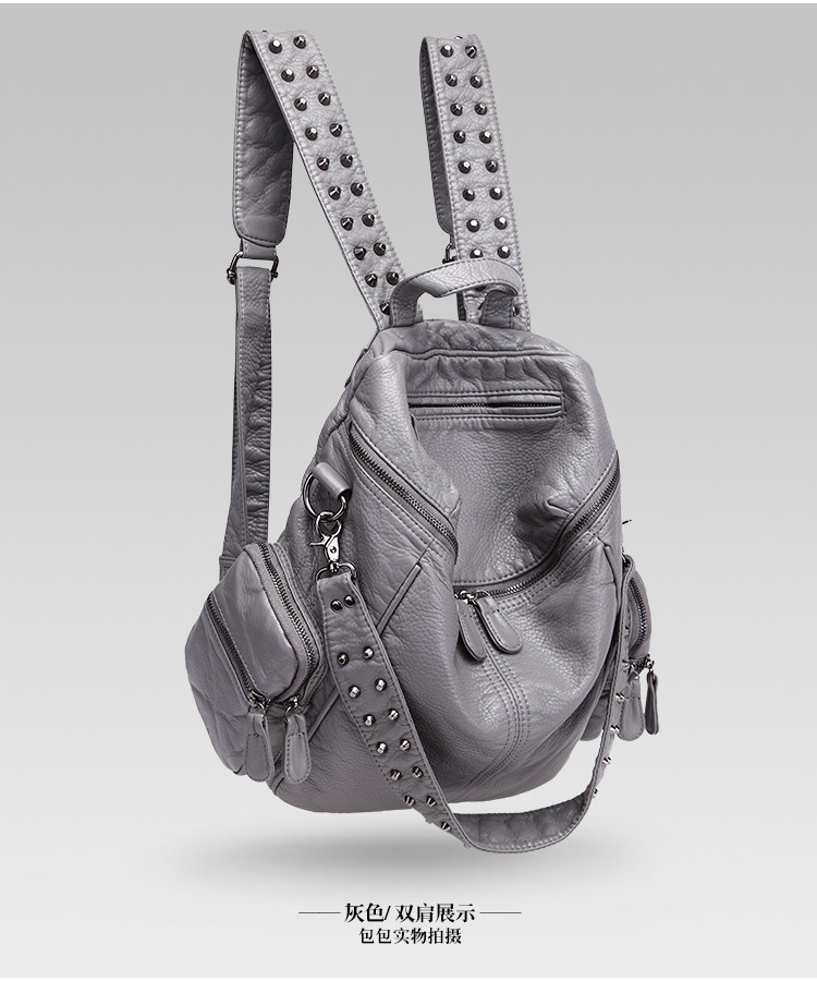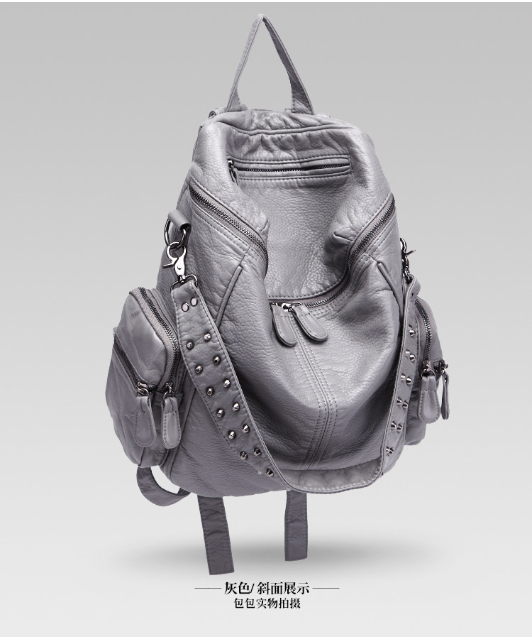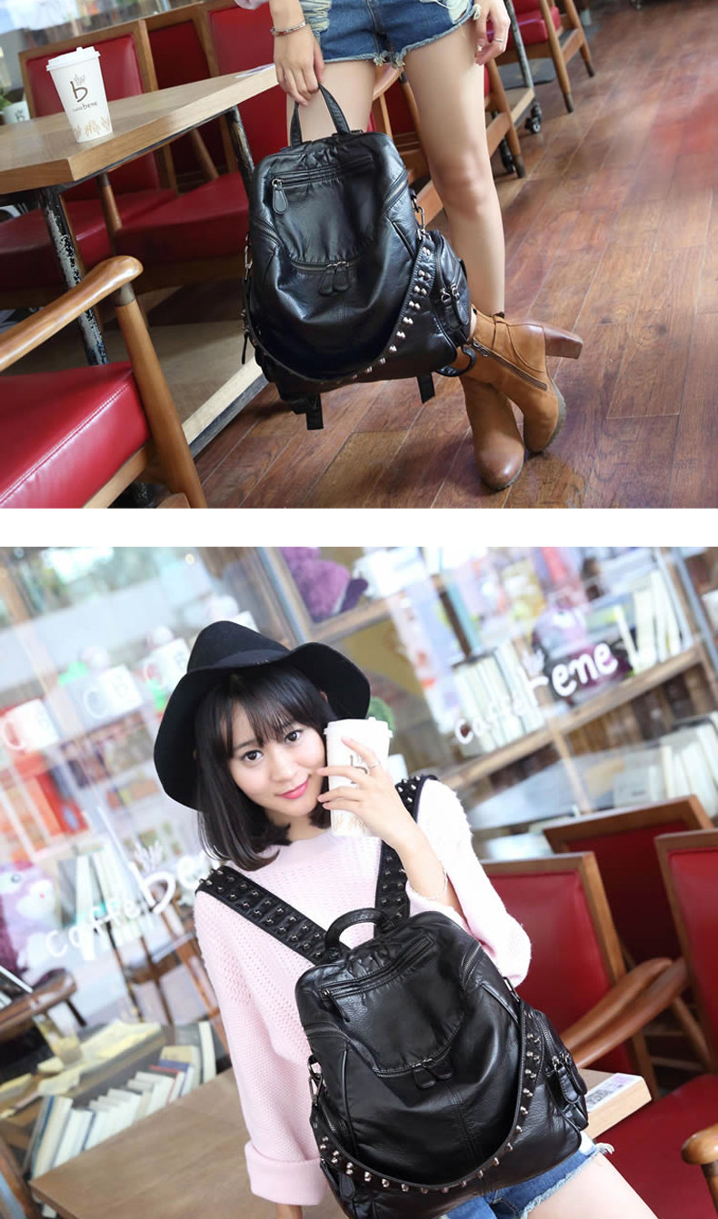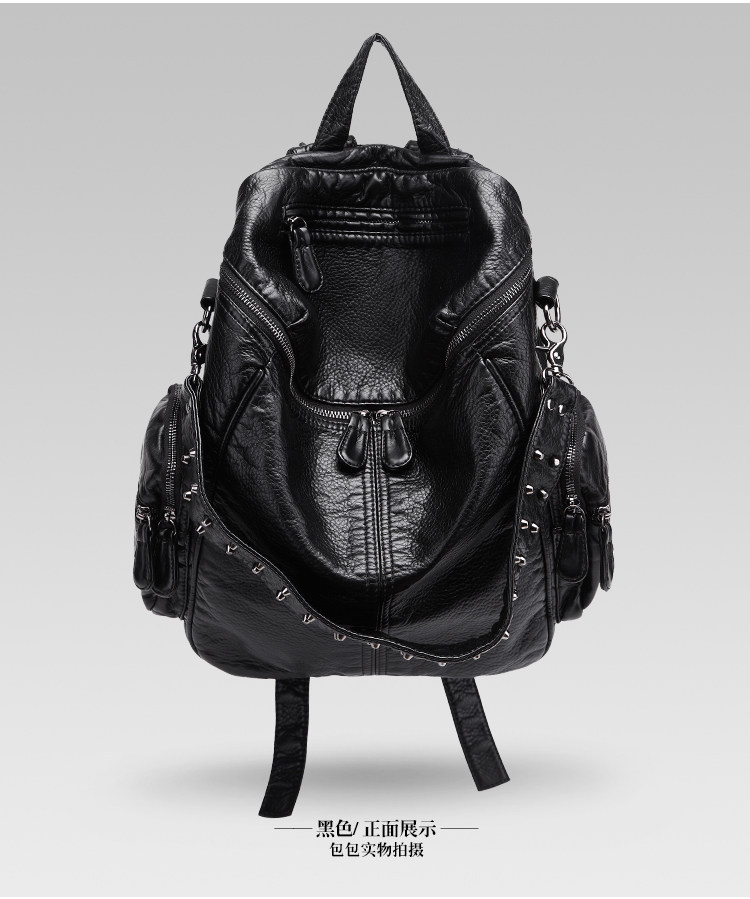 真皮軟皮大容量雙肩書包學生女2025新款韓版時尚百搭鉚釘旅行後後背包