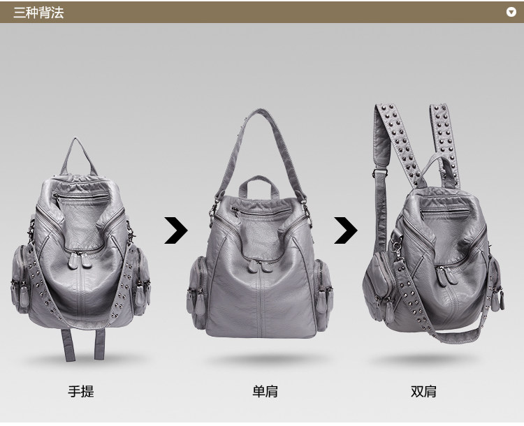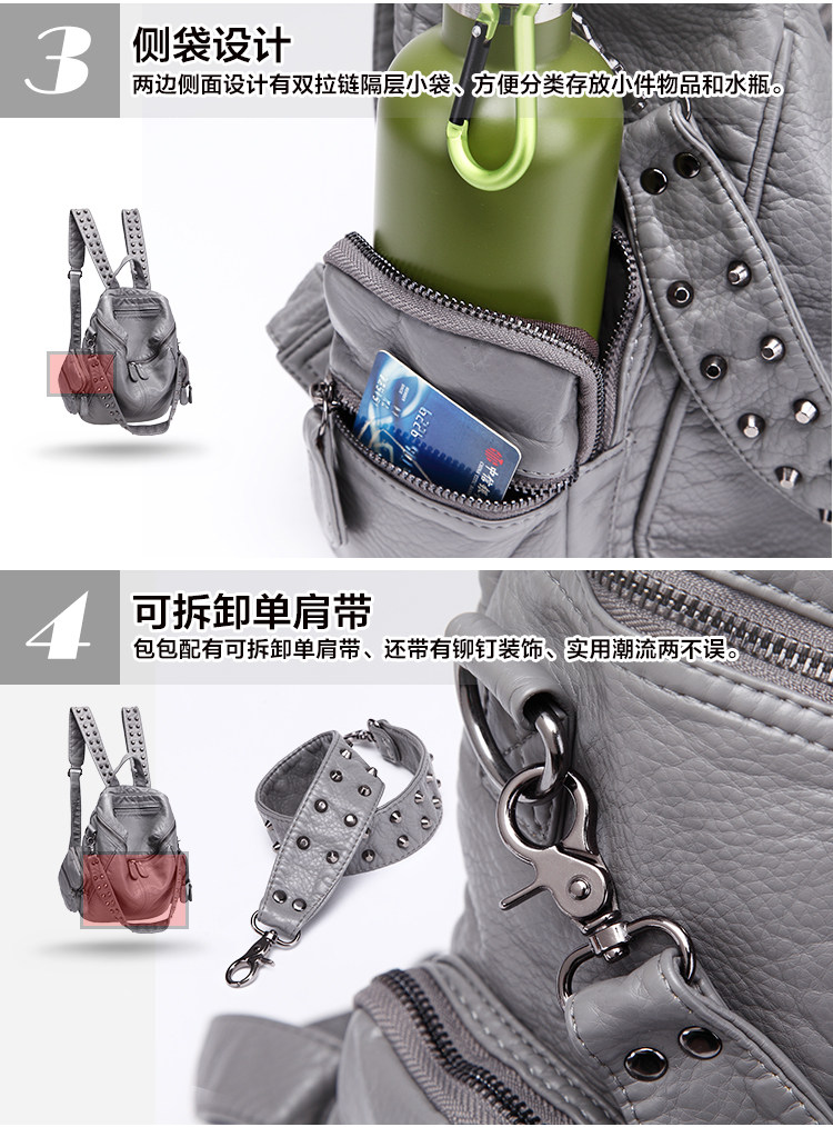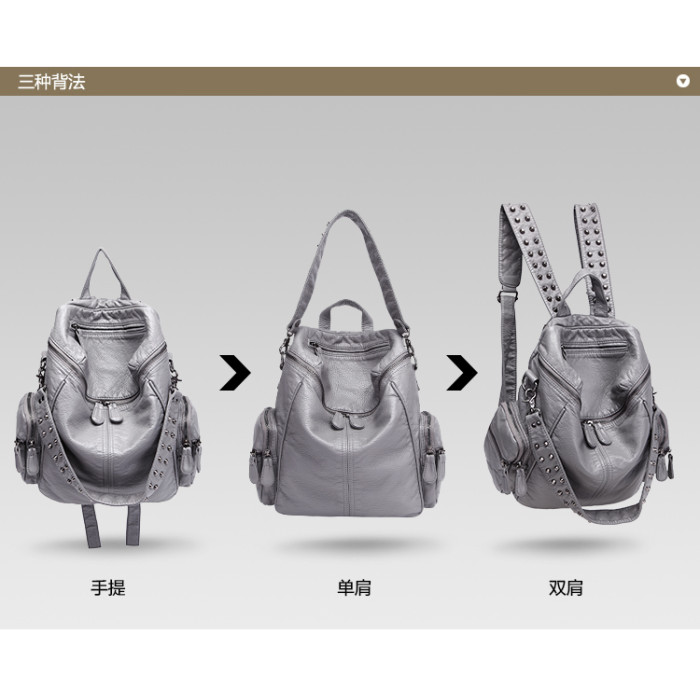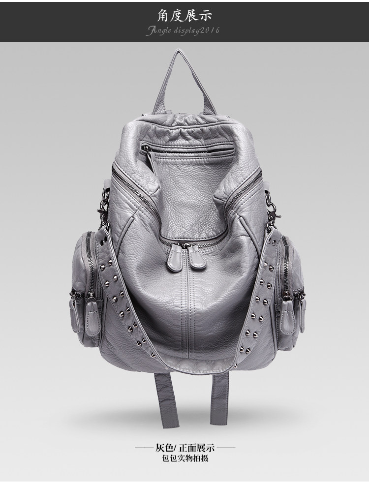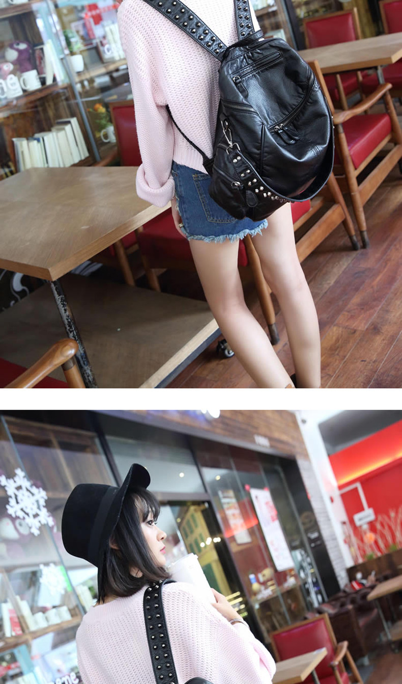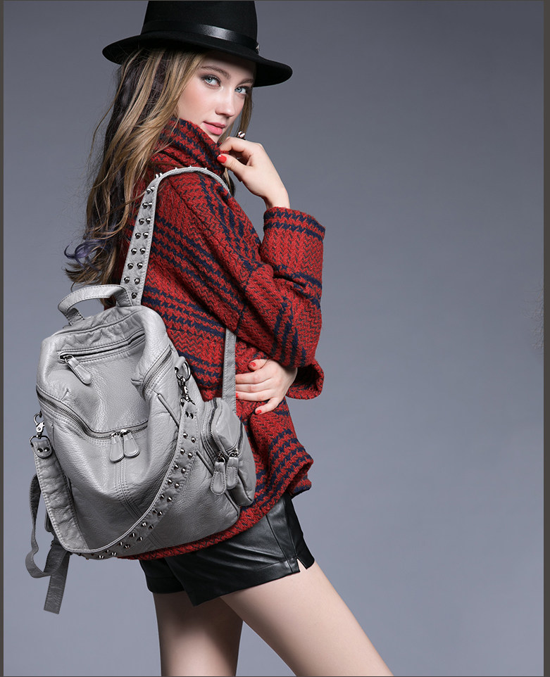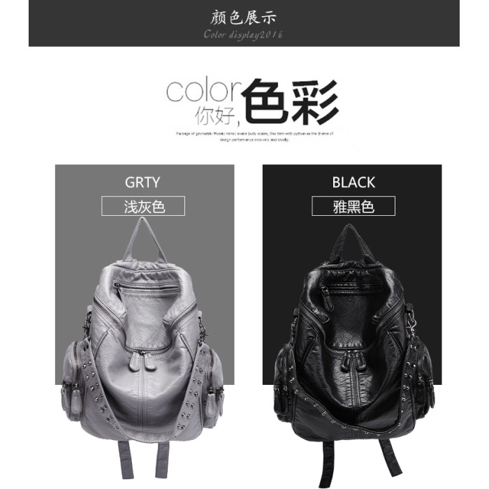 真皮軟皮大容量雙肩書包學生女2025新款韓版時尚百搭鉚釘旅行後後背包