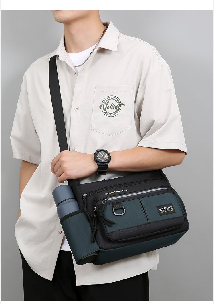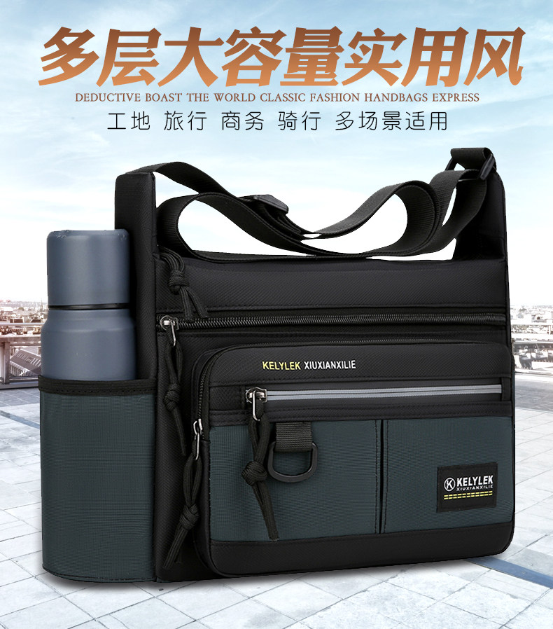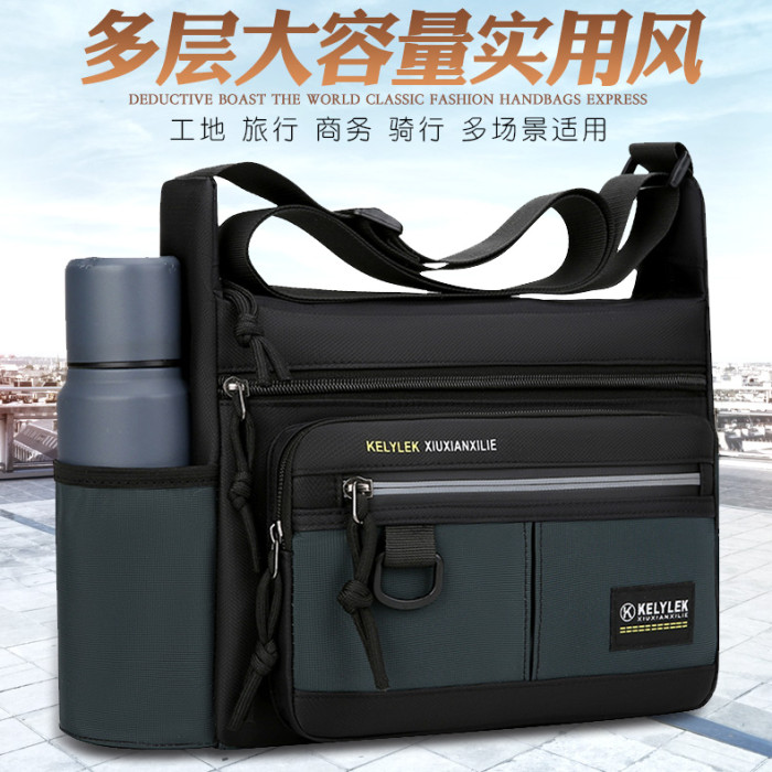 日韓新款斜後後背包男休閒男包父親單肩包通勤後後背包大容量郵差男士橫款