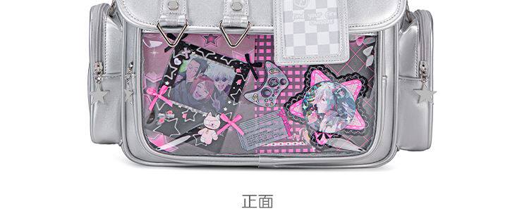 原創y2k痛包女生雙肩包斜後後背包男生大容量單肩包二次元吧唧包透明