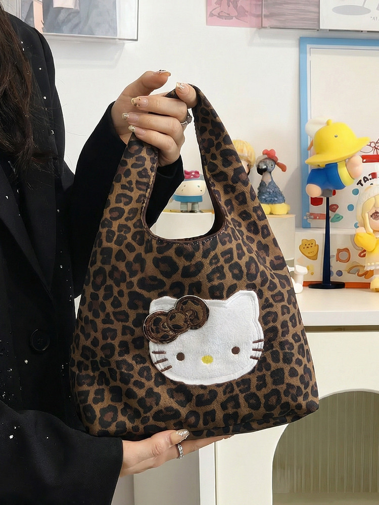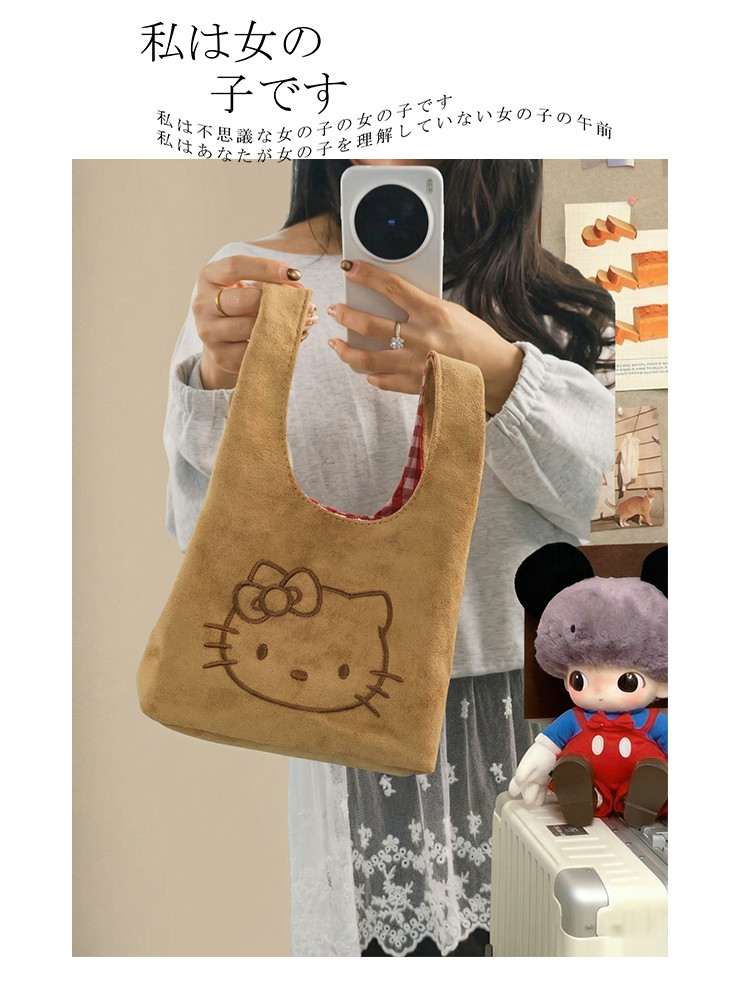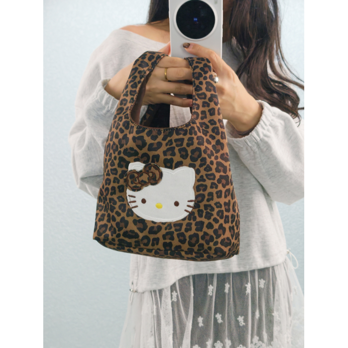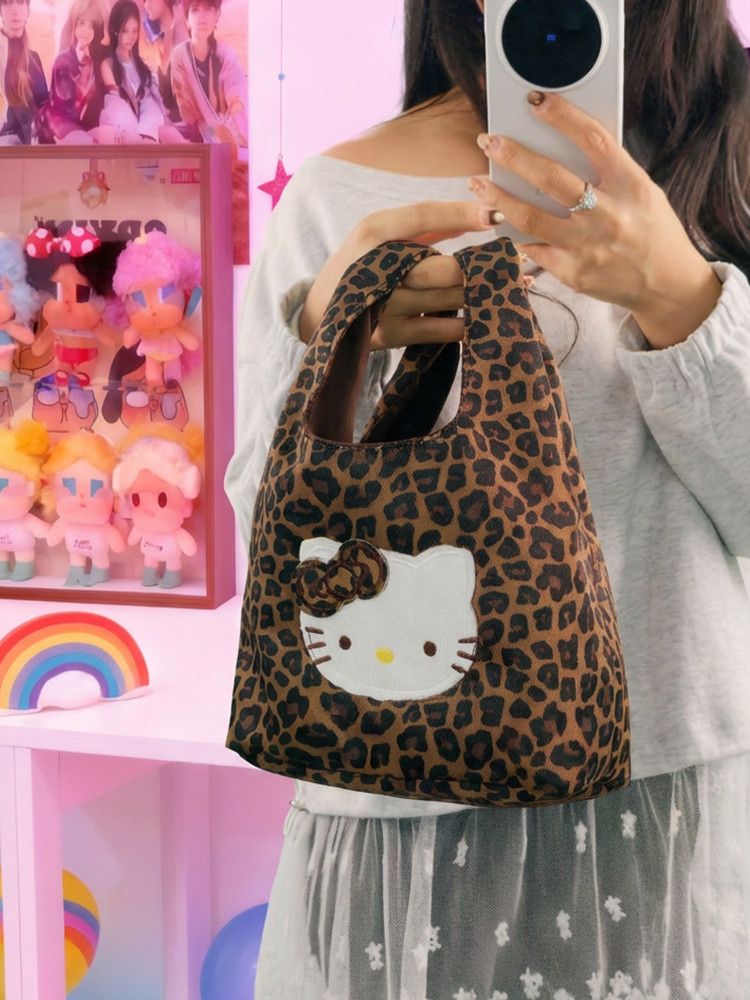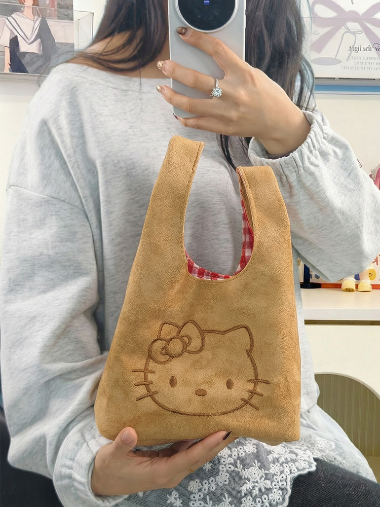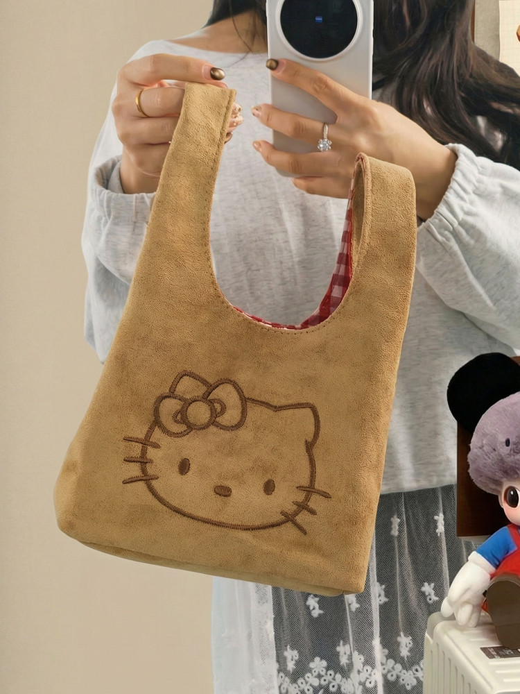 韓系可愛卡通貓咪刺綉帆布包女手提包可攜式收納通勤包托特包收納包
