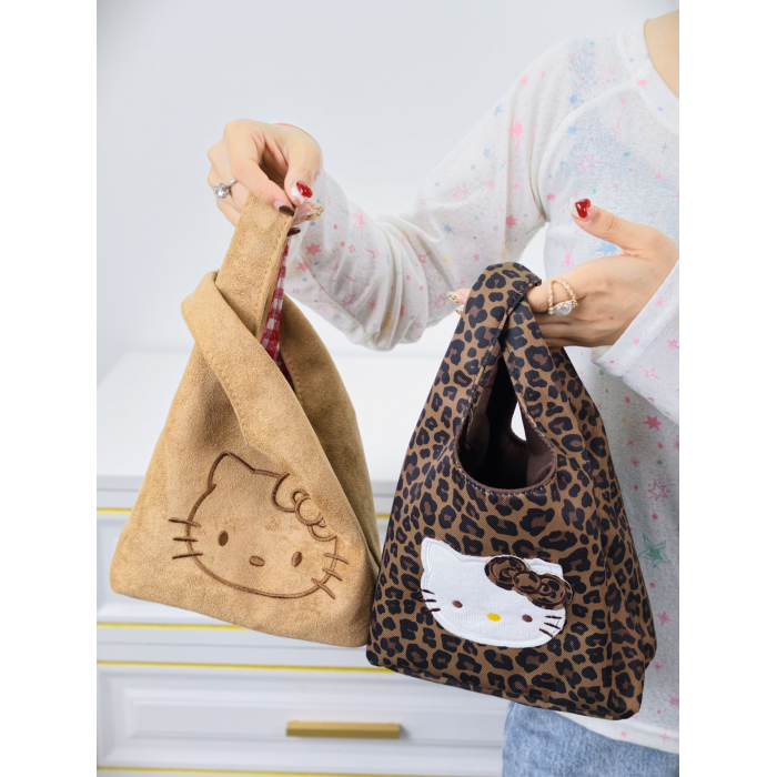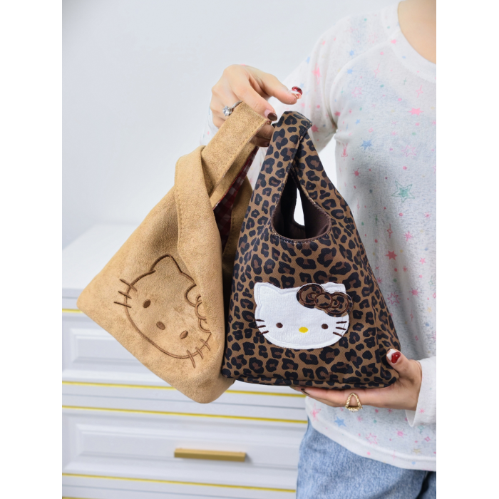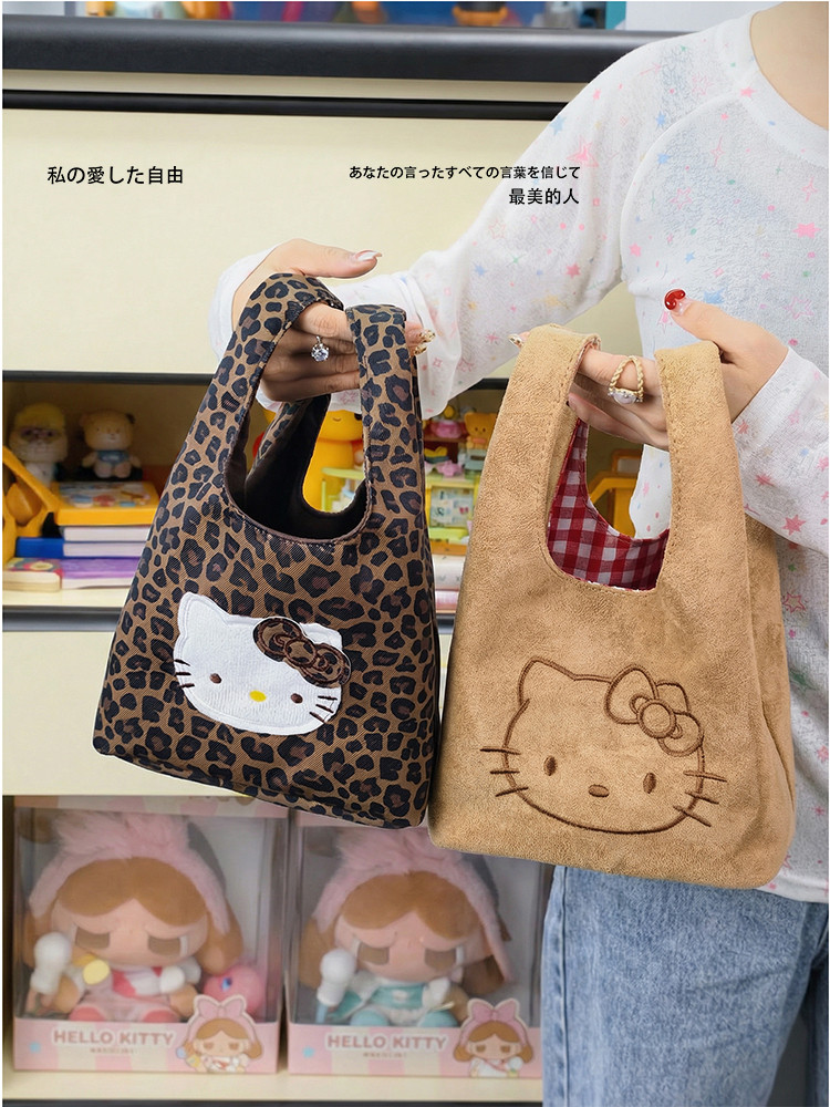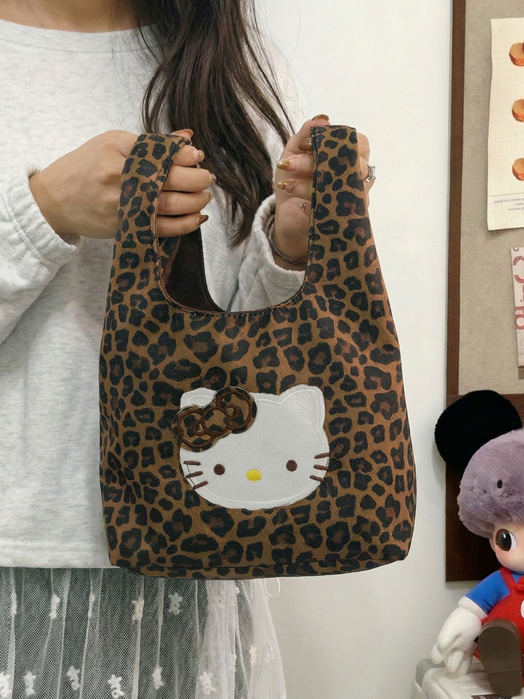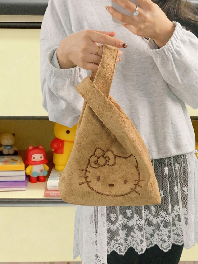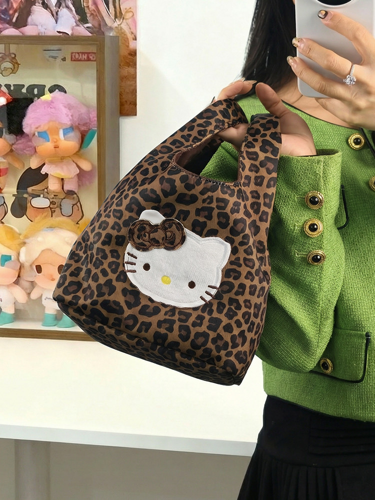 韓系可愛卡通貓咪刺綉帆布包女手提包可攜式收納通勤包托特包收納包