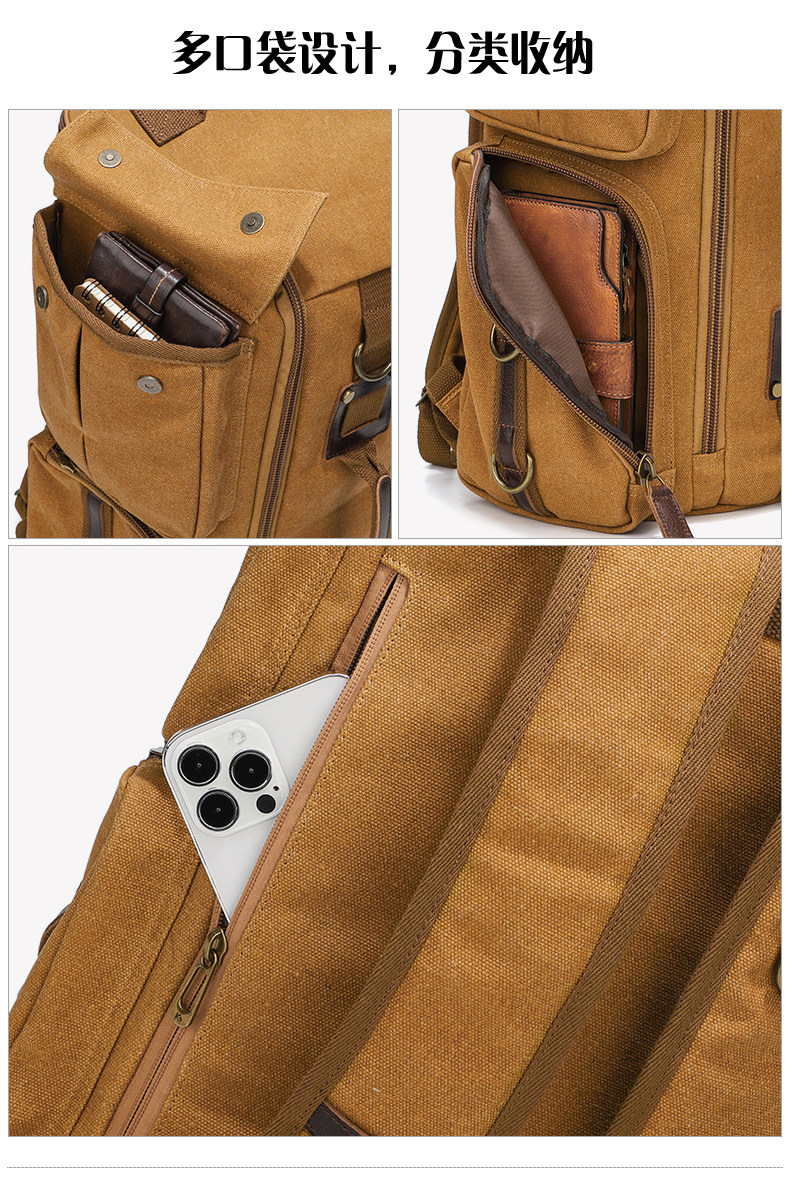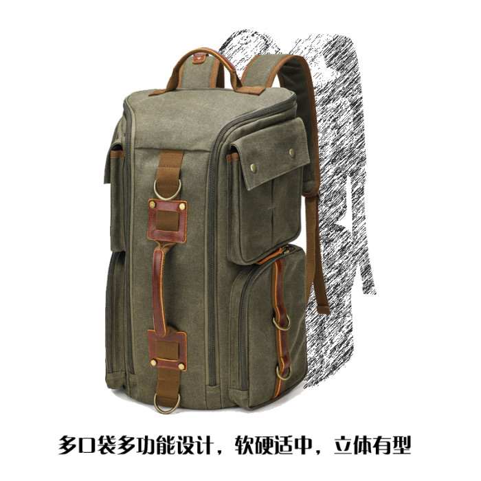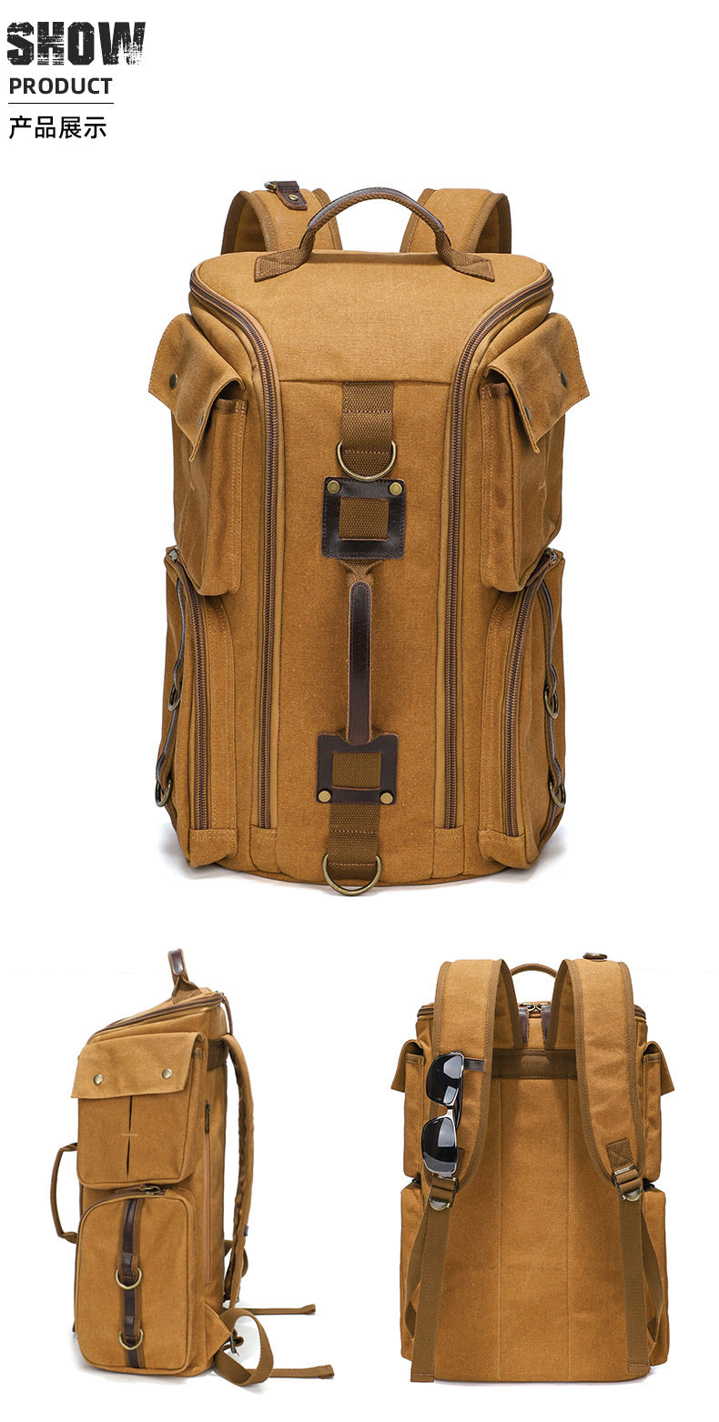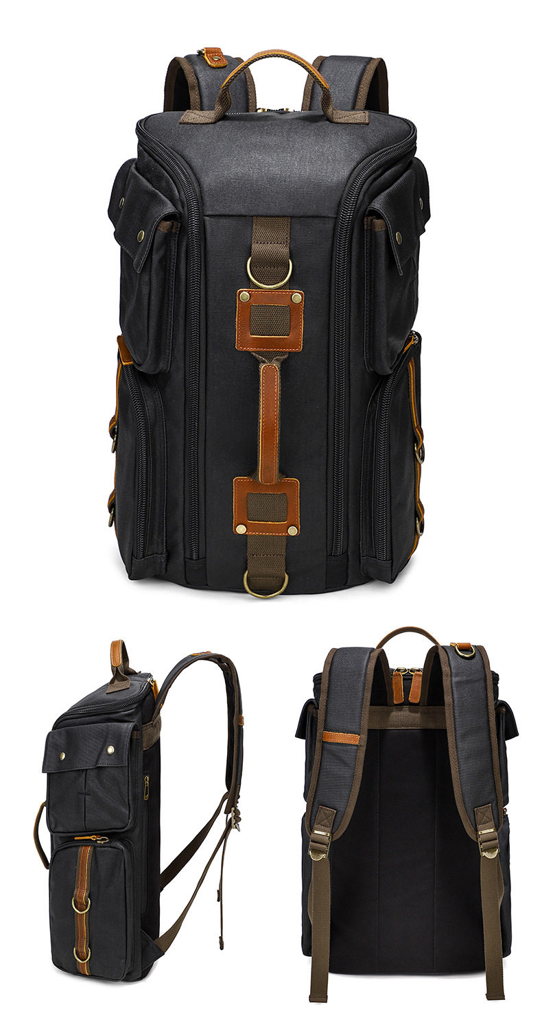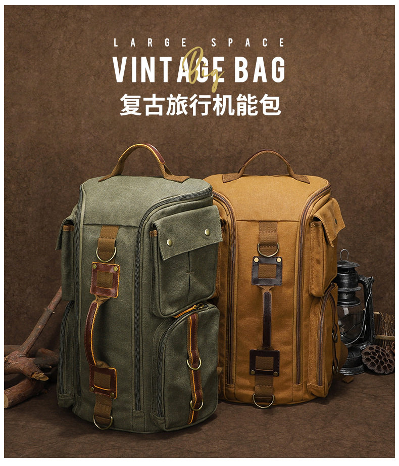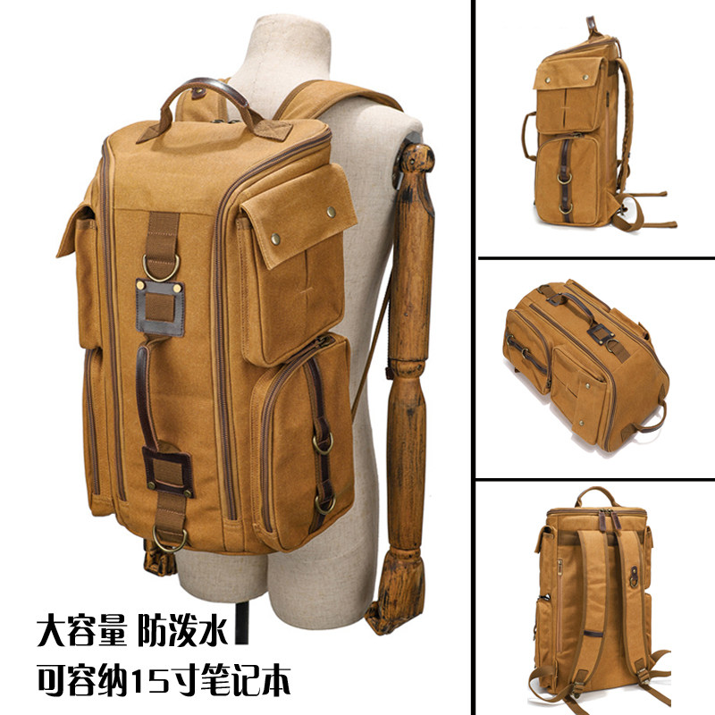 雙肩後後背包大容量休閒戶外多功能旅行電腦包防潑水復古帆布後後背包