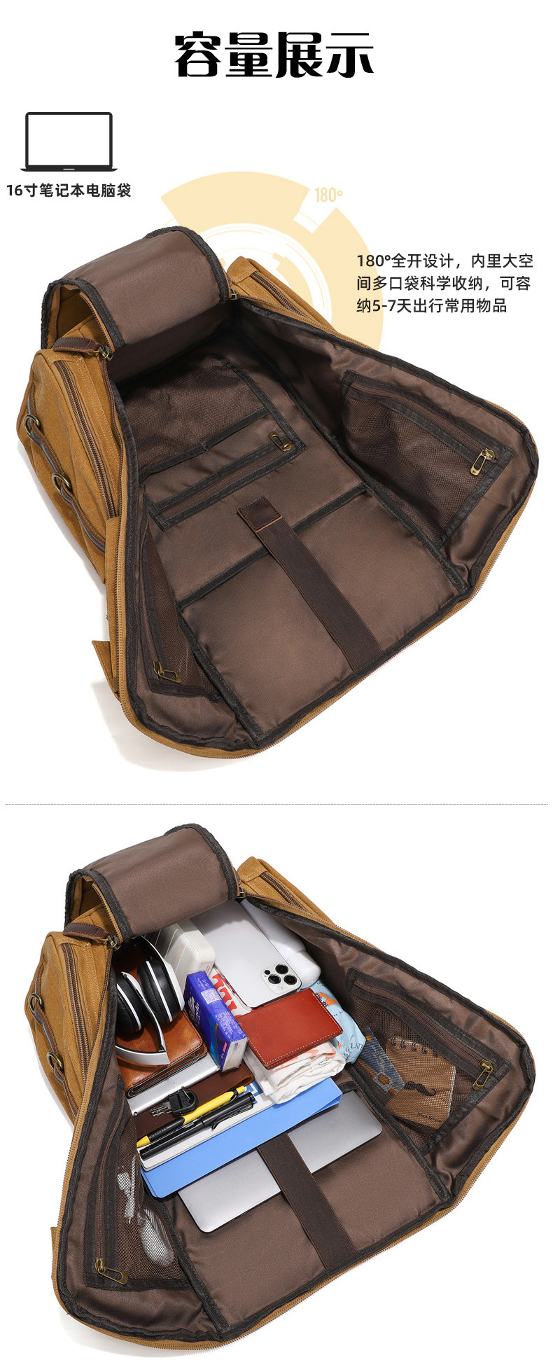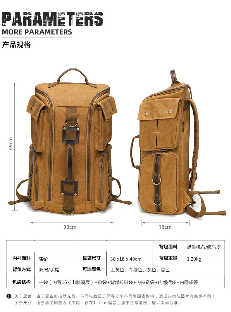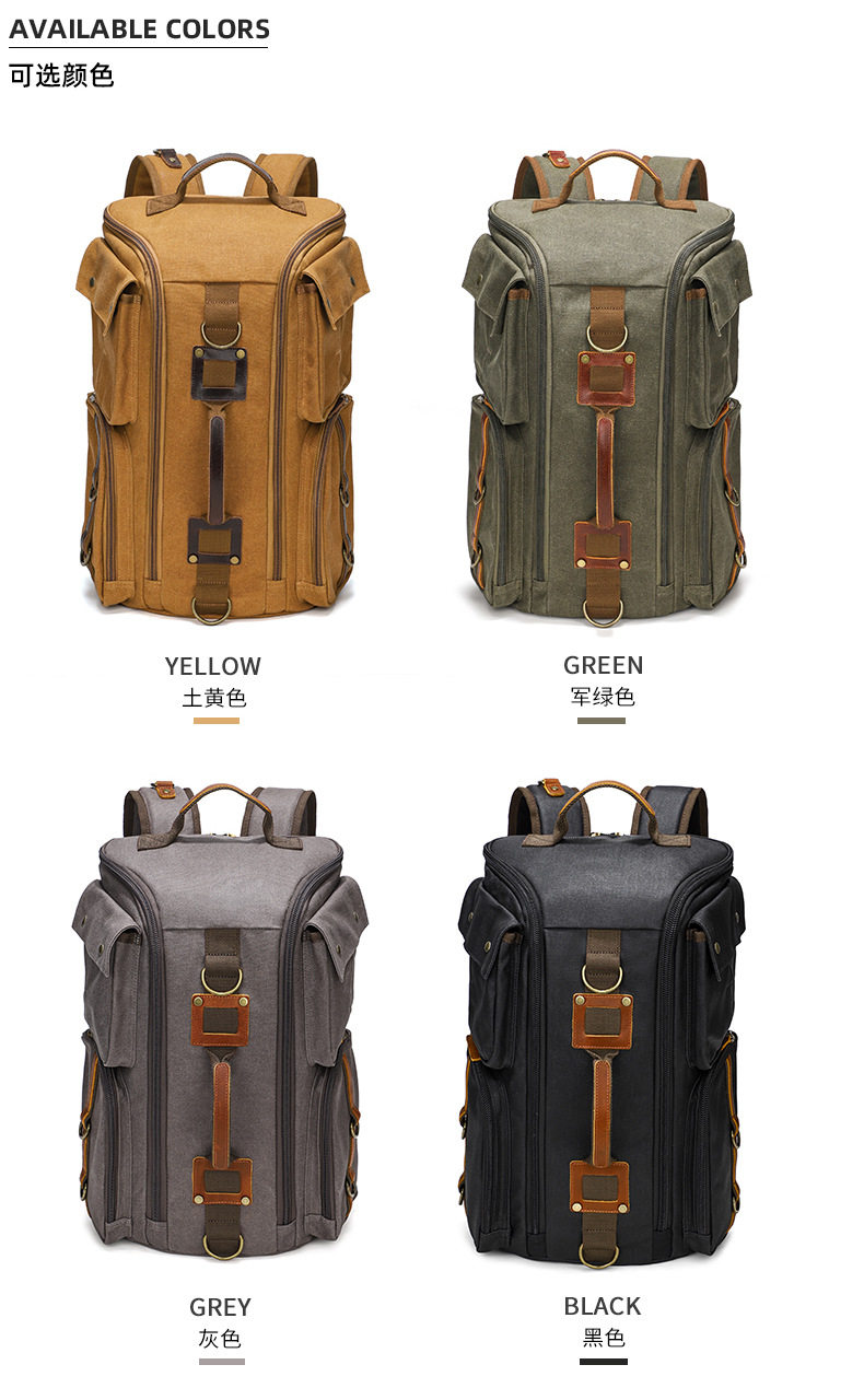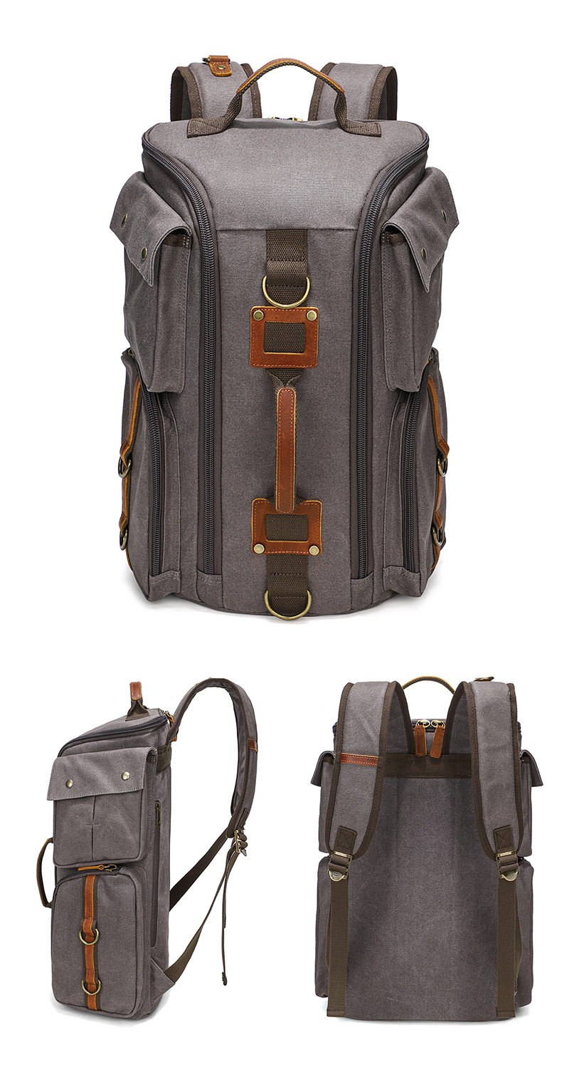 雙肩後後背包大容量休閒戶外多功能旅行電腦包防潑水復古帆布後後背包