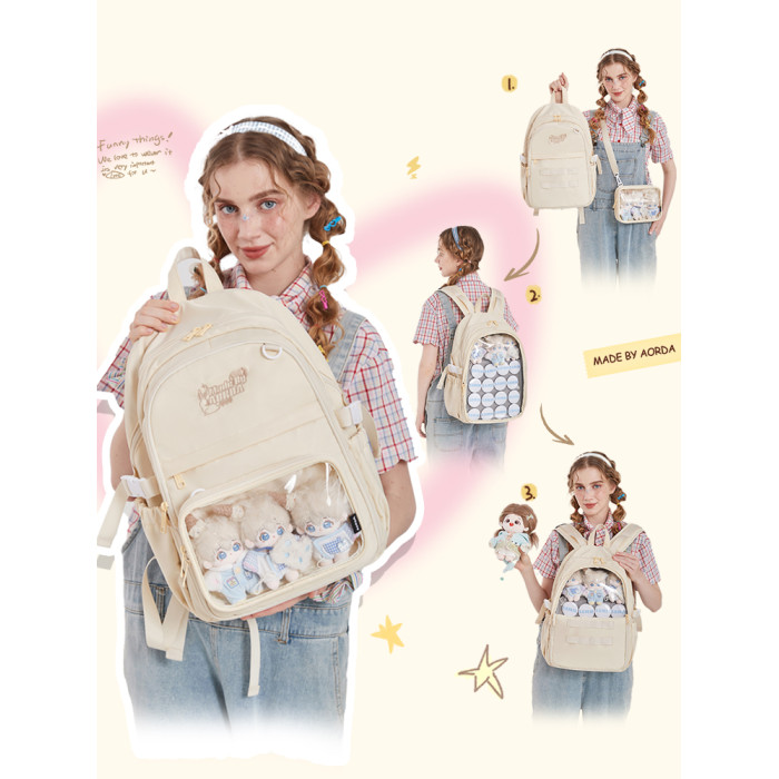 AORDA 痛包雙肩大容量書包初中女生藍色後後背包學生黨二次元40cm娃包