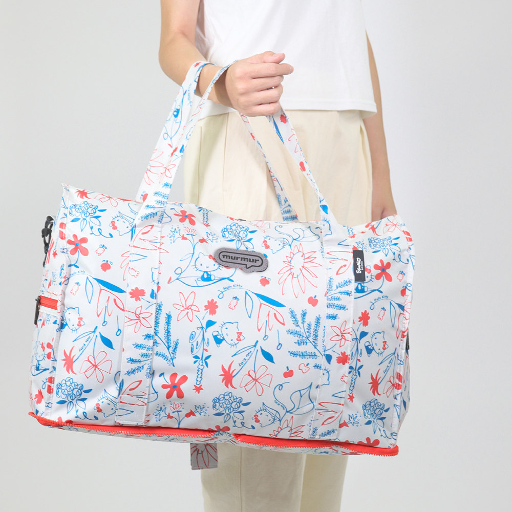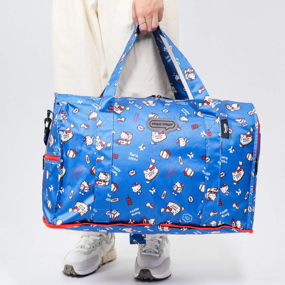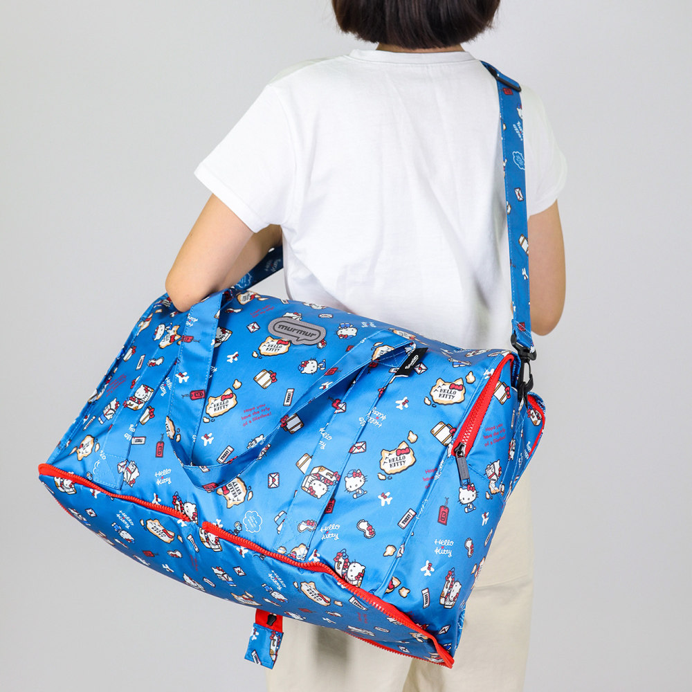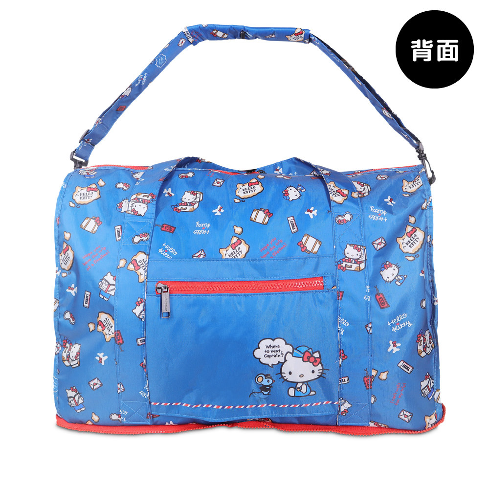日系kitty貓卡通可愛大容量旅行包折曡行李收納袋單肩斜背露營包