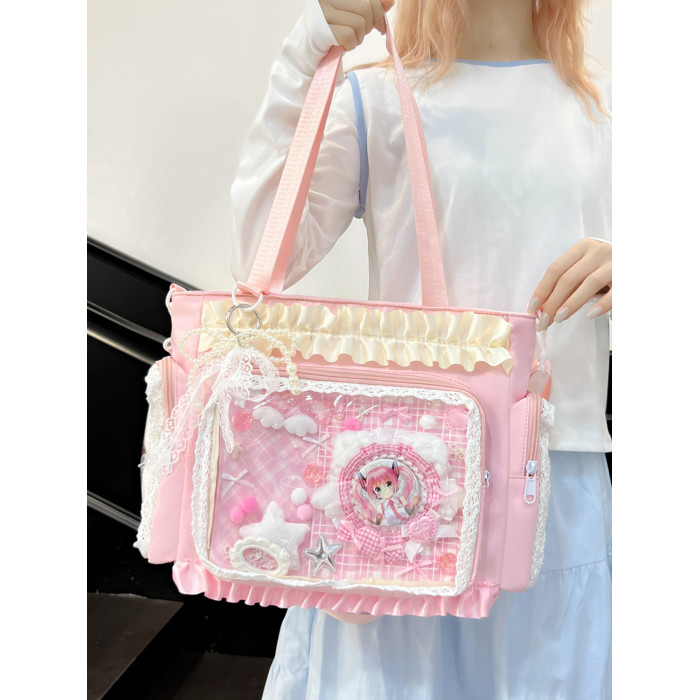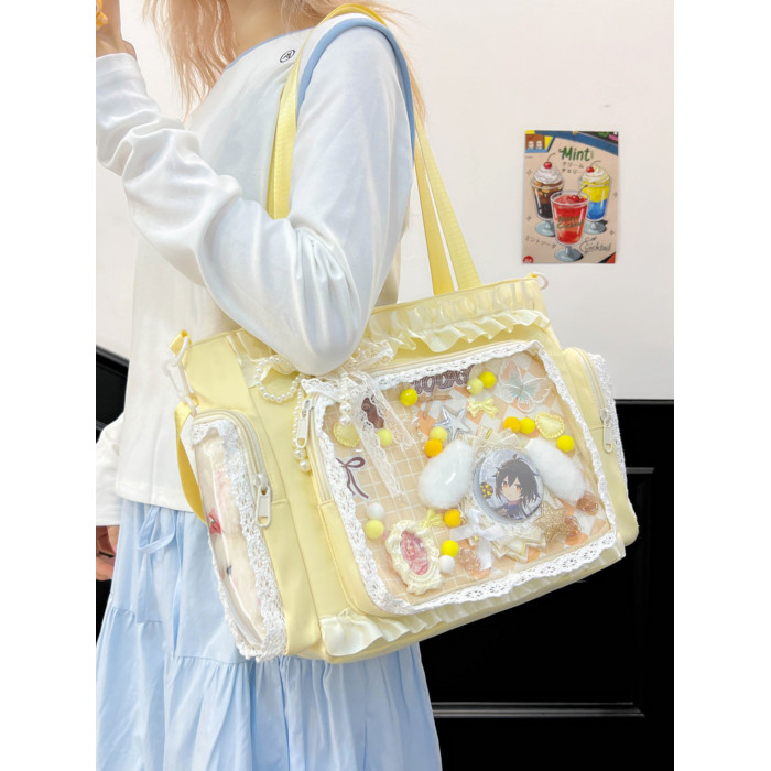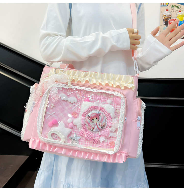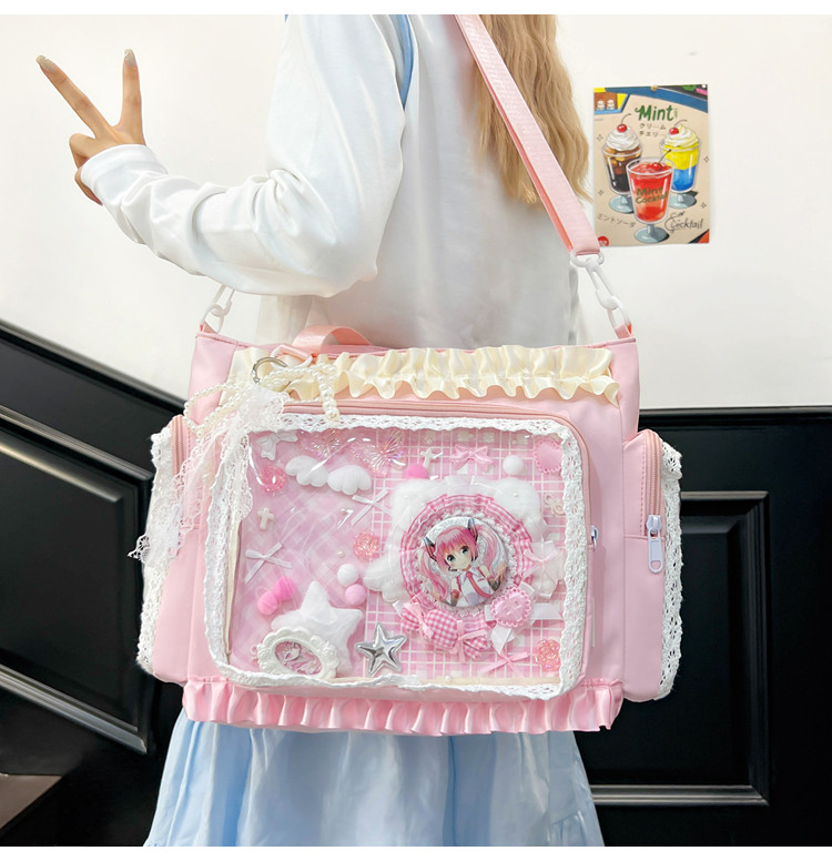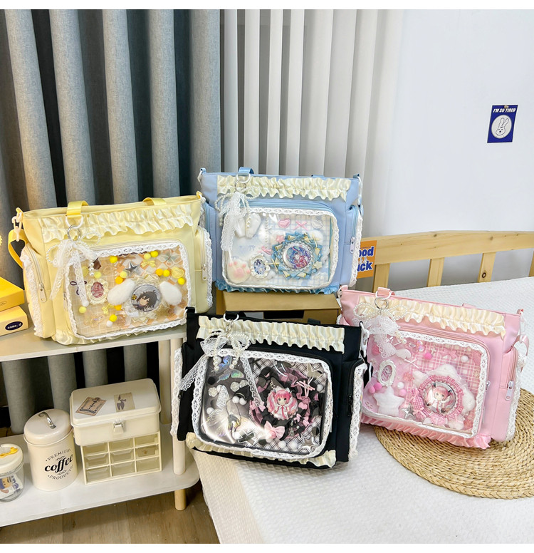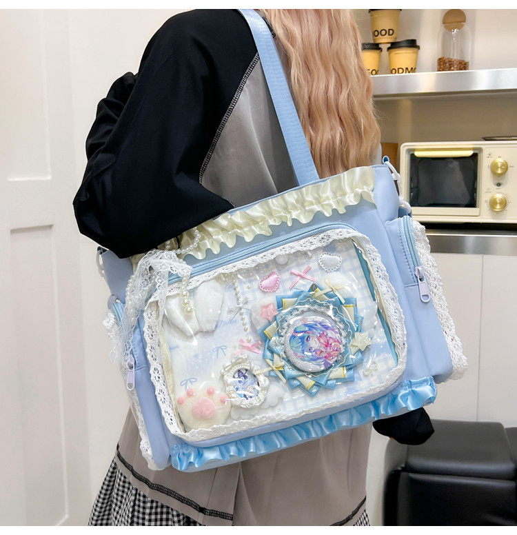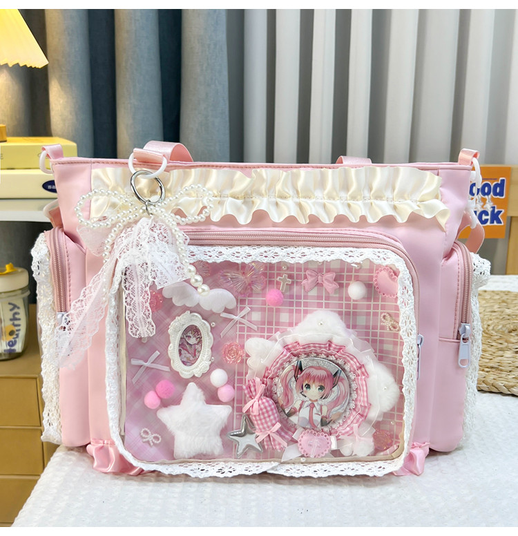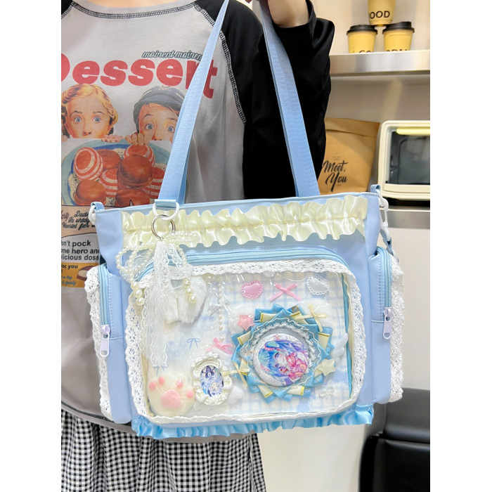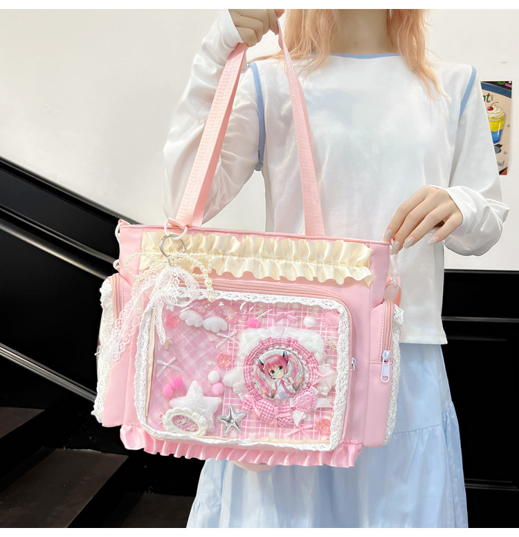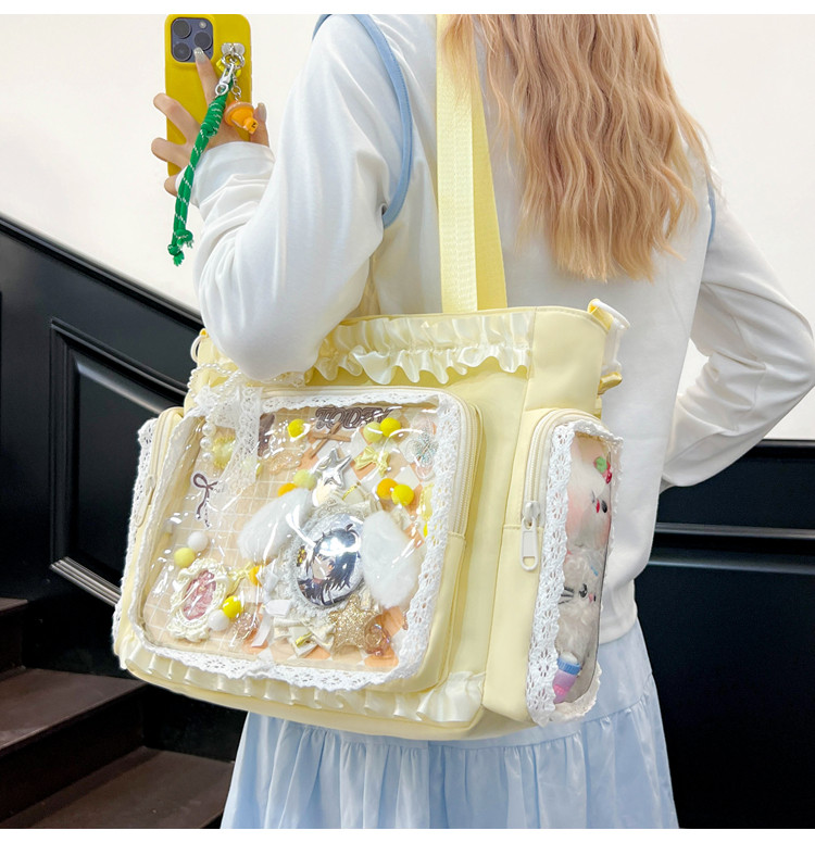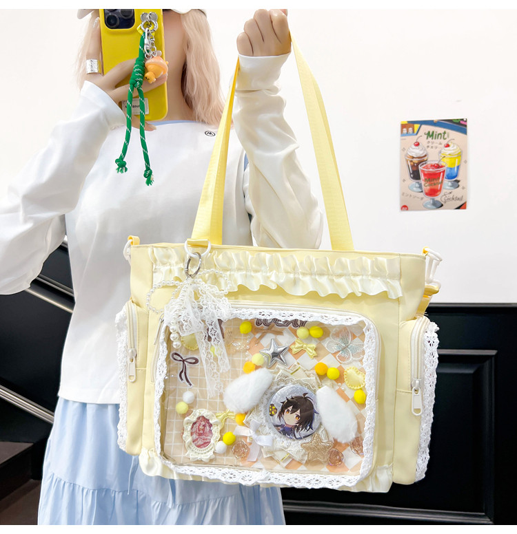 二次元穀子透明斜後後背包日系ins學院大容量托特包吧唧紥板痛包娃包