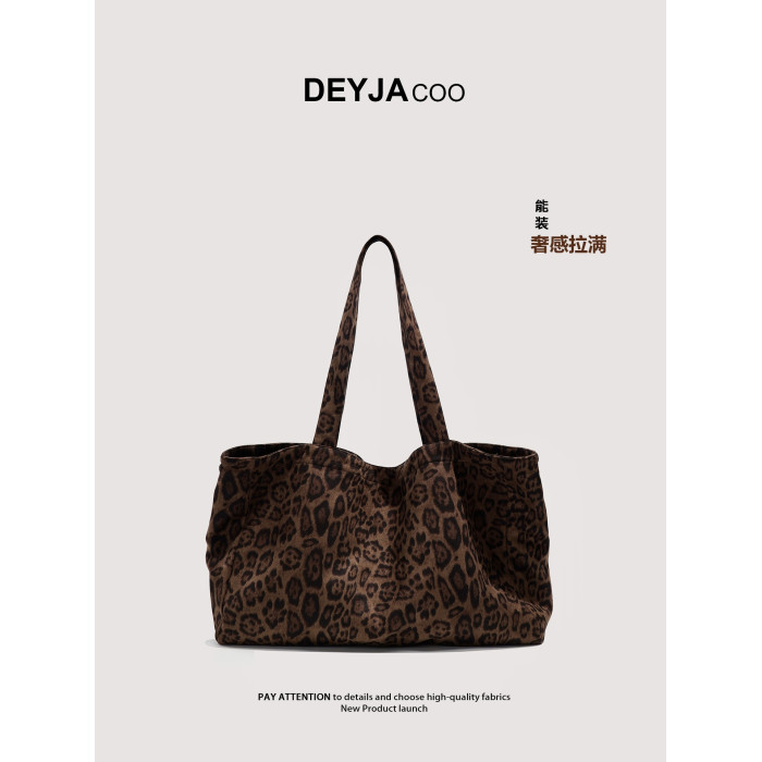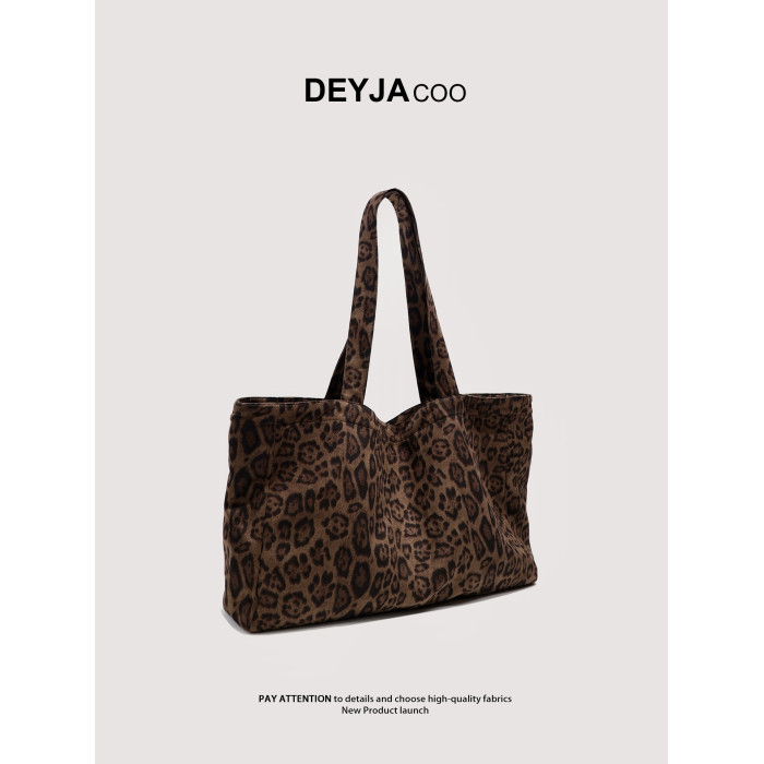 包包女2025秋冬新款麂皮絨豹紋帆布包大容量百搭單肩托特包通勤包