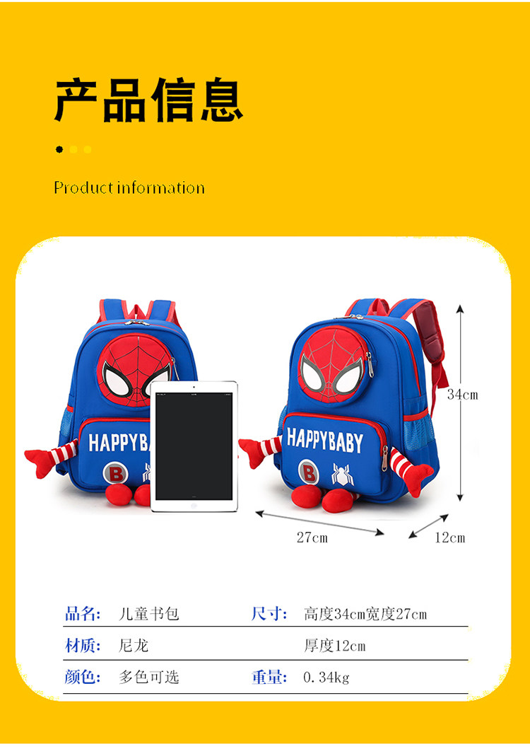 蜘蛛人書包出遊幼兒園男孩3-5嵗時尚可愛卡通兒童中大班雙肩後後背包4