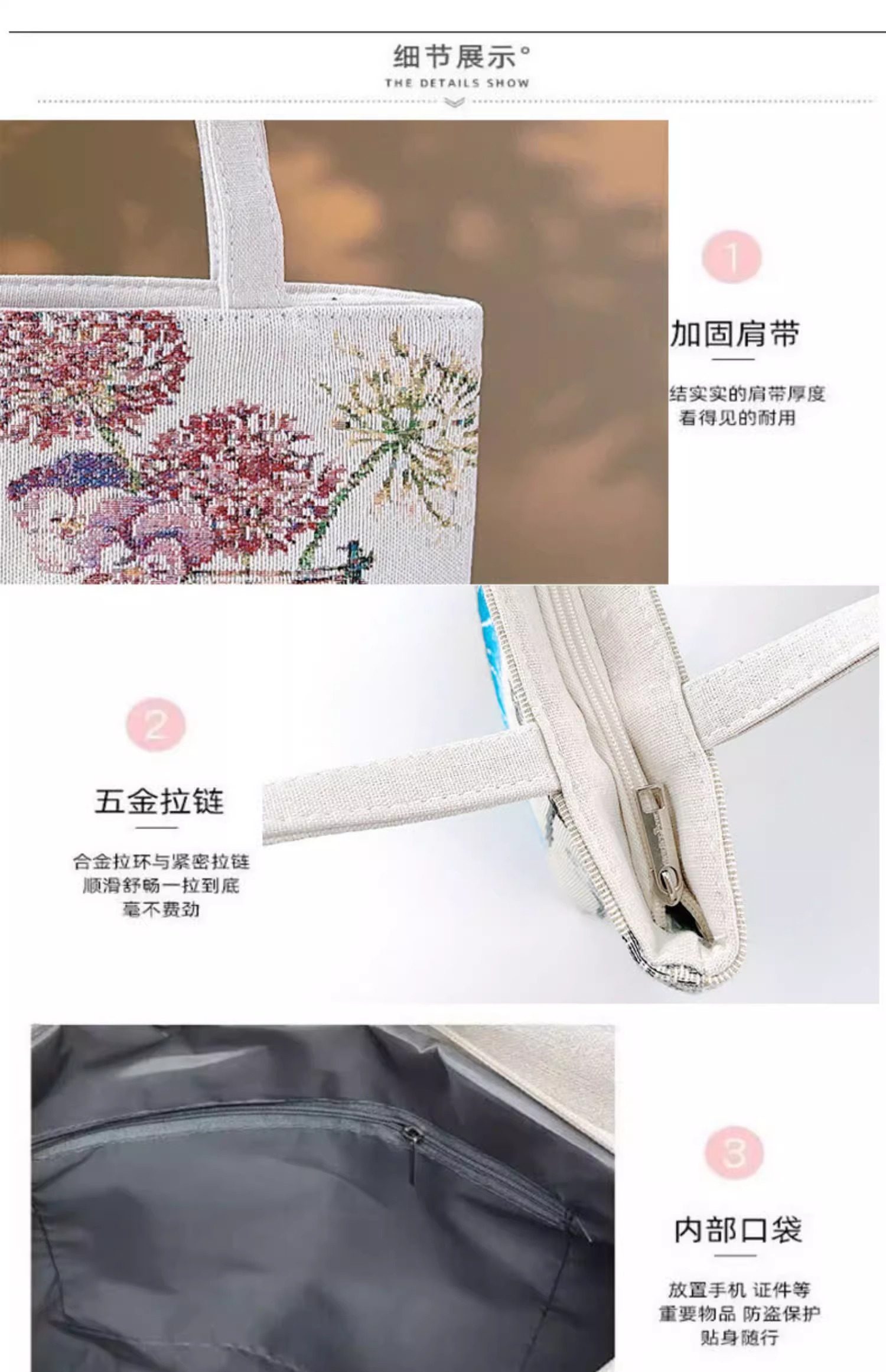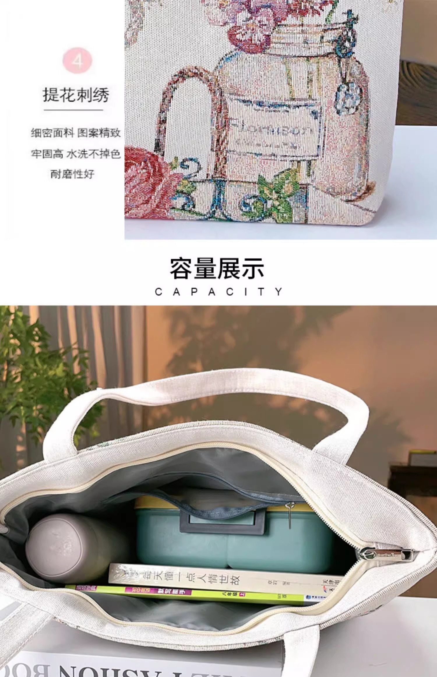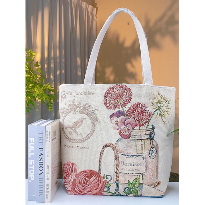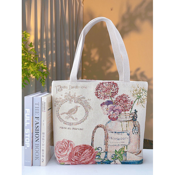 瓶中花雙面金絲提花刺綉帆布手提包單肩包休閒文藝學生上班通勤包