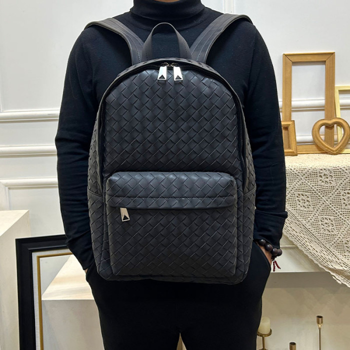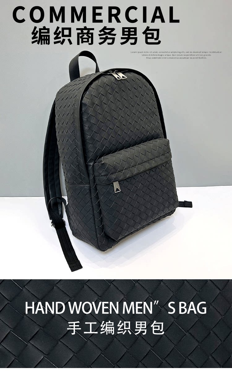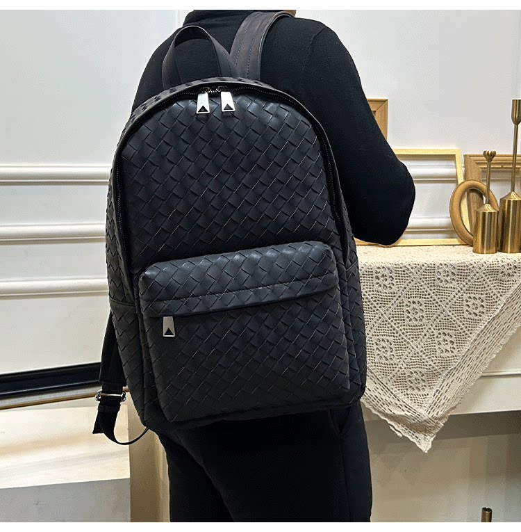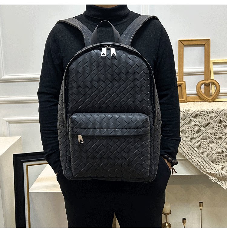 X&BV雙肩包男士後後背包真皮編織男包時尚潮流商務旅行出差大容量書包