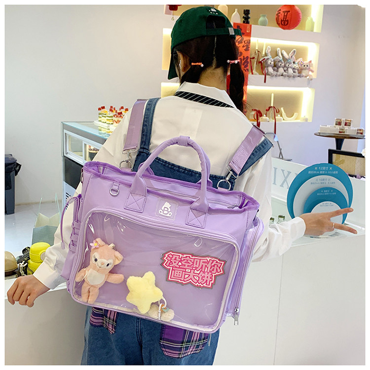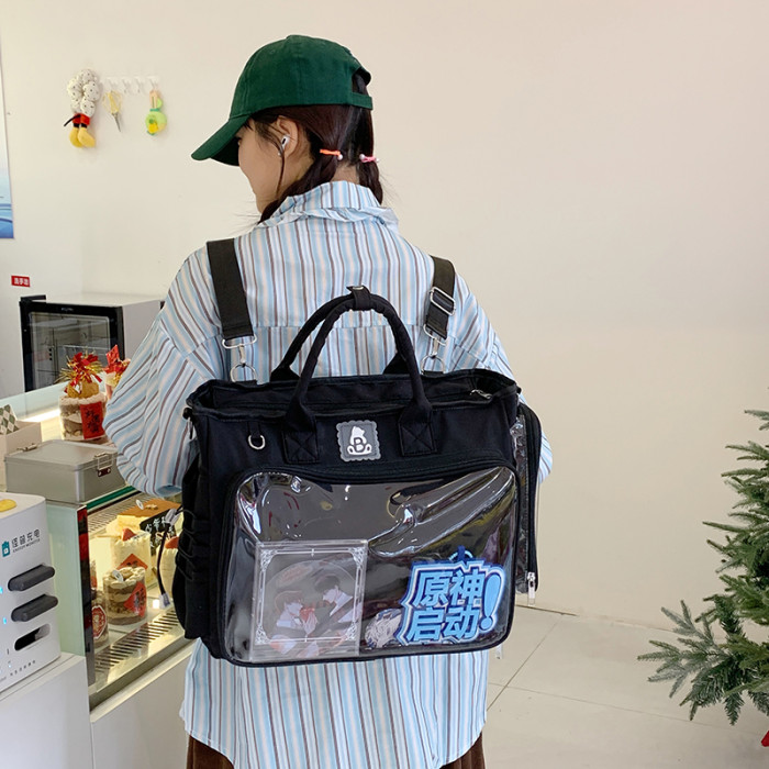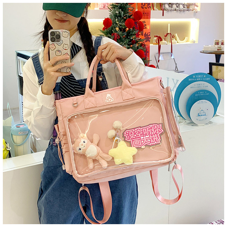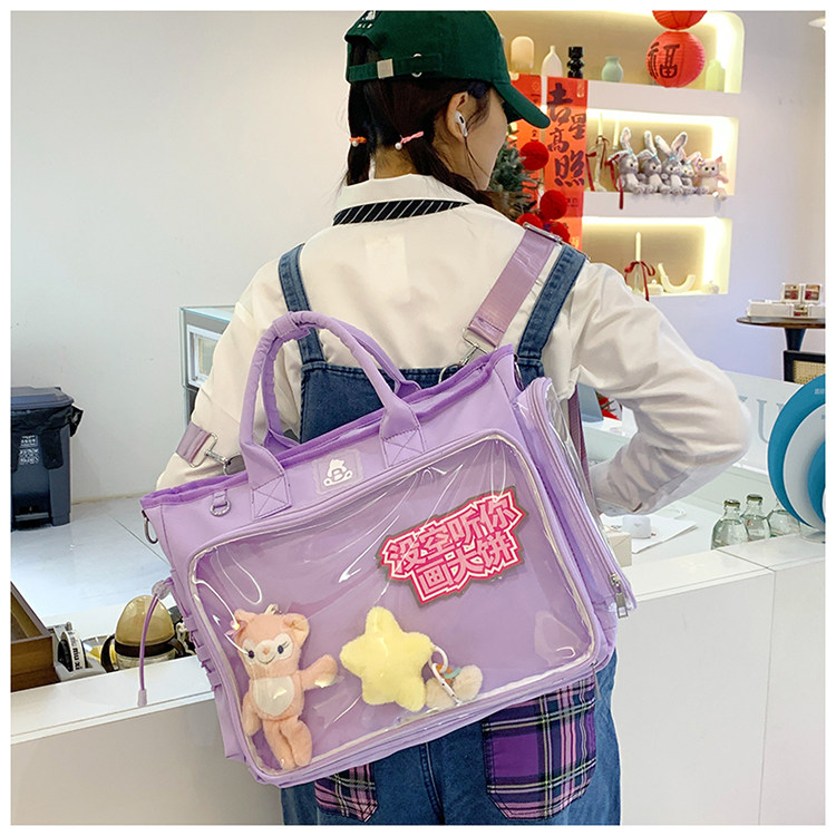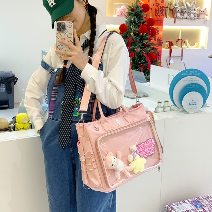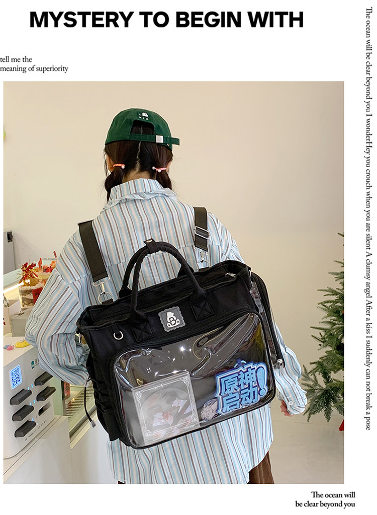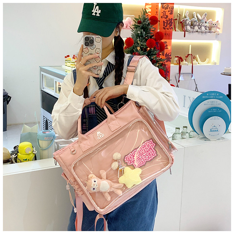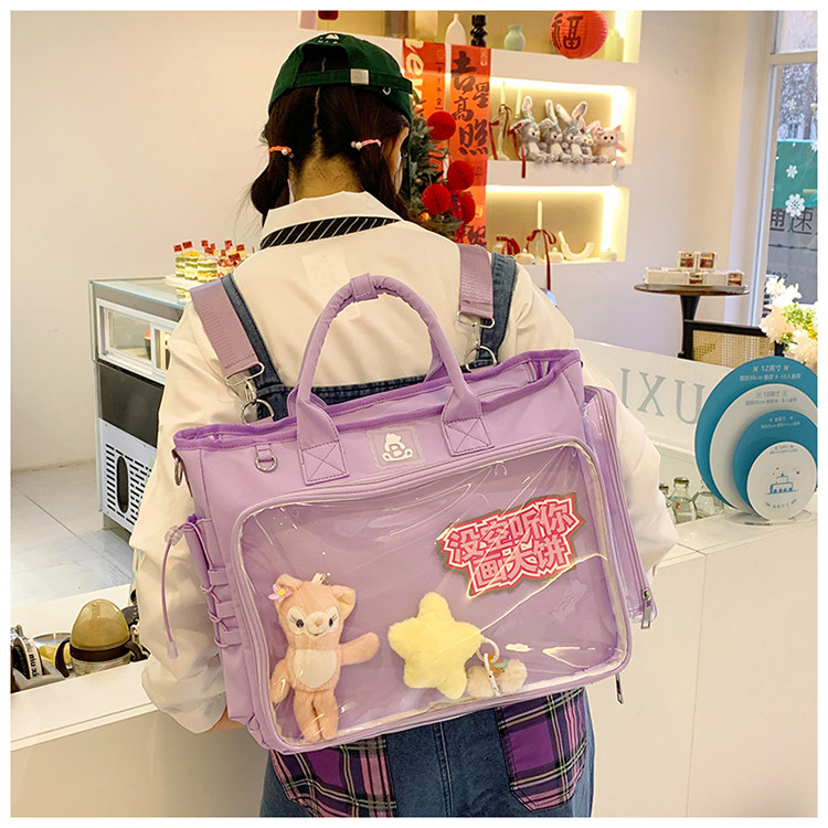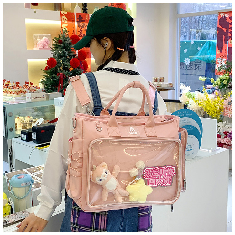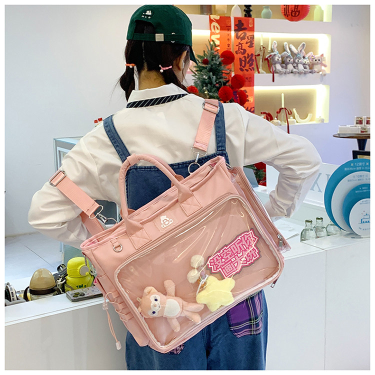 原創日系大容量痛包通勤透明娃娃包雙肩包學生書包電腦包單肩書包
