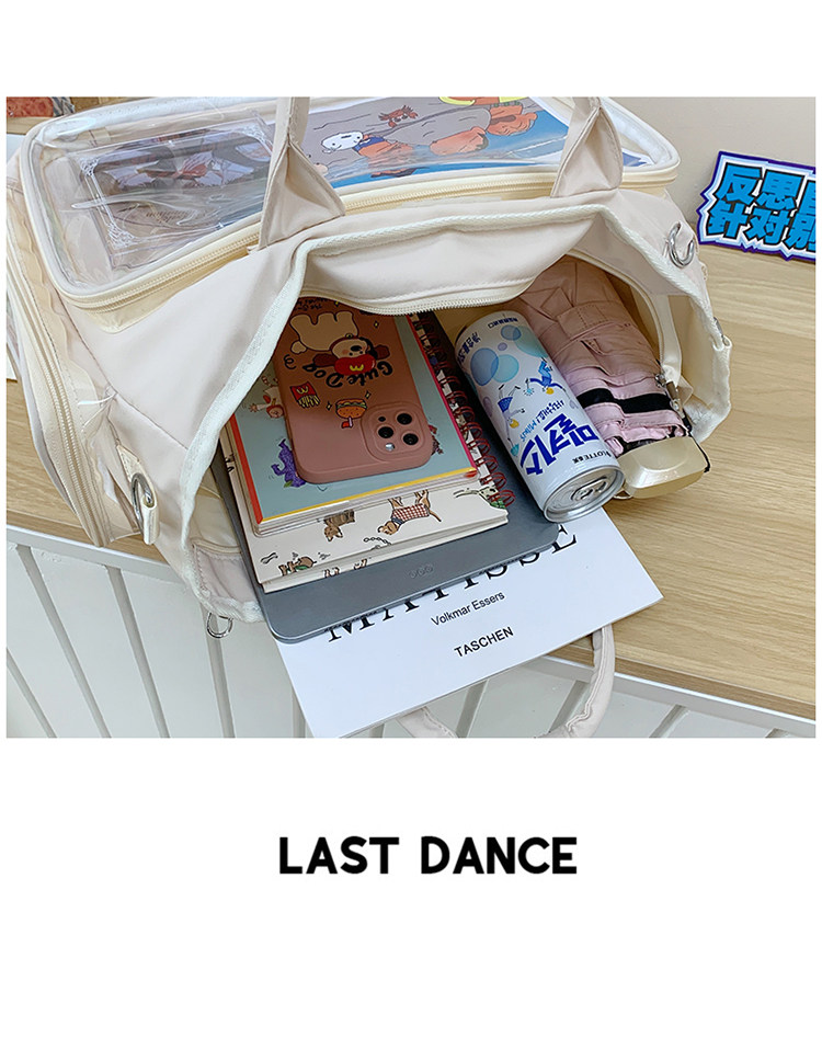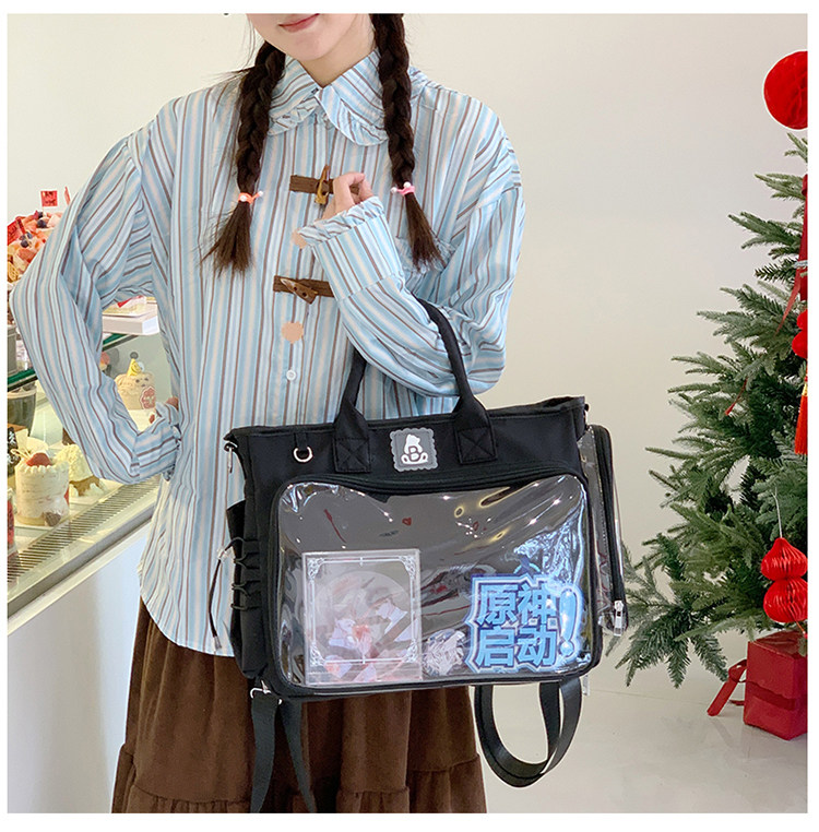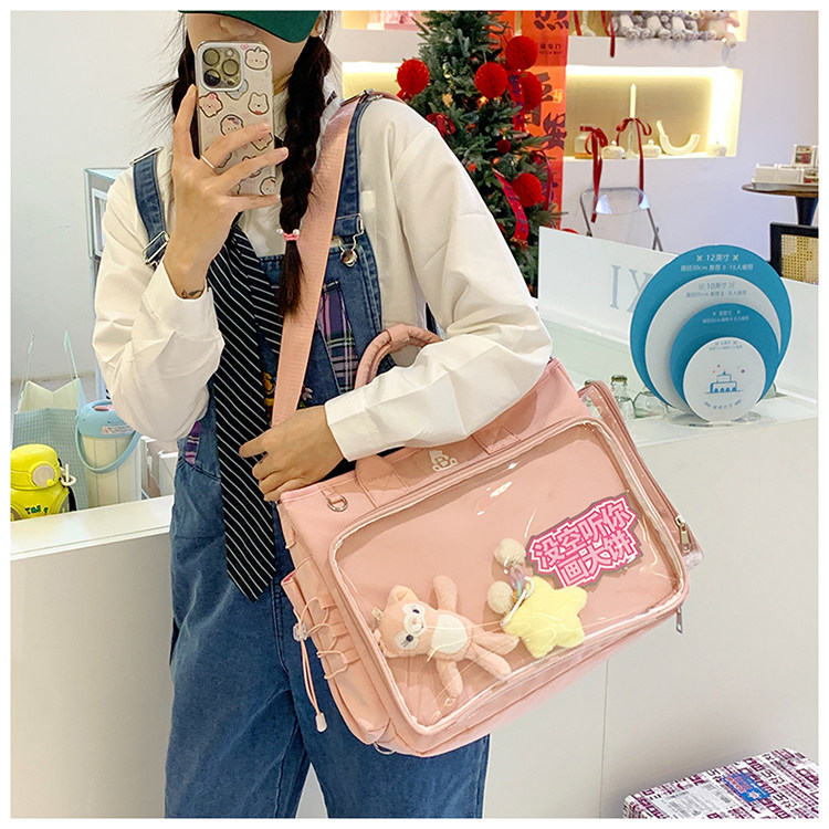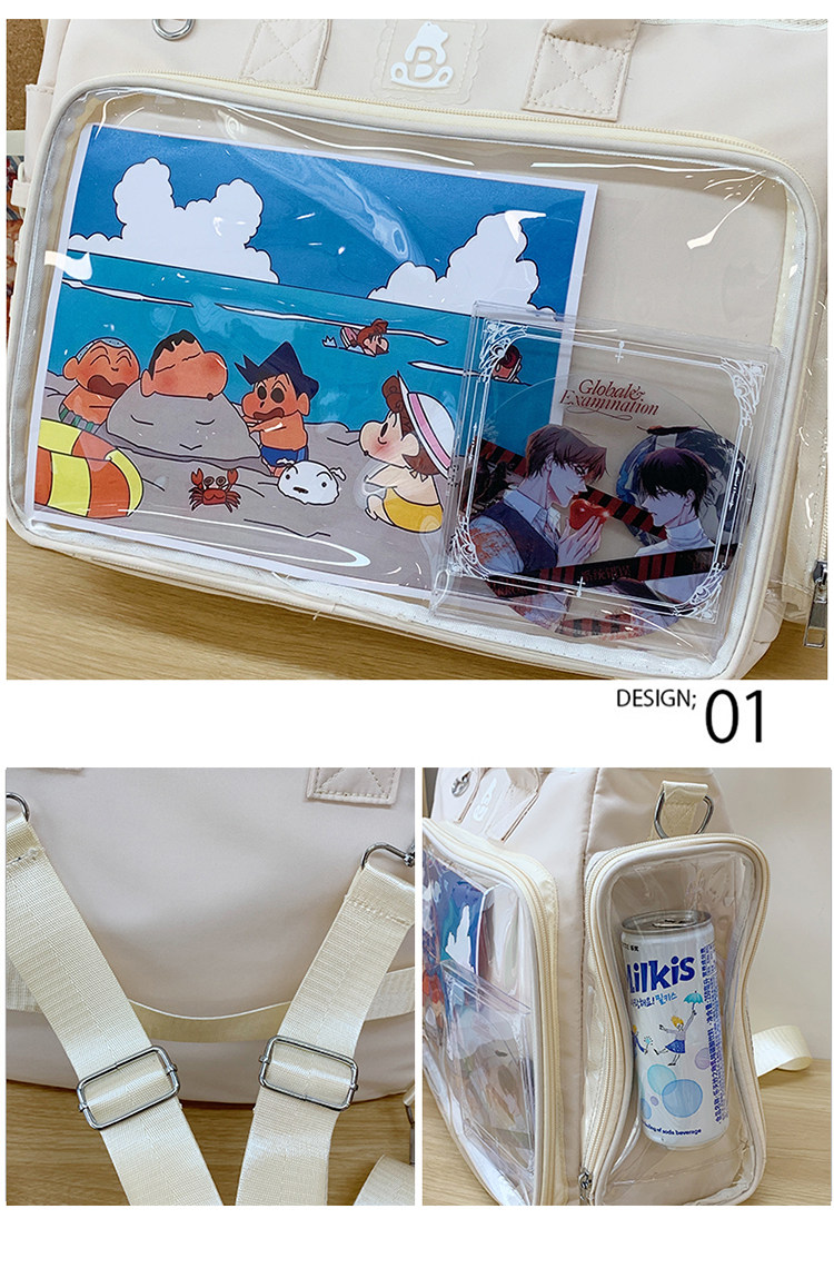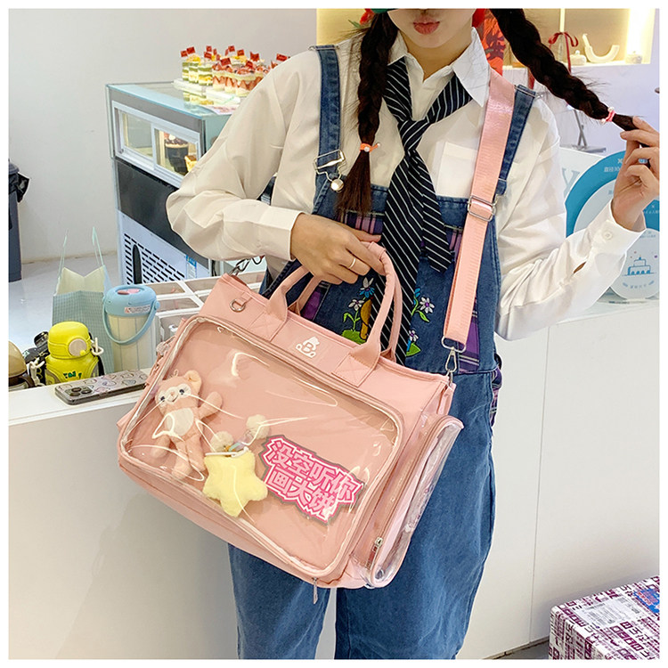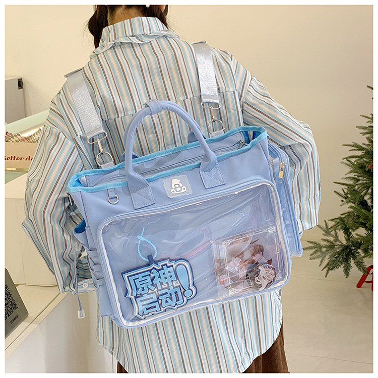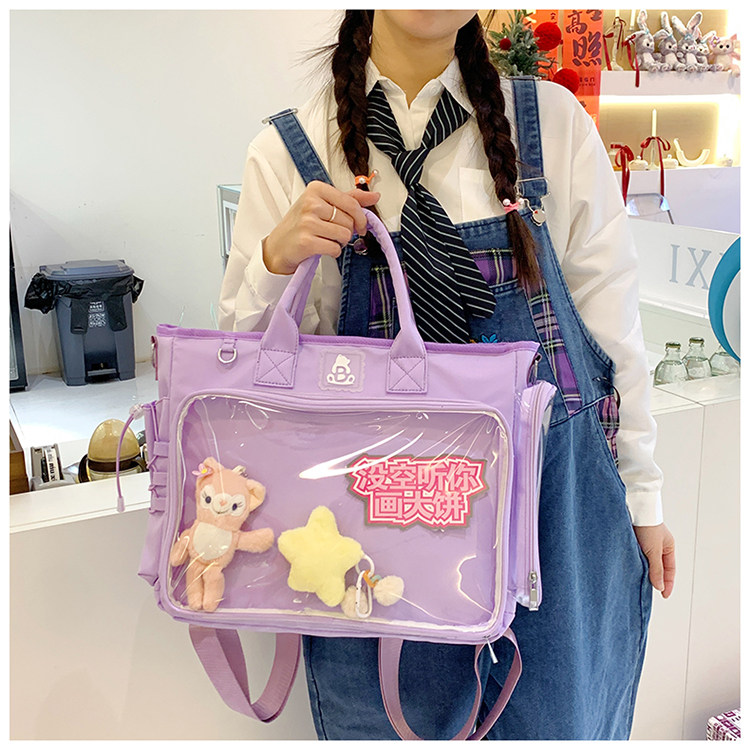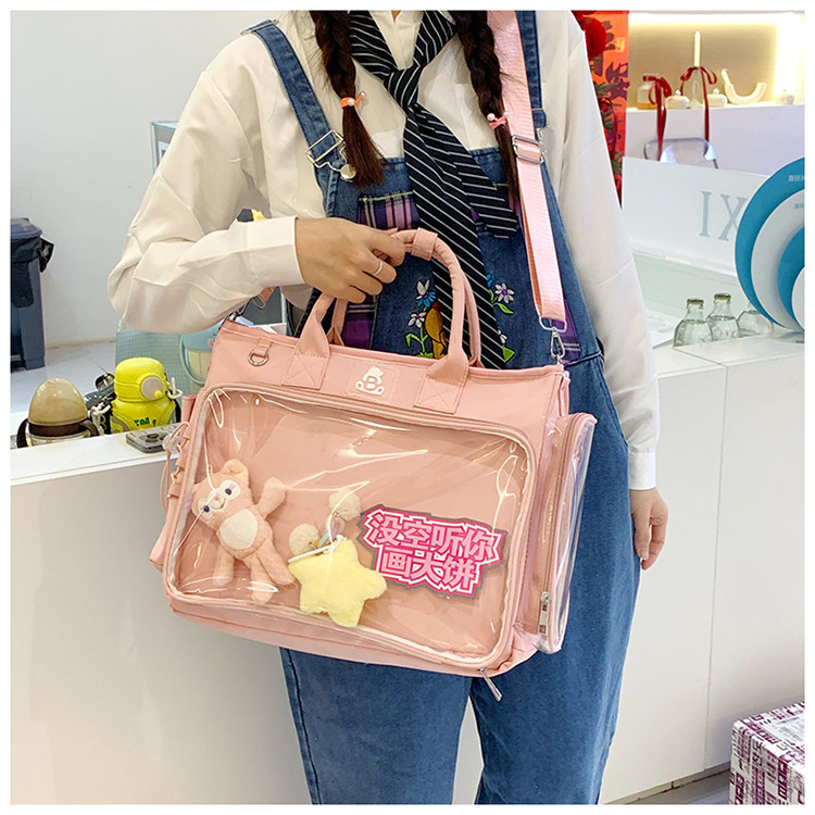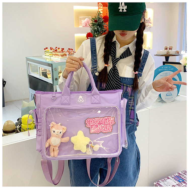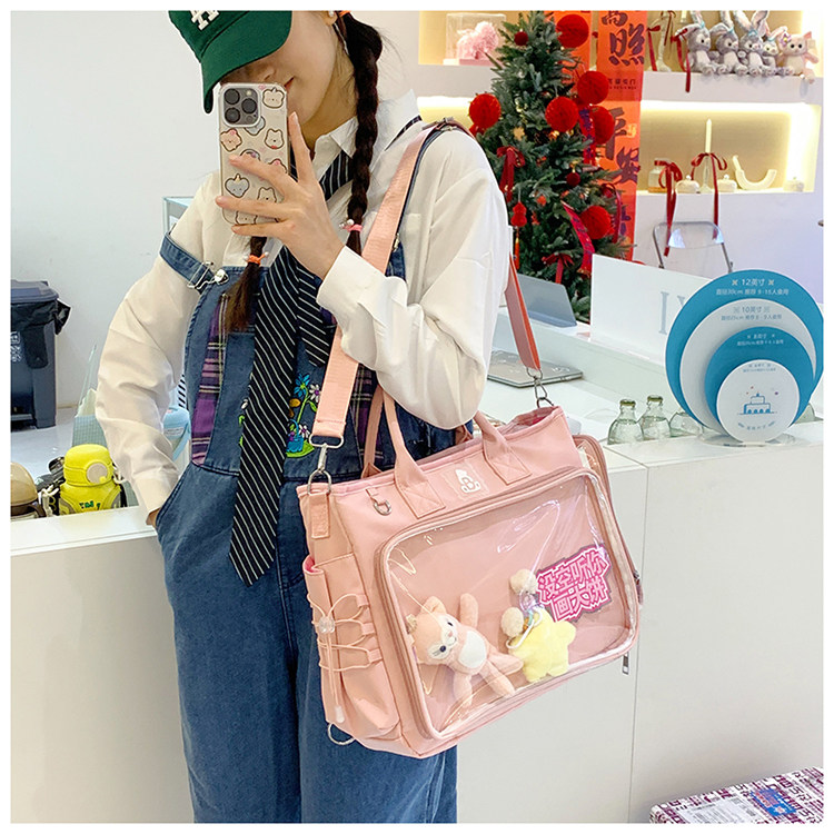原創日系大容量痛包通勤透明娃娃包雙肩包學生書包電腦包單肩書包