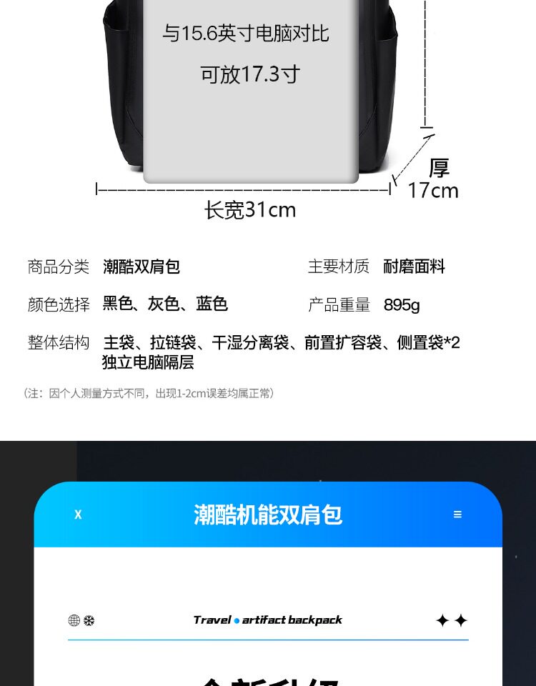 騎行雙肩包男乾濕分離防潑水電腦包機能頭盔包休閒大學高中生書包