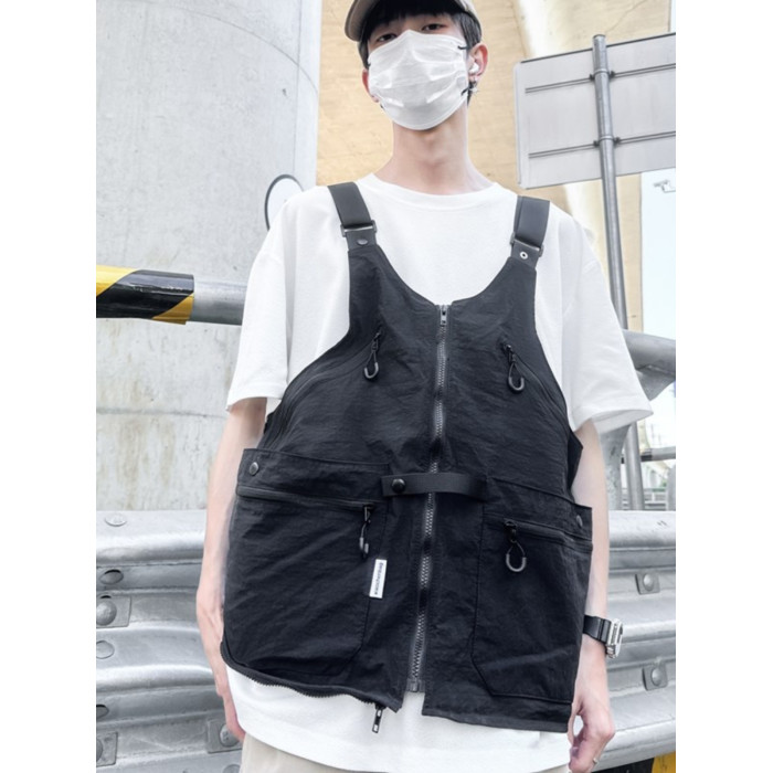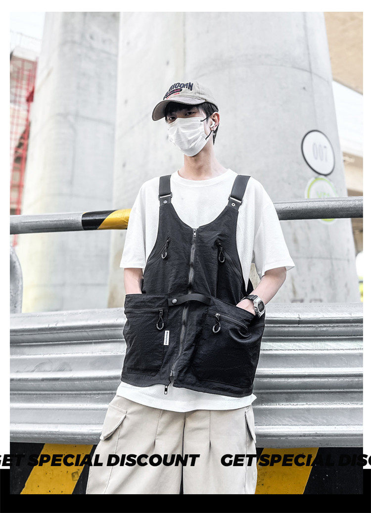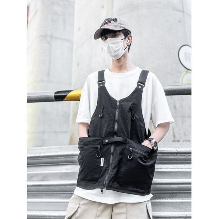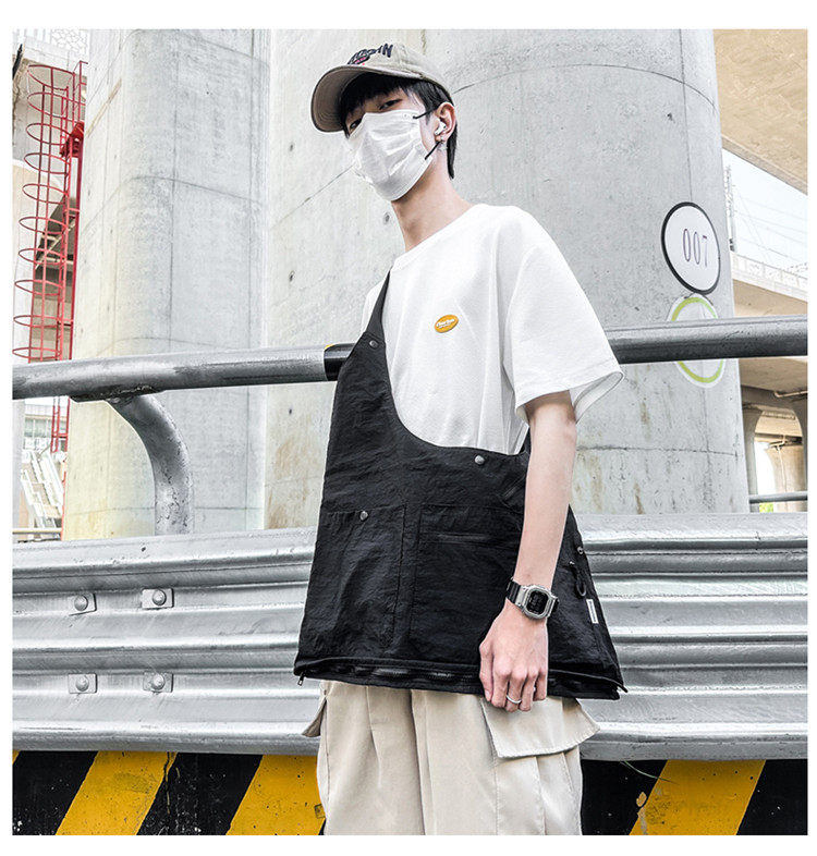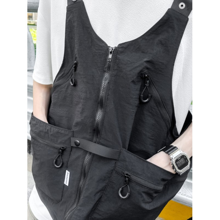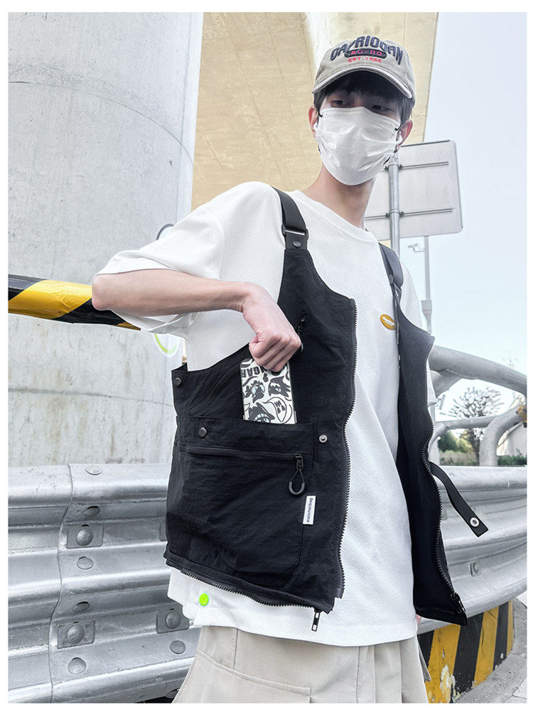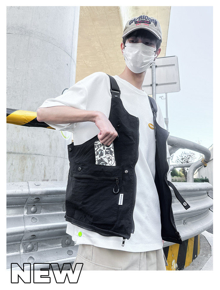工裝美式復古多口袋無袖尼龍馬甲背心戶外機能兩用挎包外套戶外包