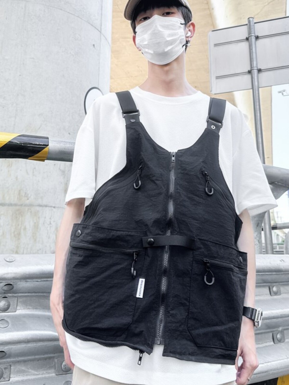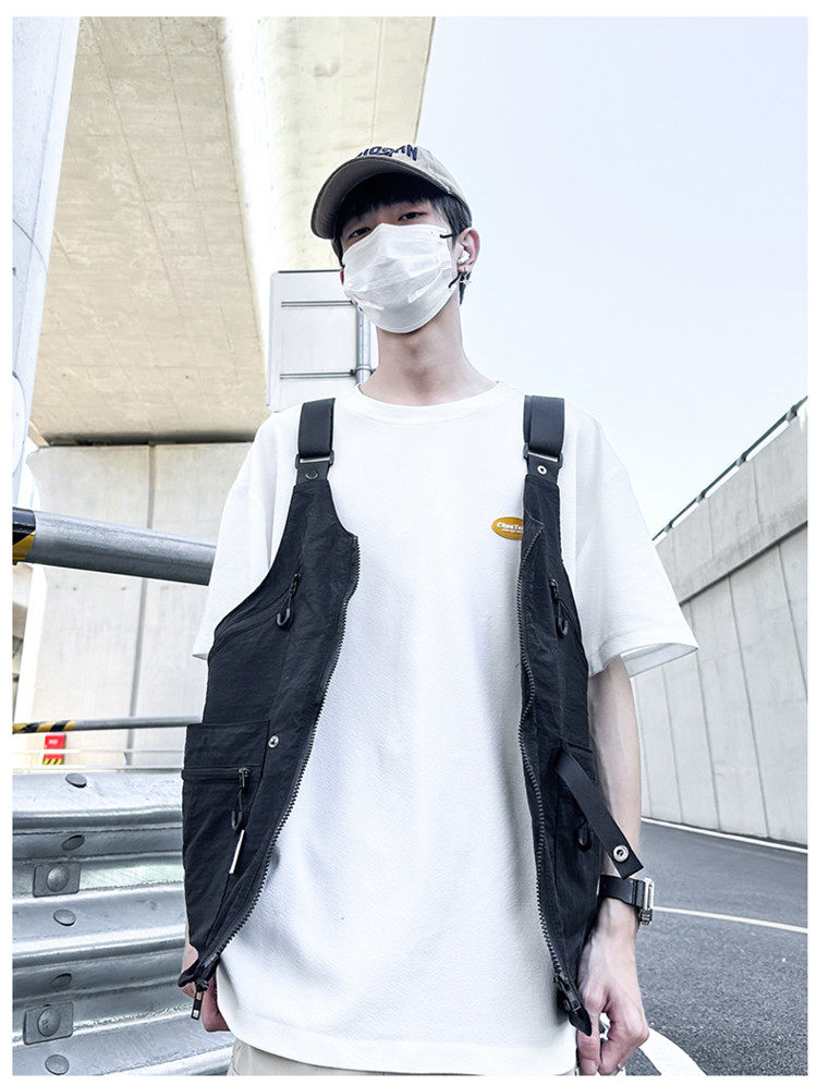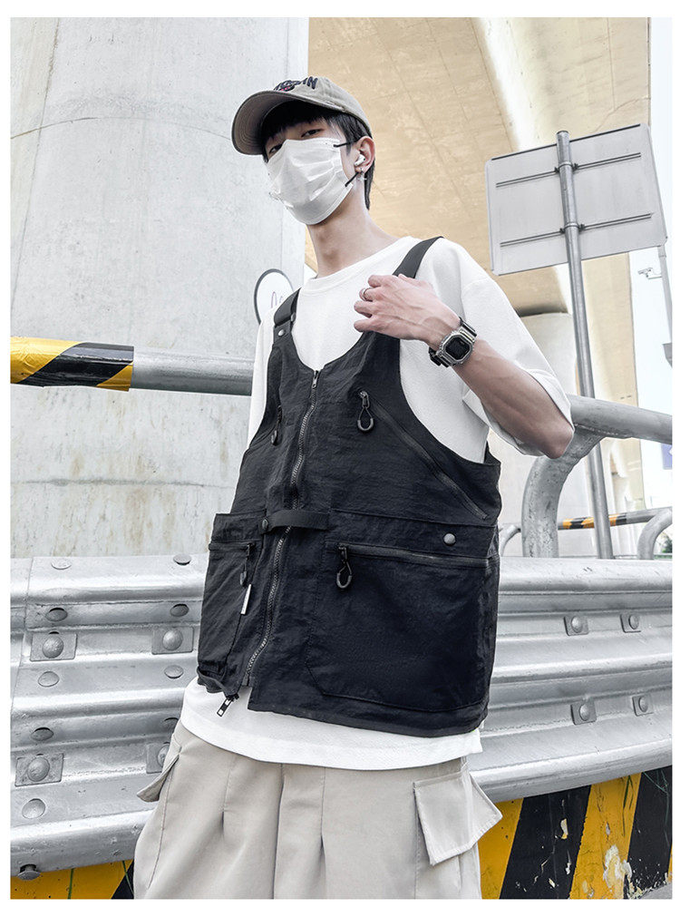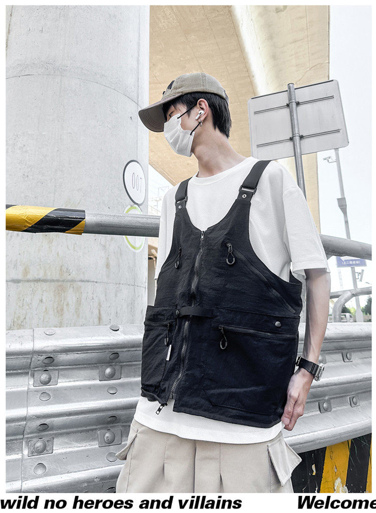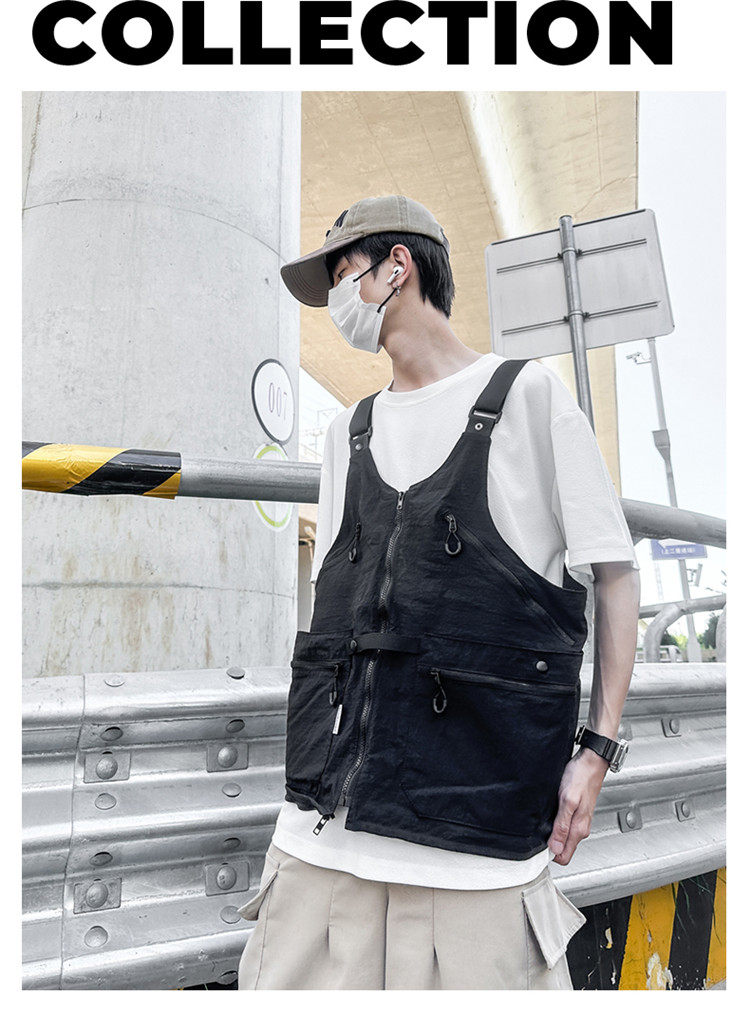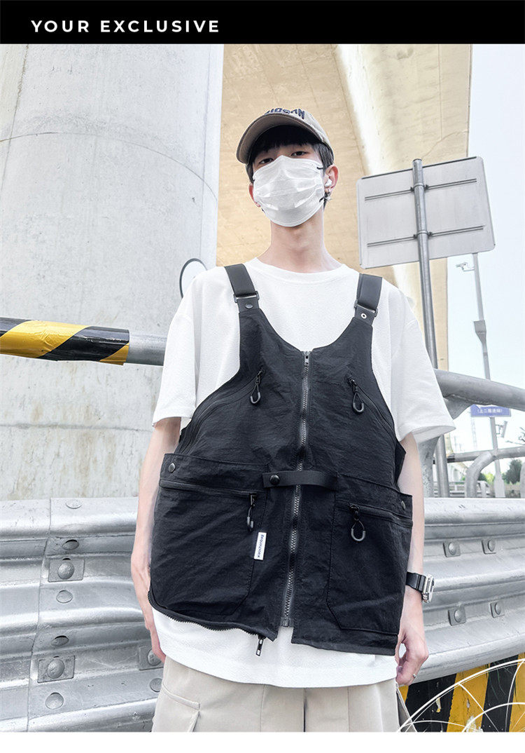 工裝美式復古多口袋無袖尼龍馬甲背心戶外機能兩用挎包外套戶外包