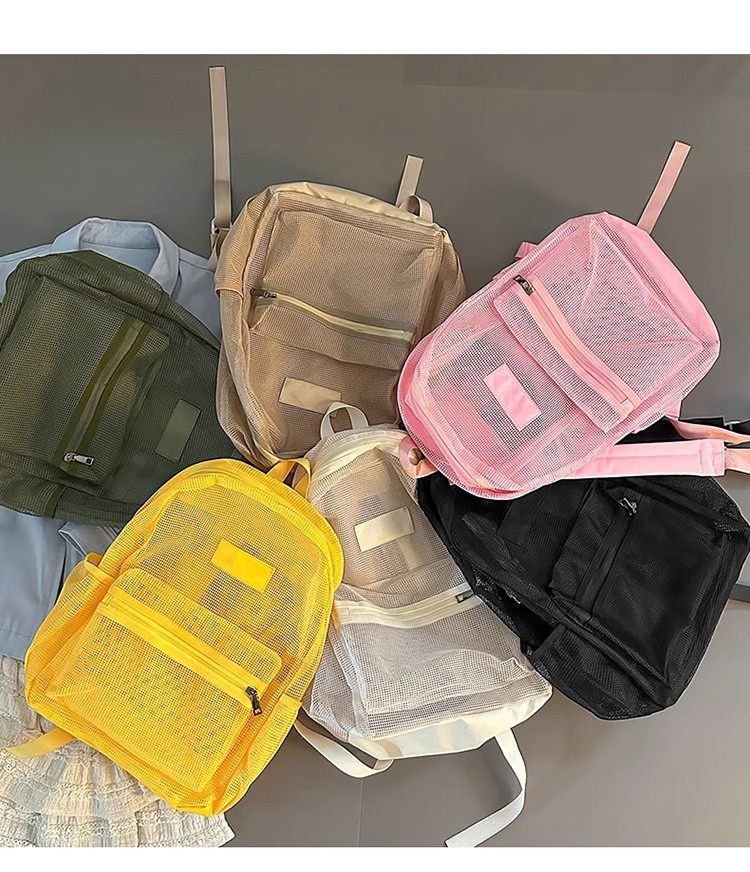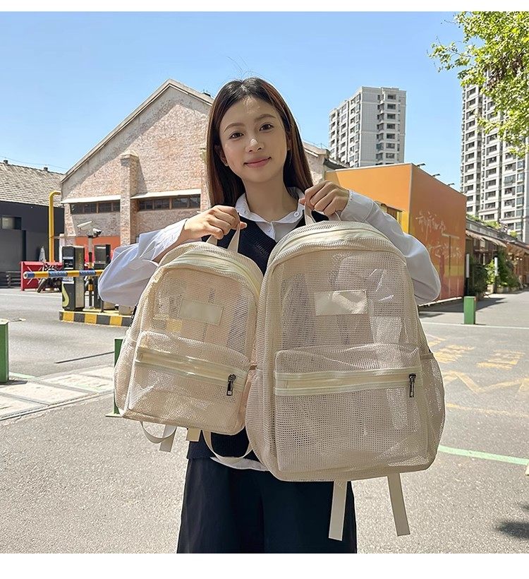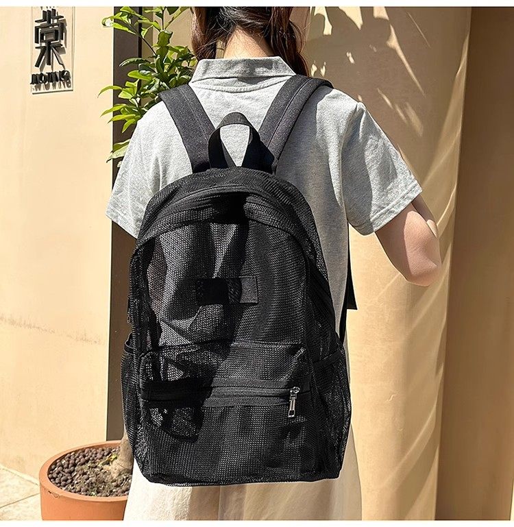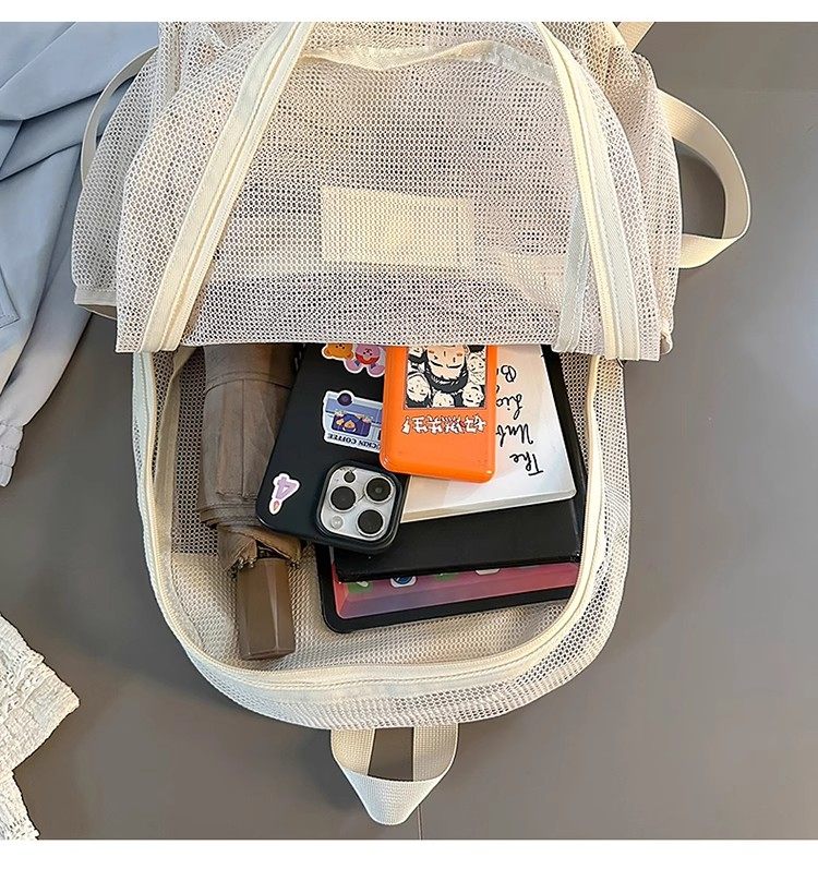 2025新款夏季男女休閒輕便戶外透氣鏤空網眼雙肩後後背包大容量書包