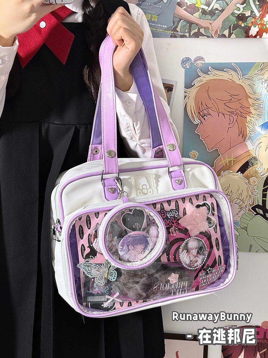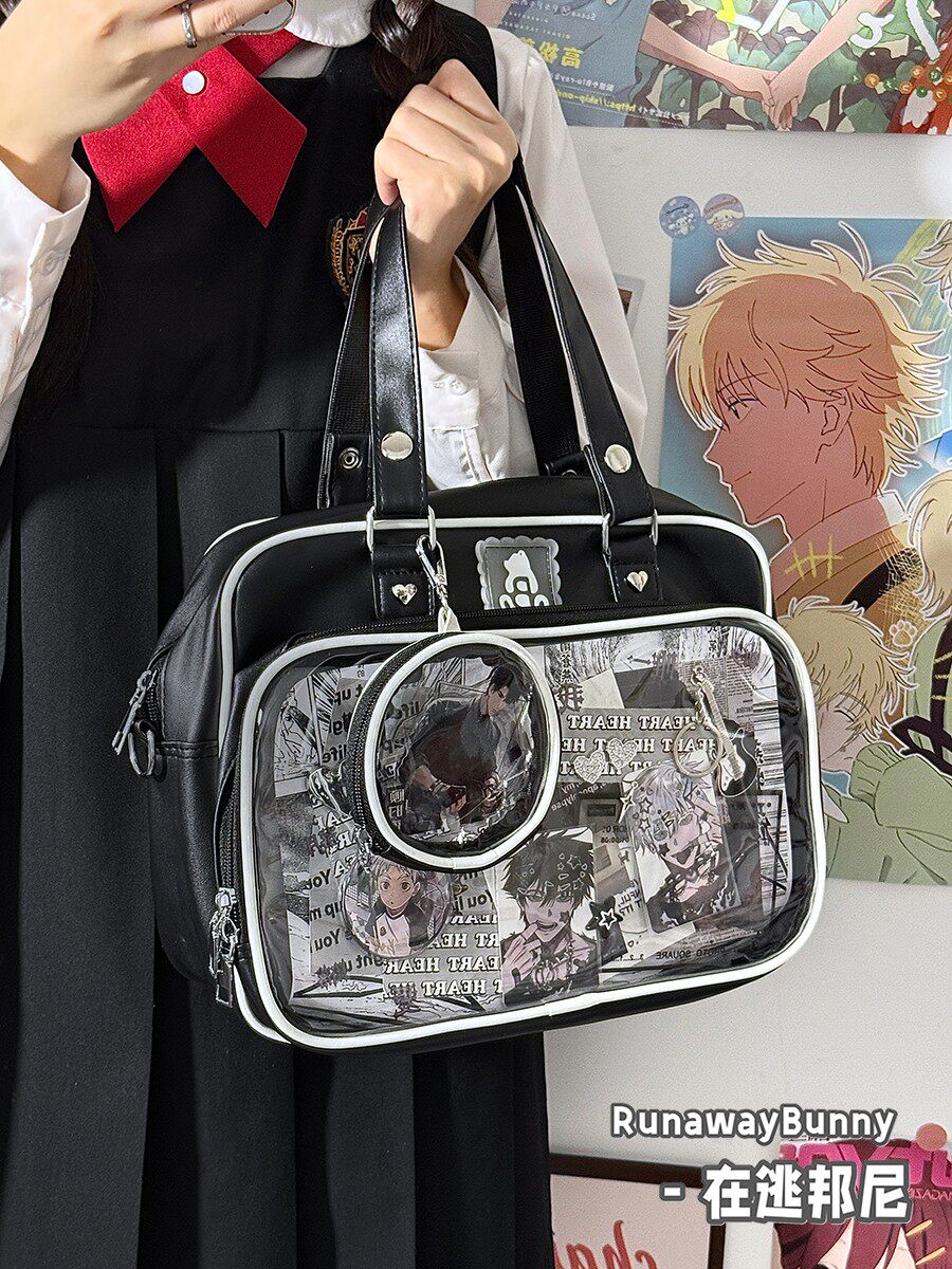 日系學院jk娃包可愛軟妹二次元撞色透明痛包大食量吧唧斜背穀子包