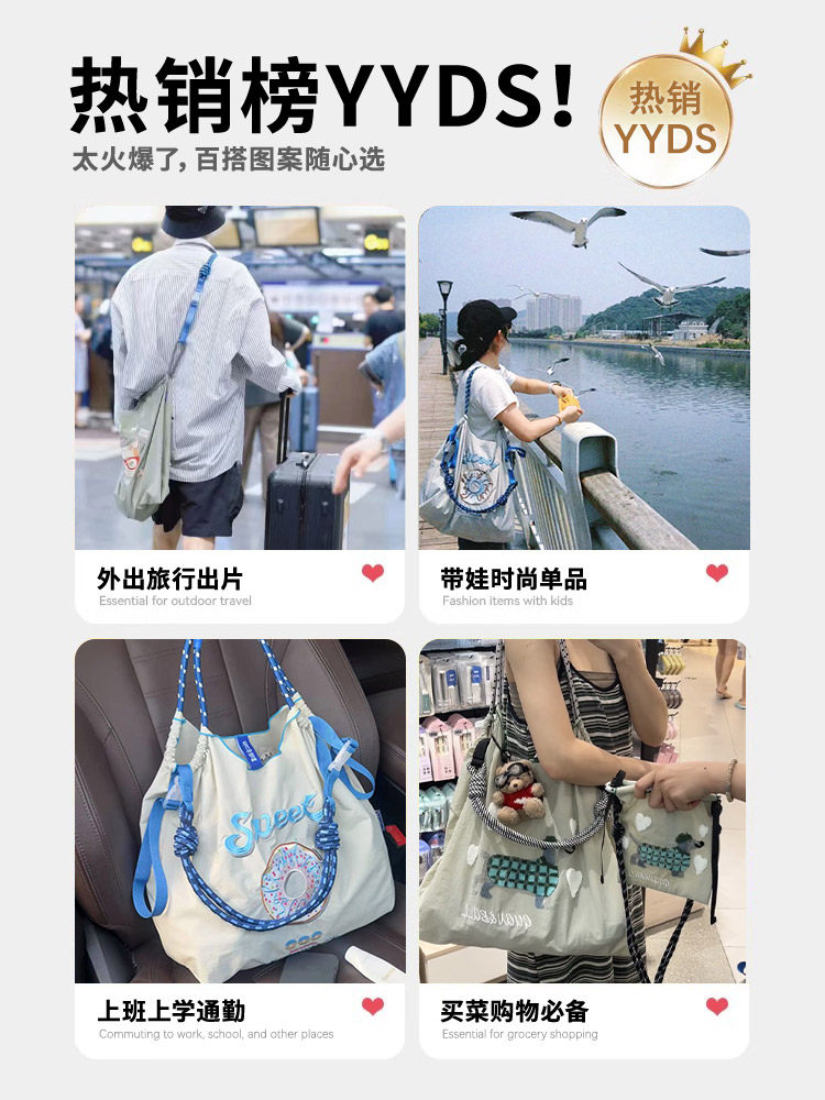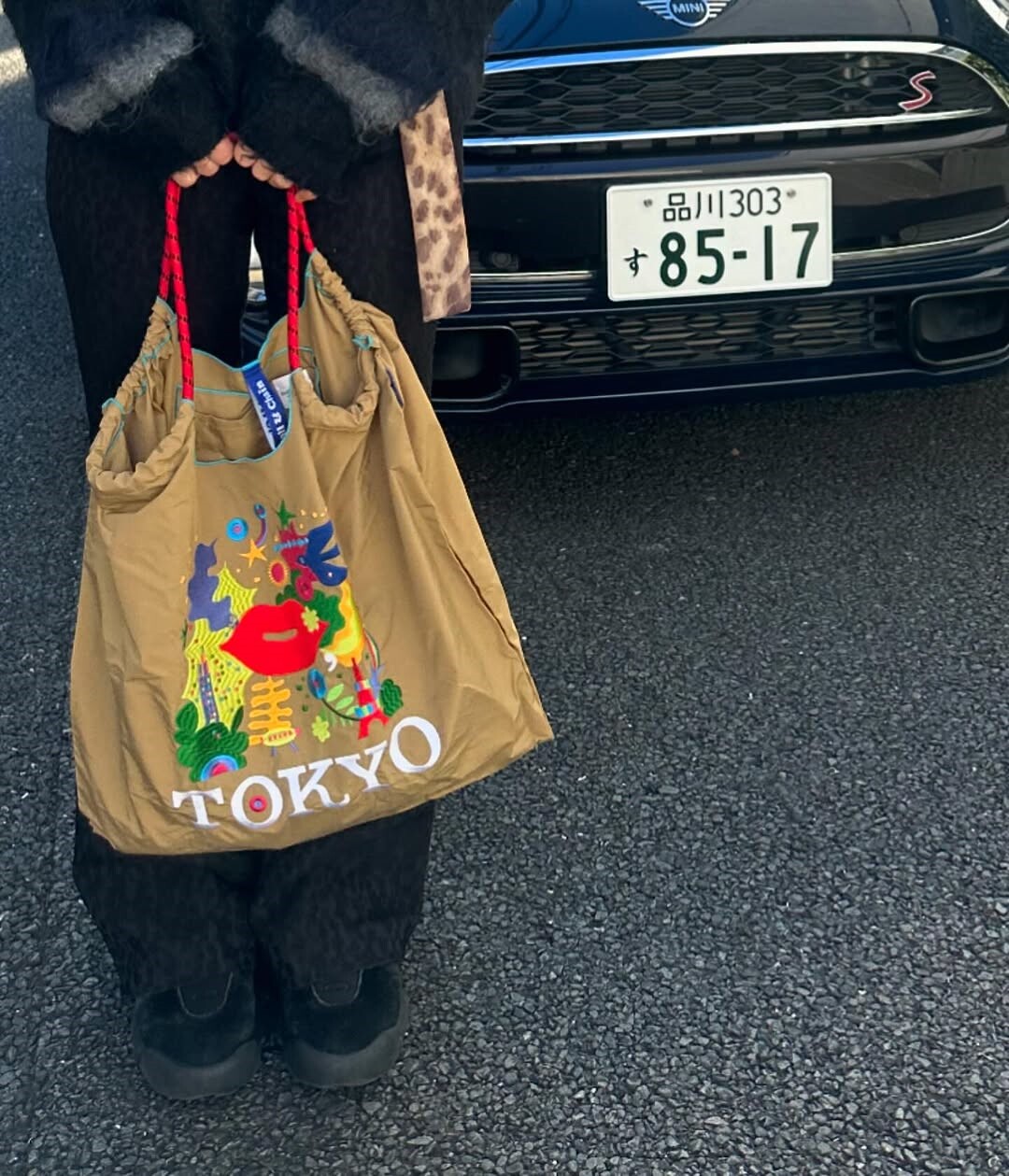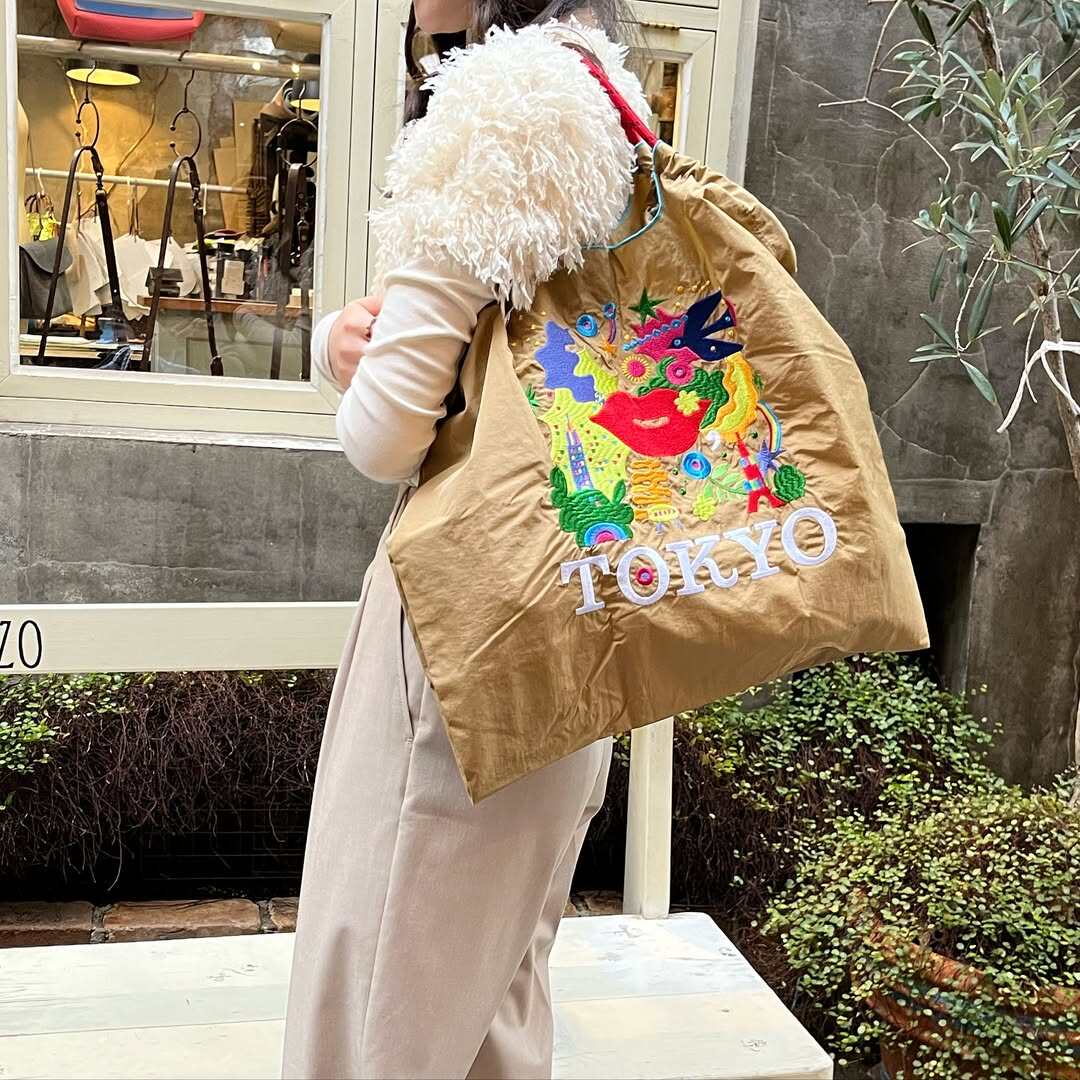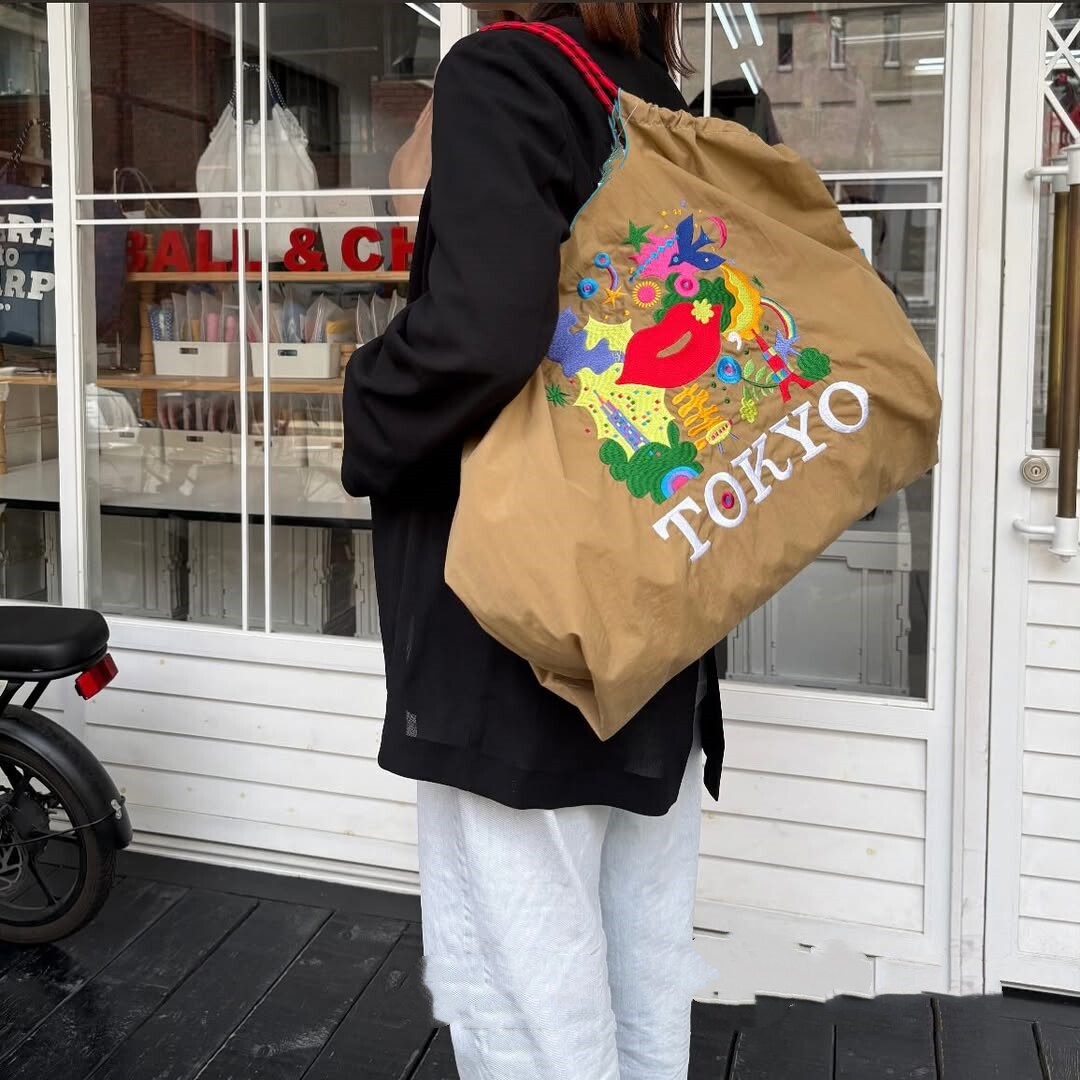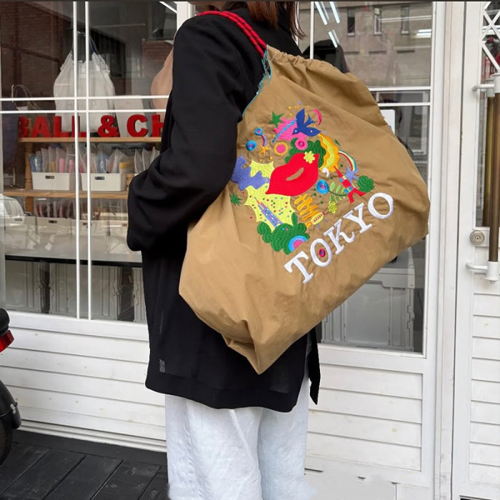 ball&chian日本刺綉東京紅脣環保袋斜背帆布購物袋單肩托特通勤包