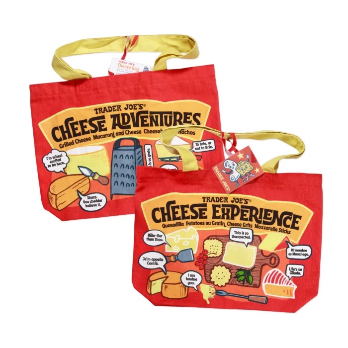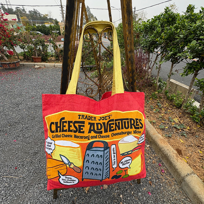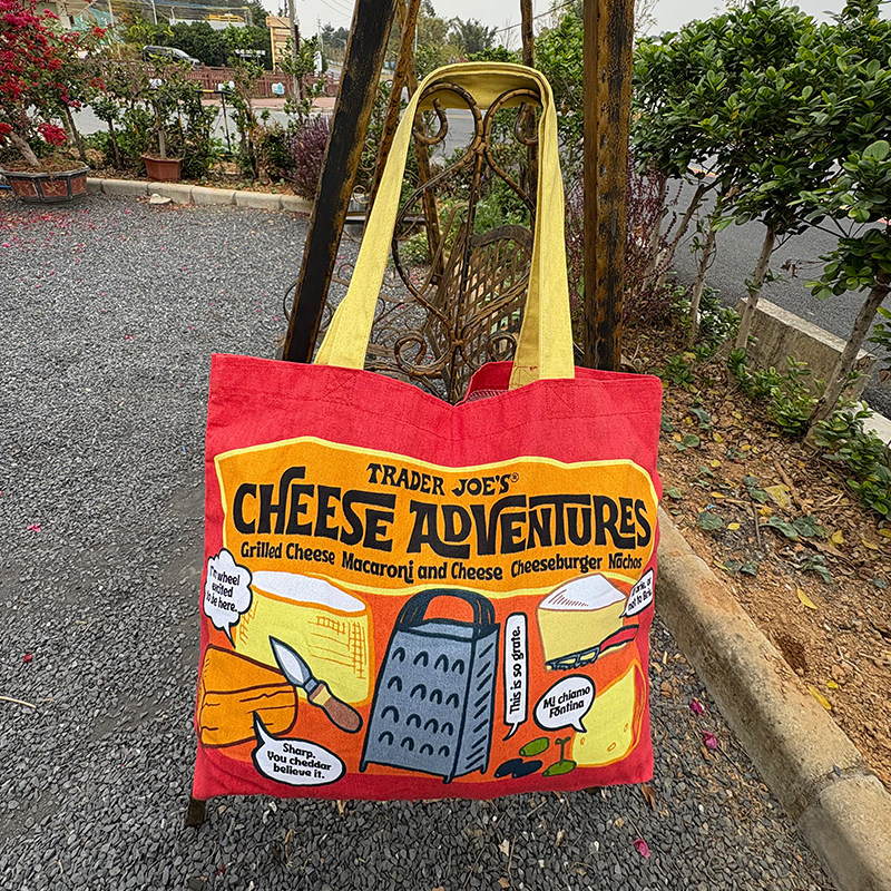 美國Trader Joe's製自缺德舅新款純棉起司圖案印花紅色休閒購物袋