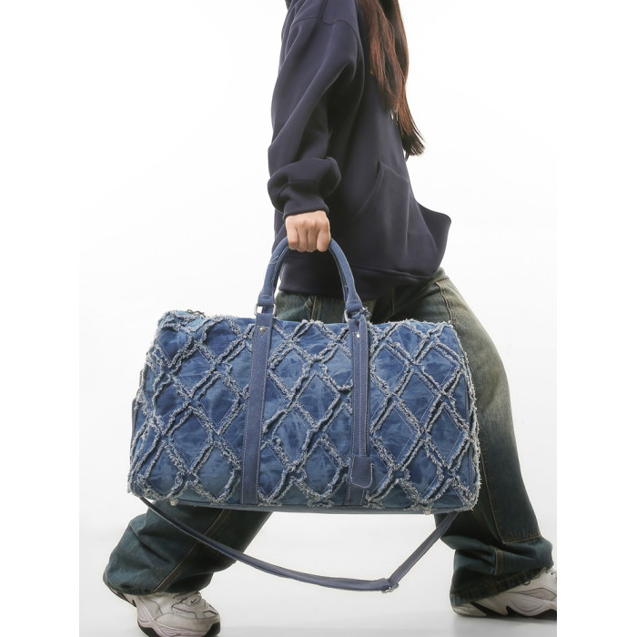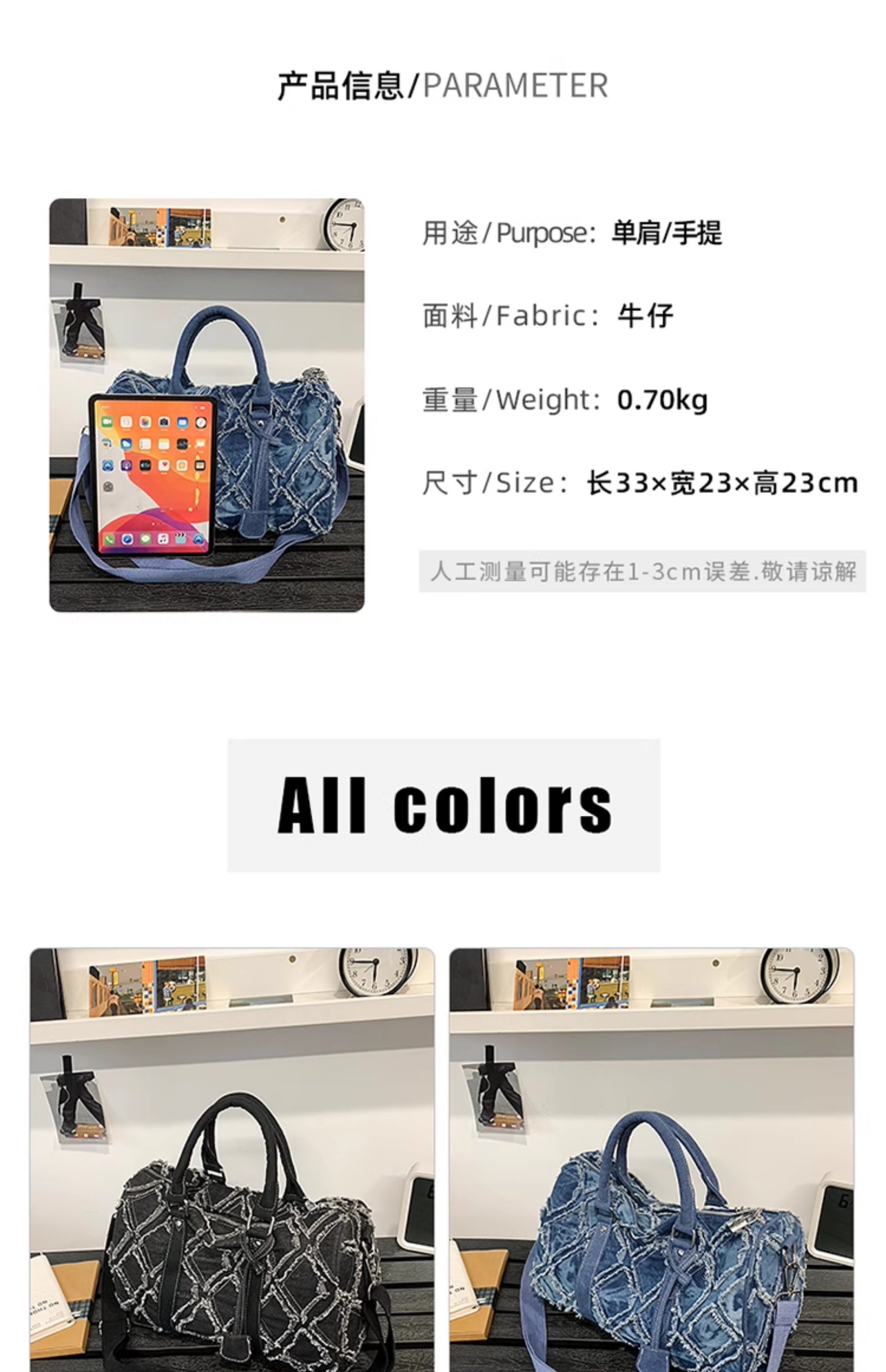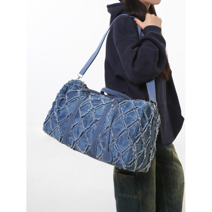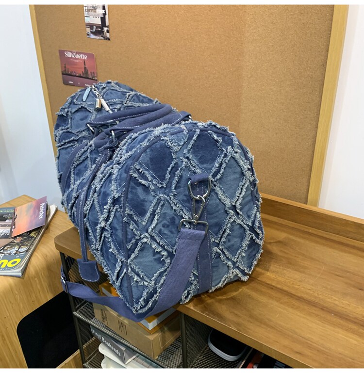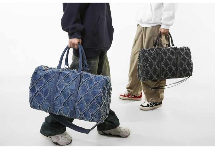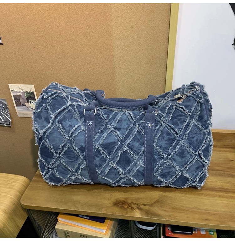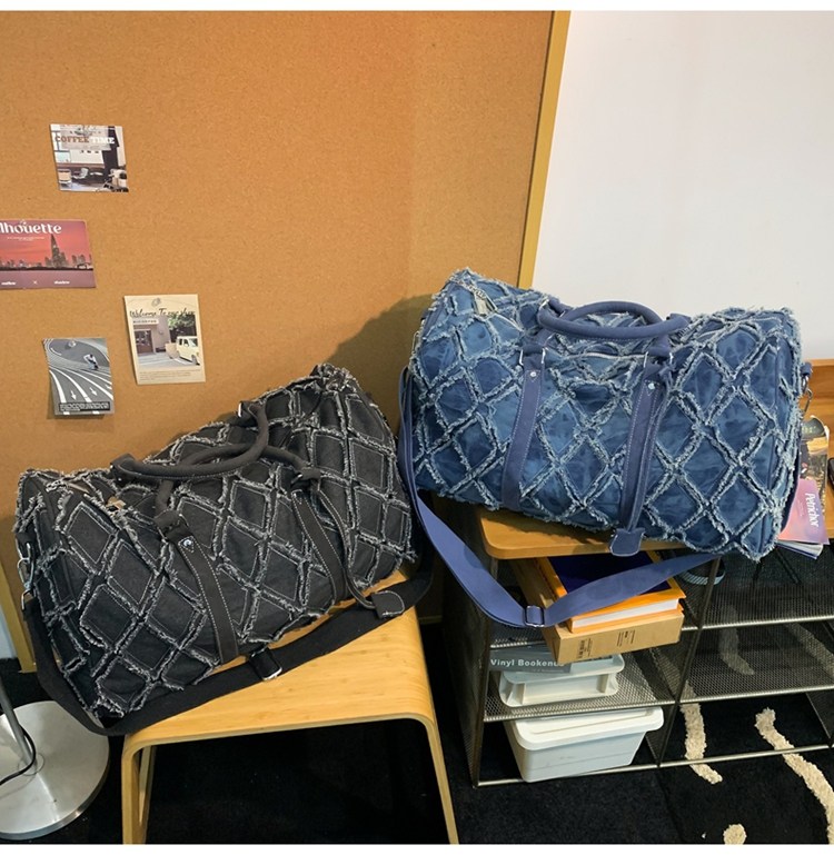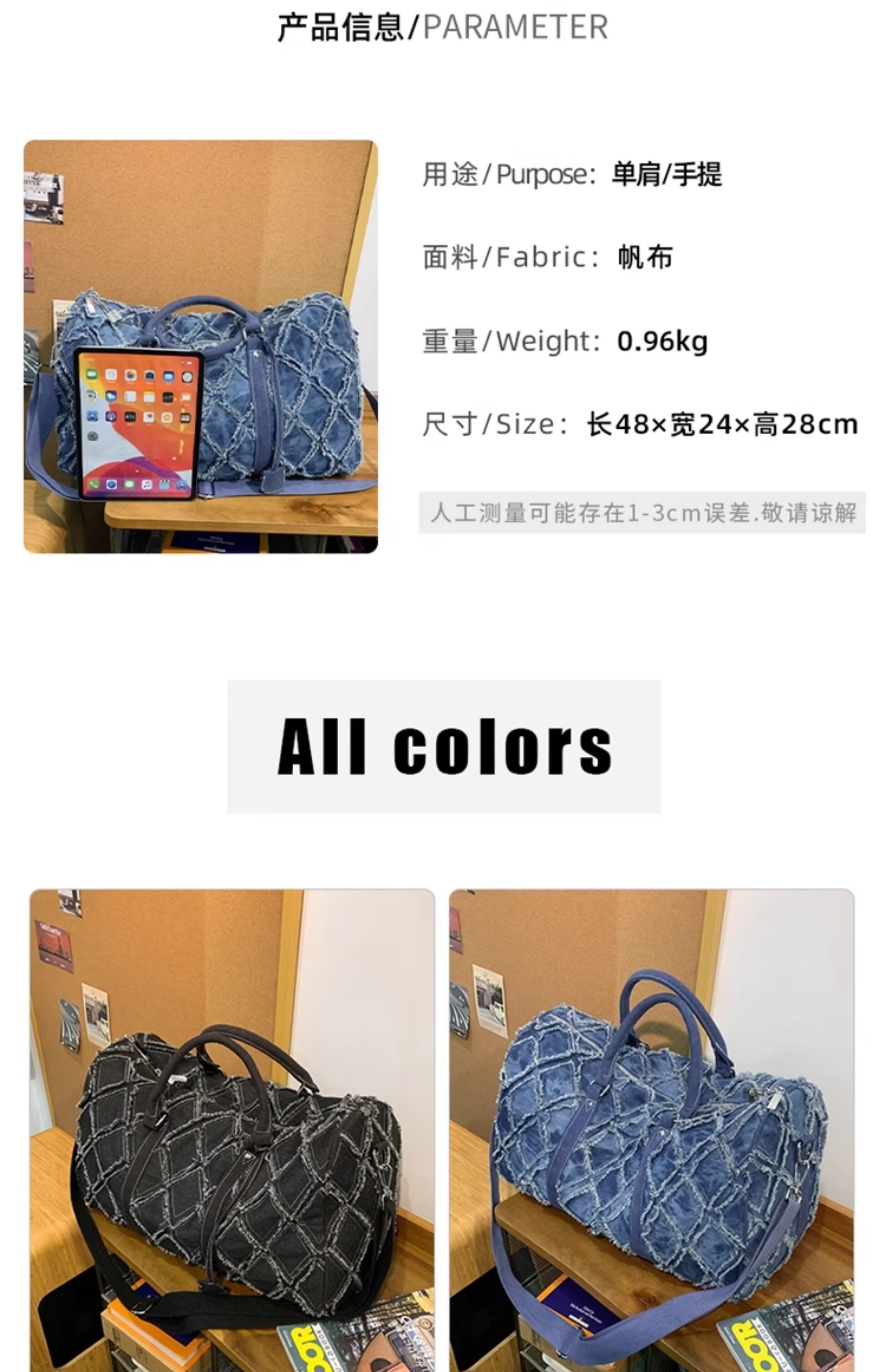 旅行包行李袋男女休閒帆布大容量短途包水洗牛仔布斜背手提健身包